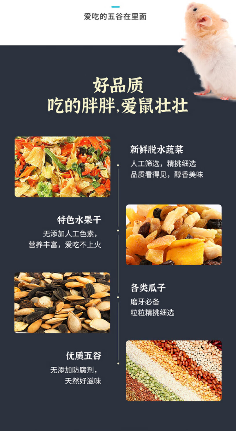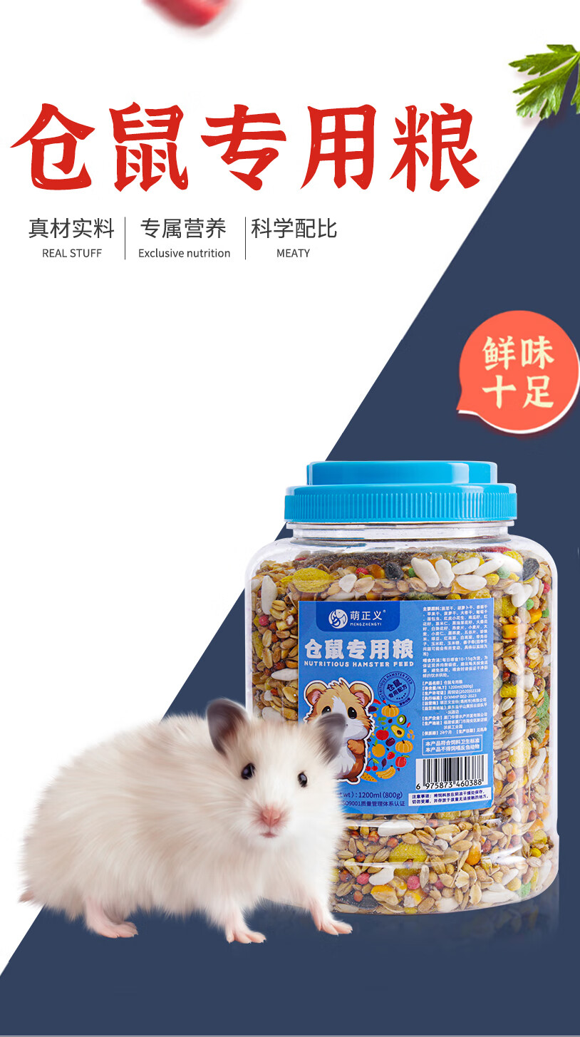 萌正义仓鼠粮饲料罐装松鼠口粮宠物果蔬粮食主食金丝熊磨牙零食1200ml