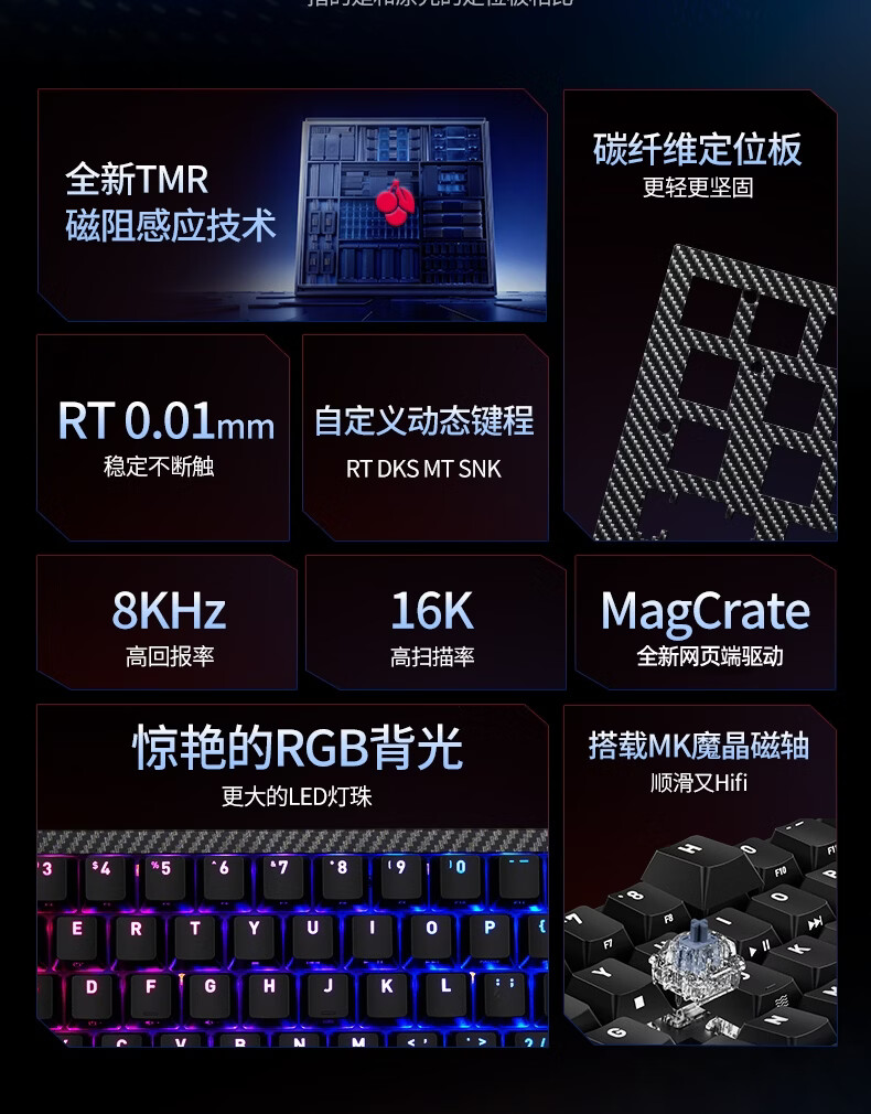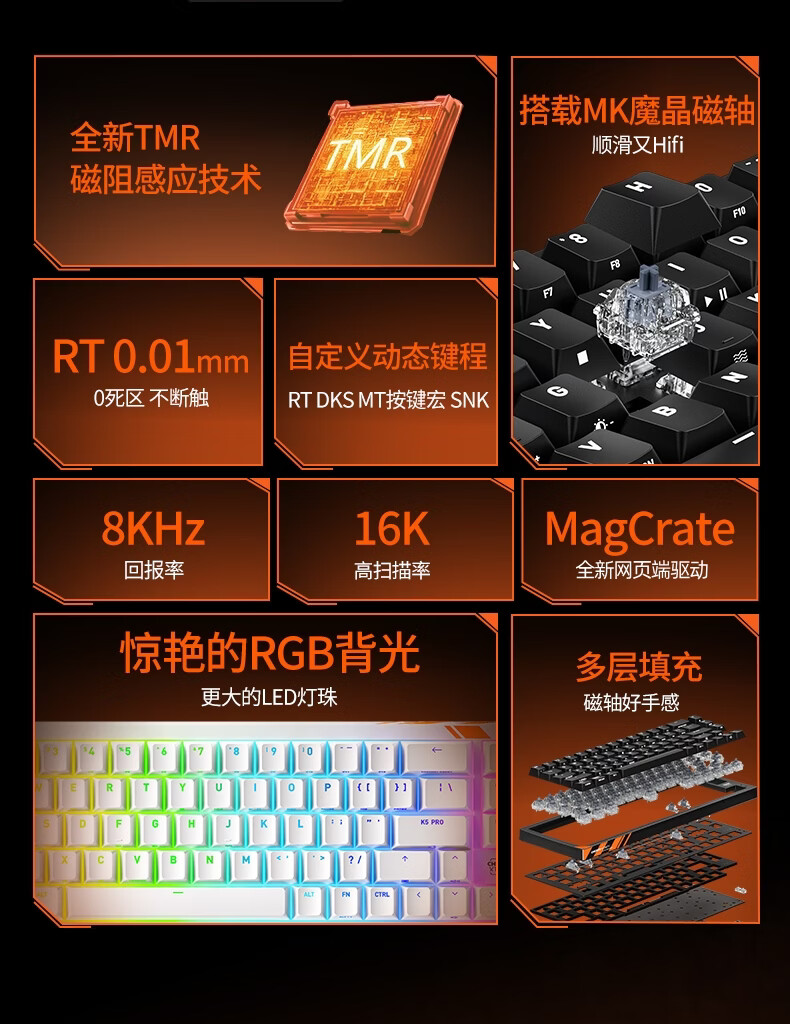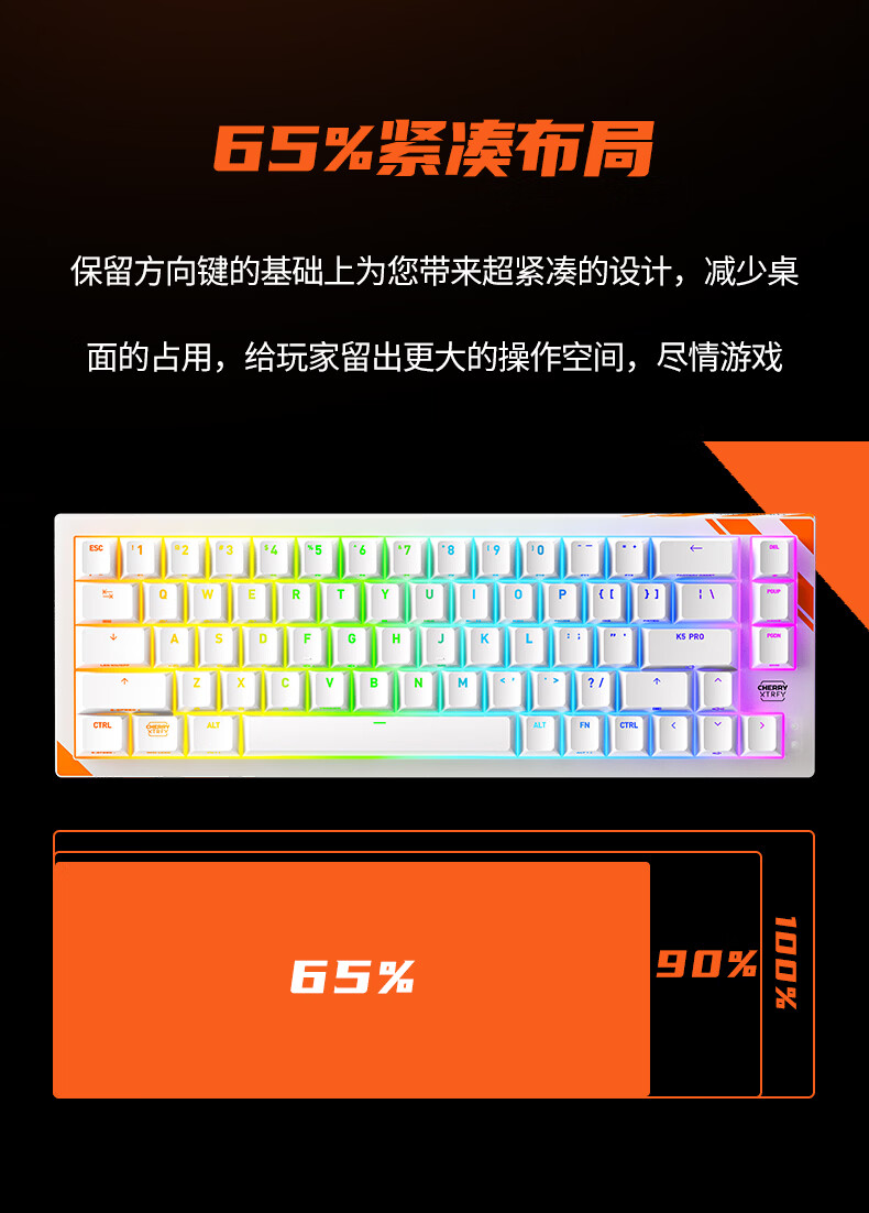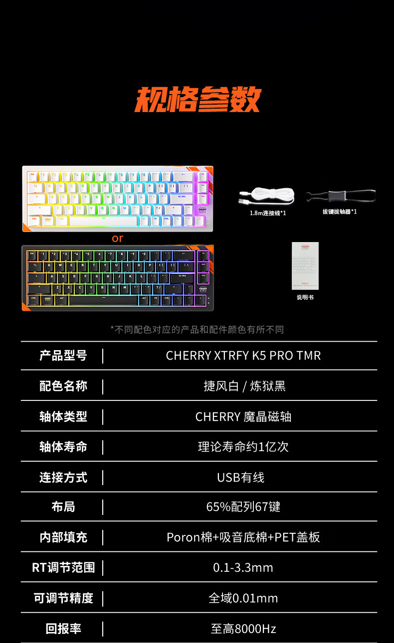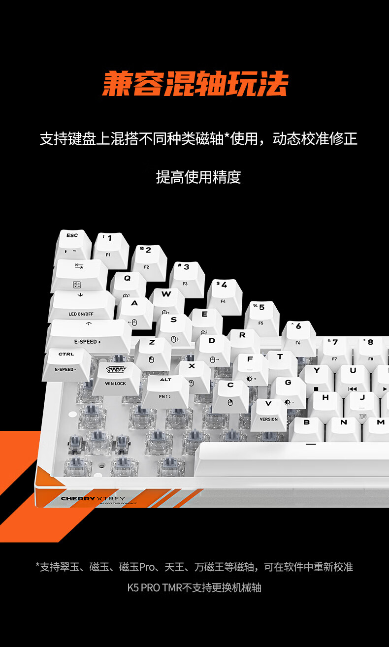 CHERRY樱桃 K5 PRO TMR魔晶磁轴键盘 电竞游戏键盘 RT0.01 冠军键盘 客制化 三角洲打瓦 K5 PRO-白色-磁轴
