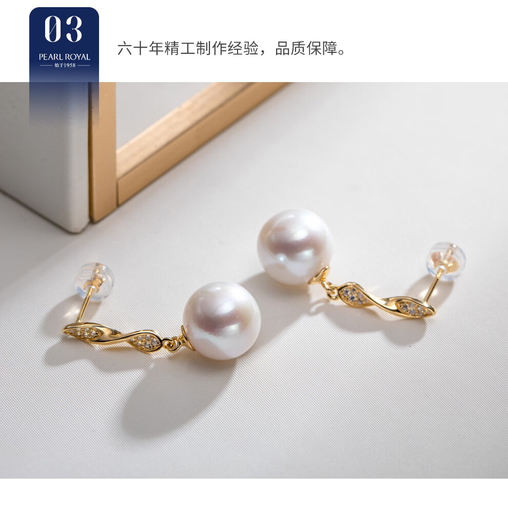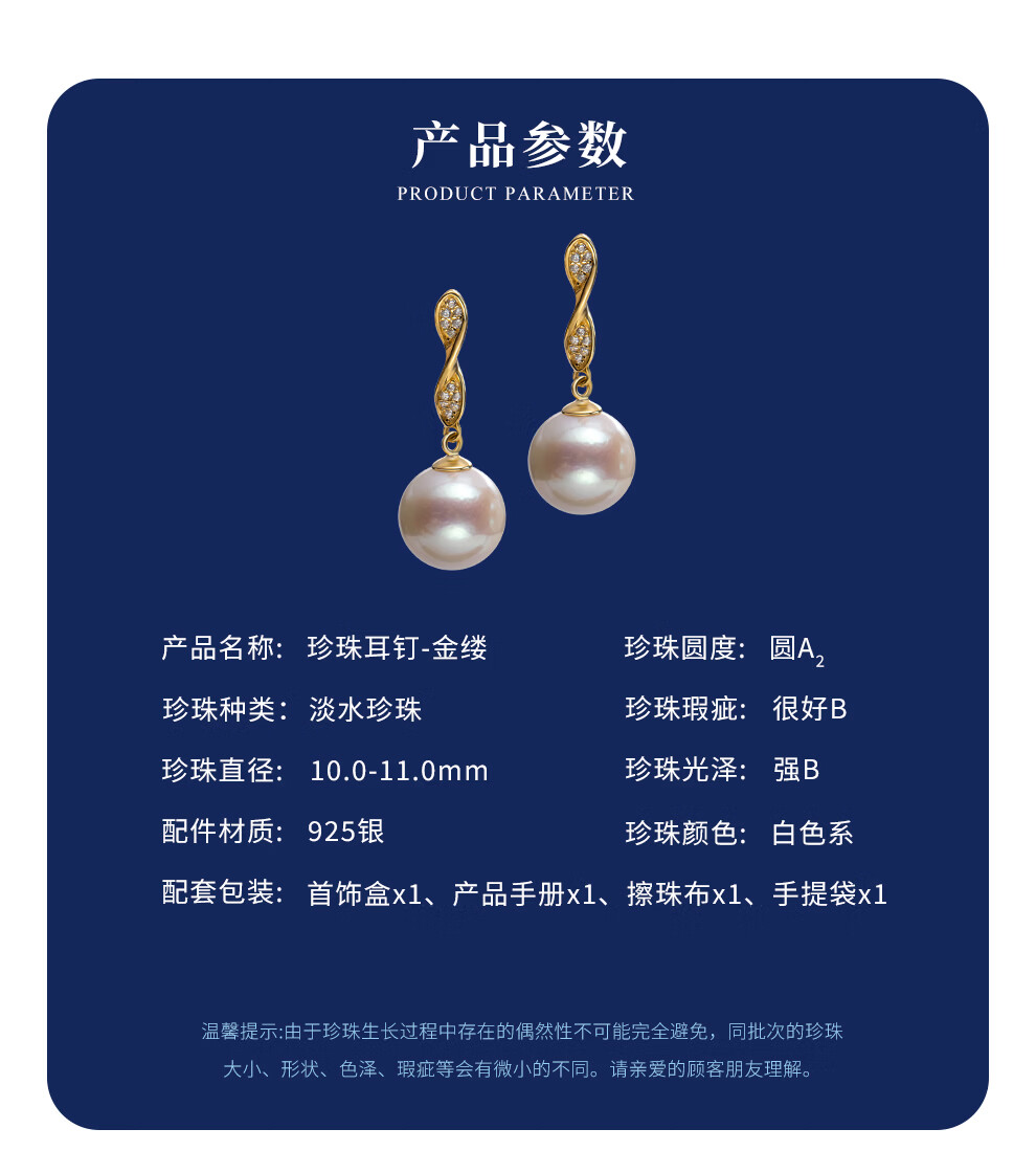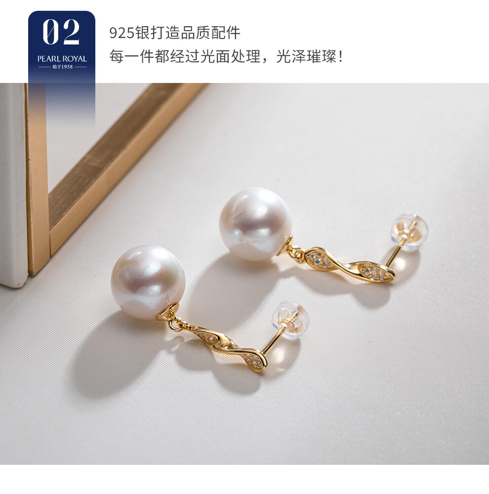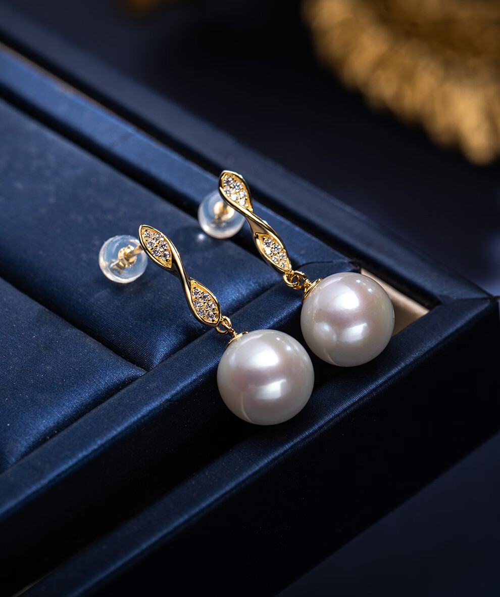 南珠宫金缕珍珠耳环925银天然淡水珍珠耳钉耳饰日常通勤百搭送妈妈 10.0-11.0mm 925银淡水珍珠耳环