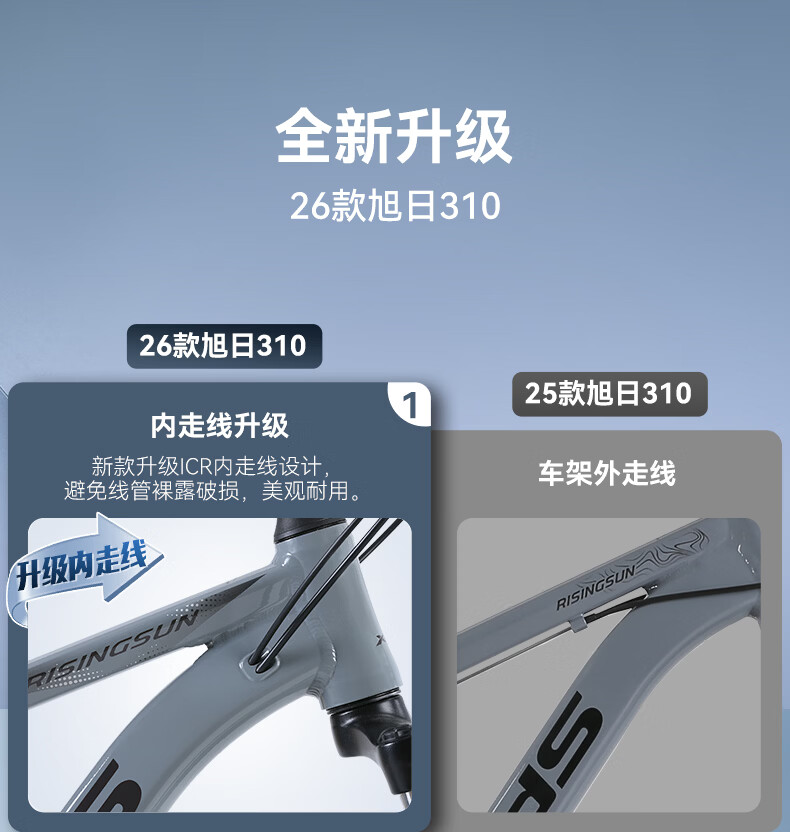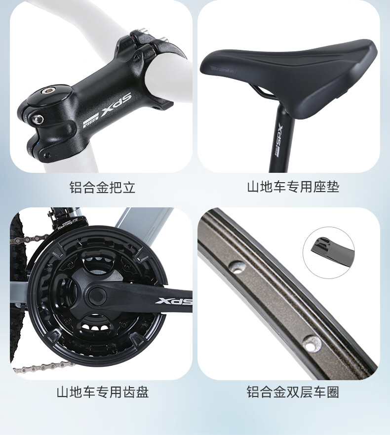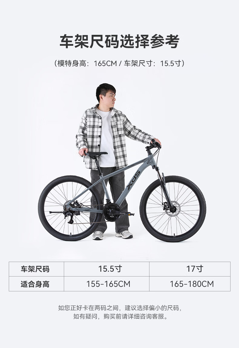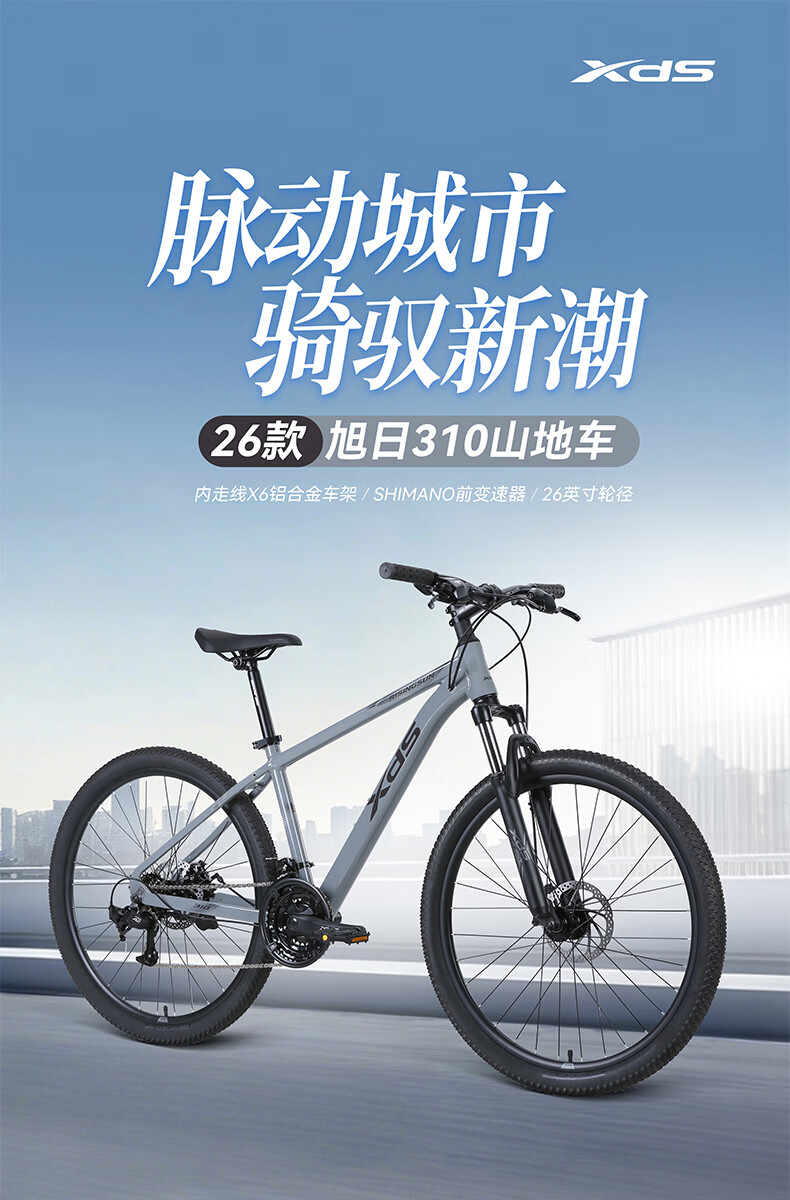 喜德盛(xds)山地自行车旭日310铝合金车架21速学生青少年成人入门通勤 石岩灰(26款) 17寸(适合身高165-180cm)