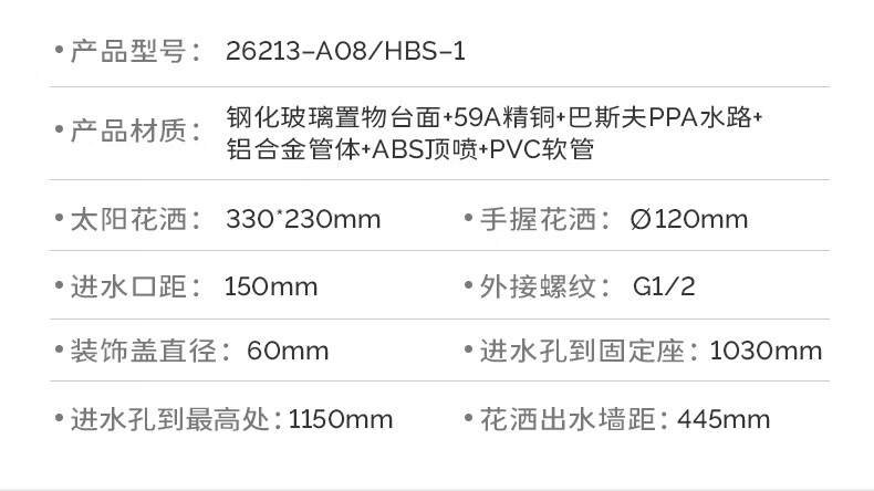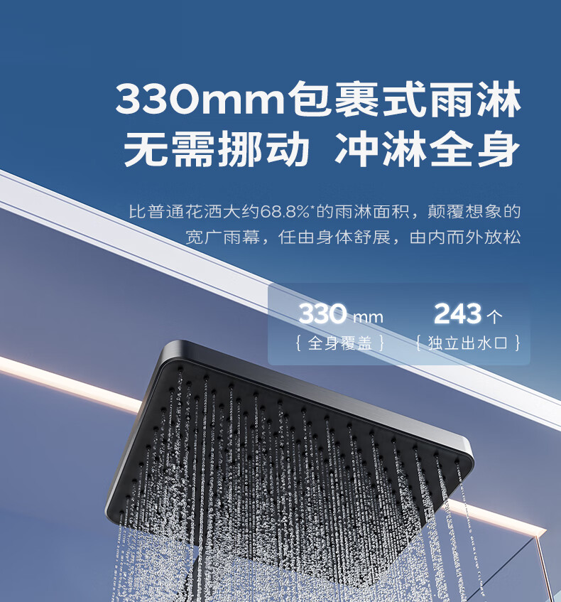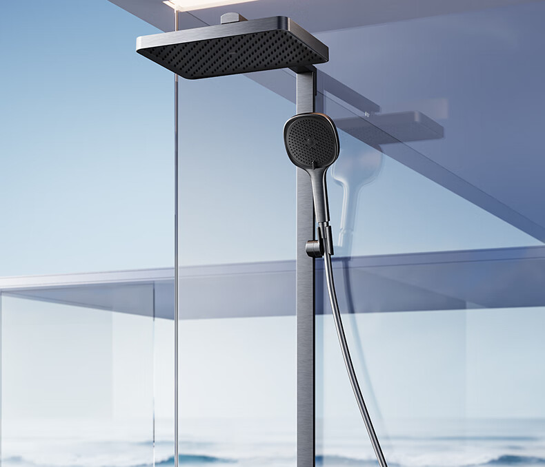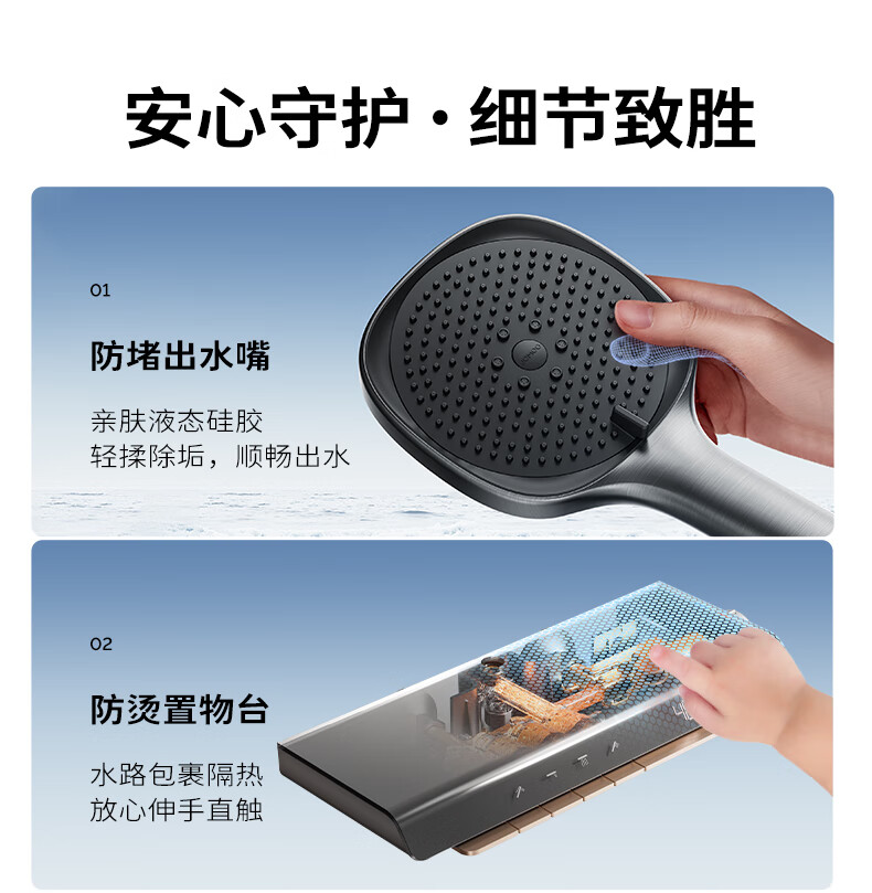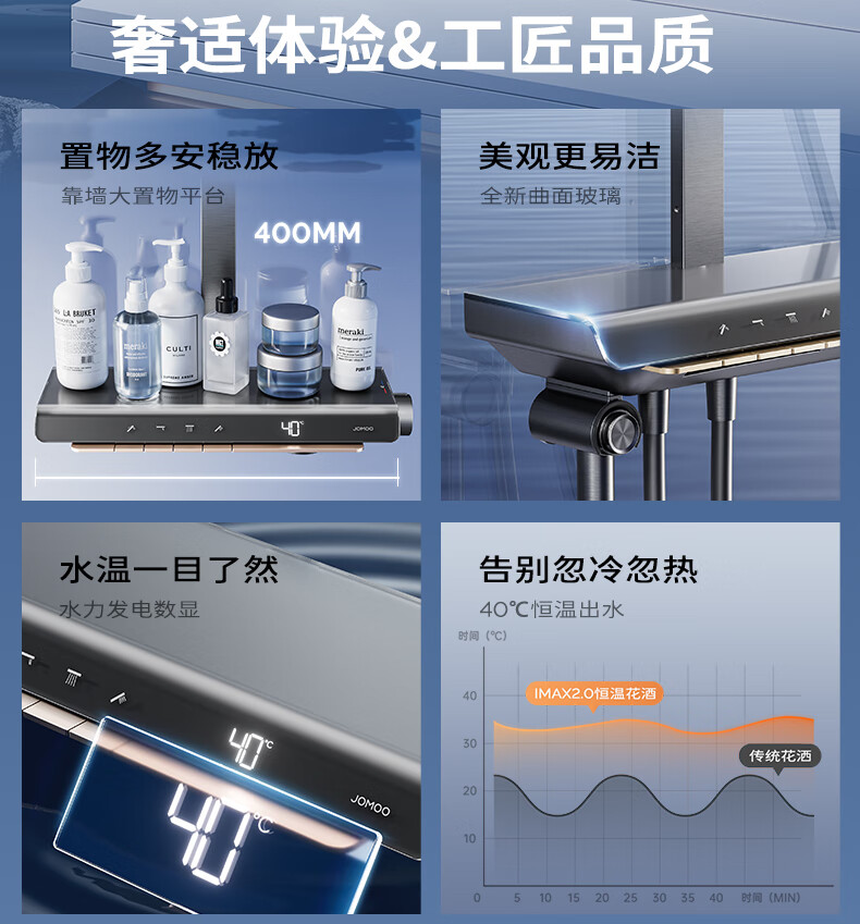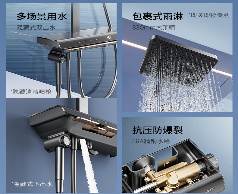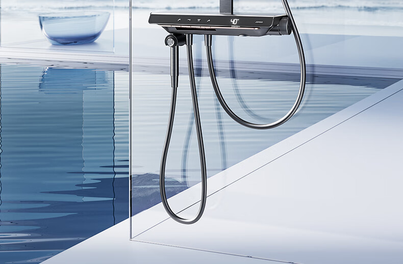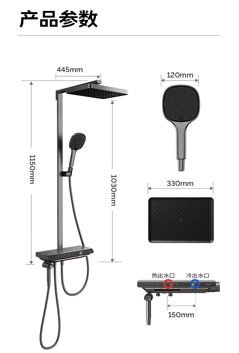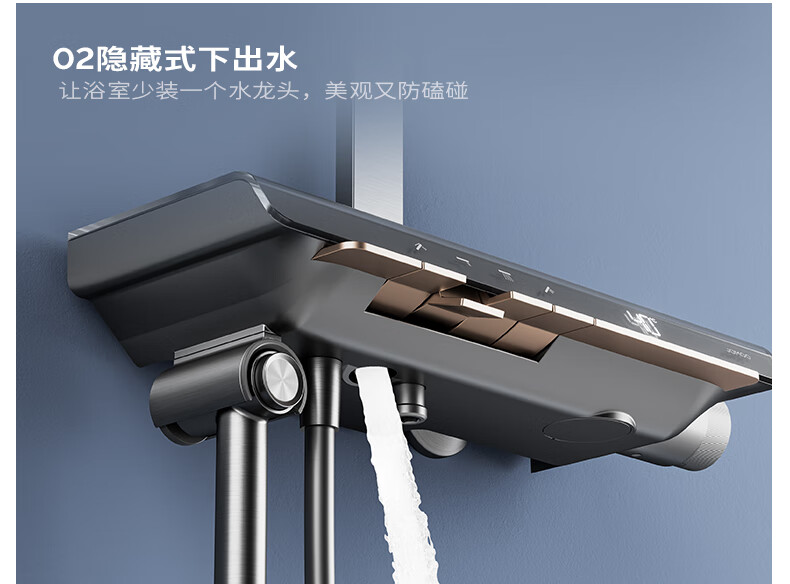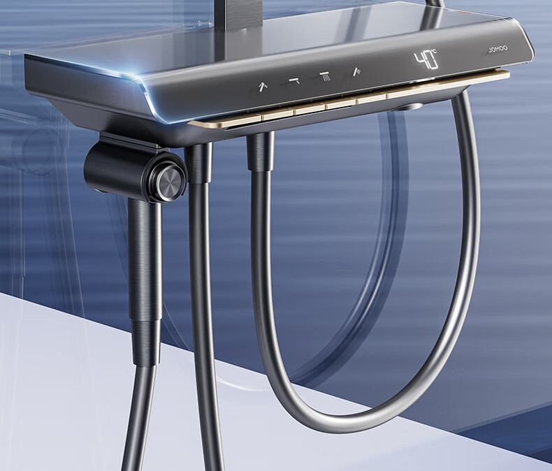 九牧(JOMOO)智能琴键方管弧弯数显靠墙置物恒温淋浴花洒26213-A08/HBS-1