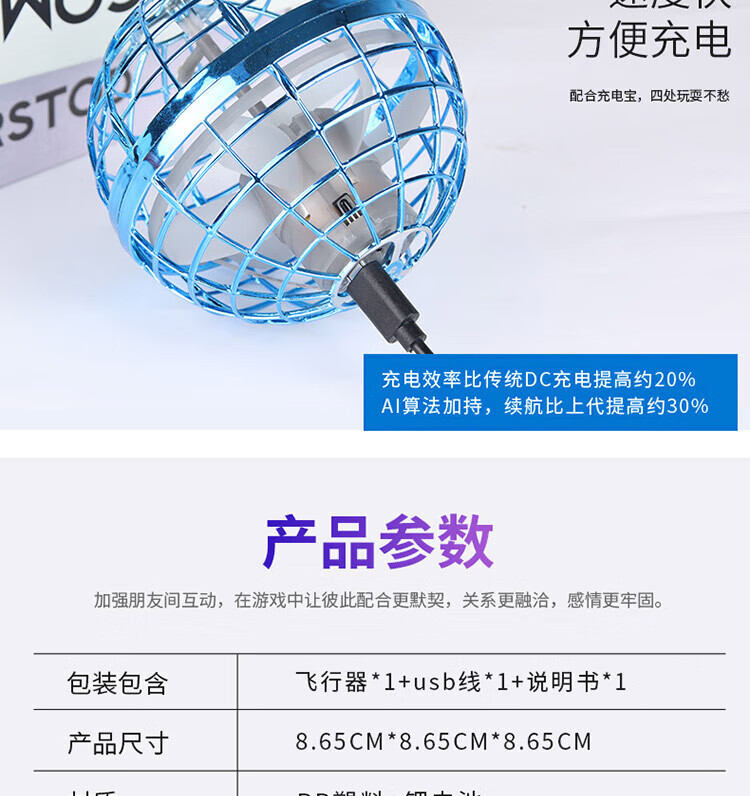 TaTanice感应飞行球陀螺飞行器玩具黑科技UFO悬浮球儿童男孩开学生日礼物