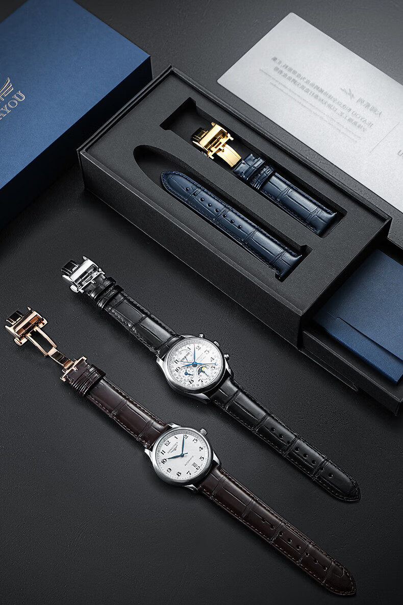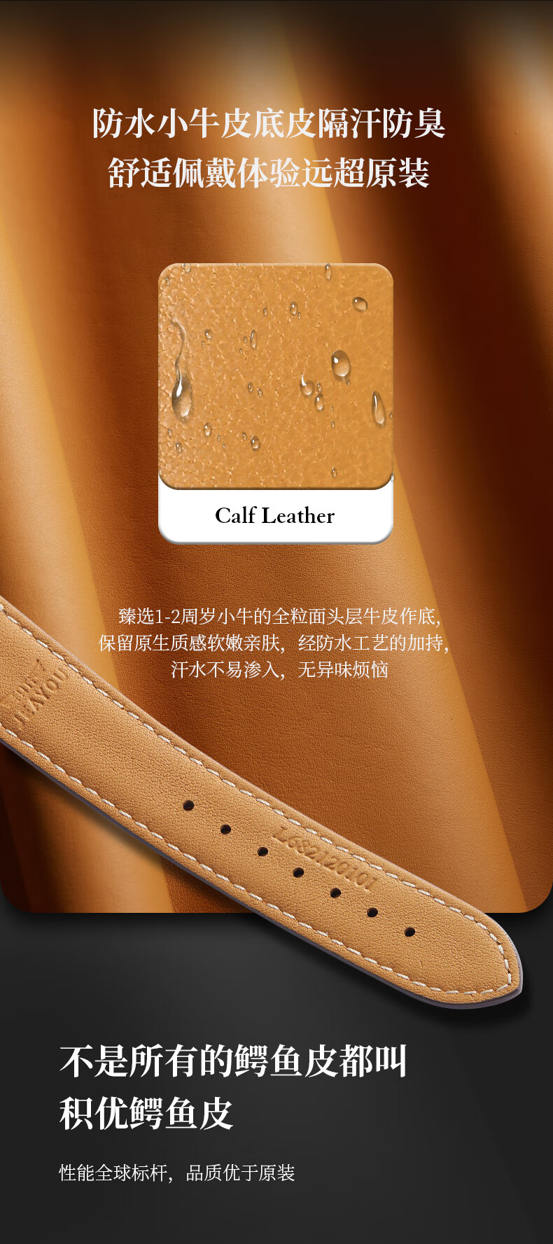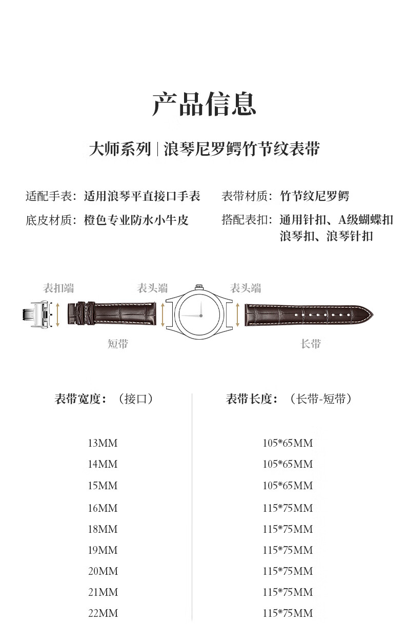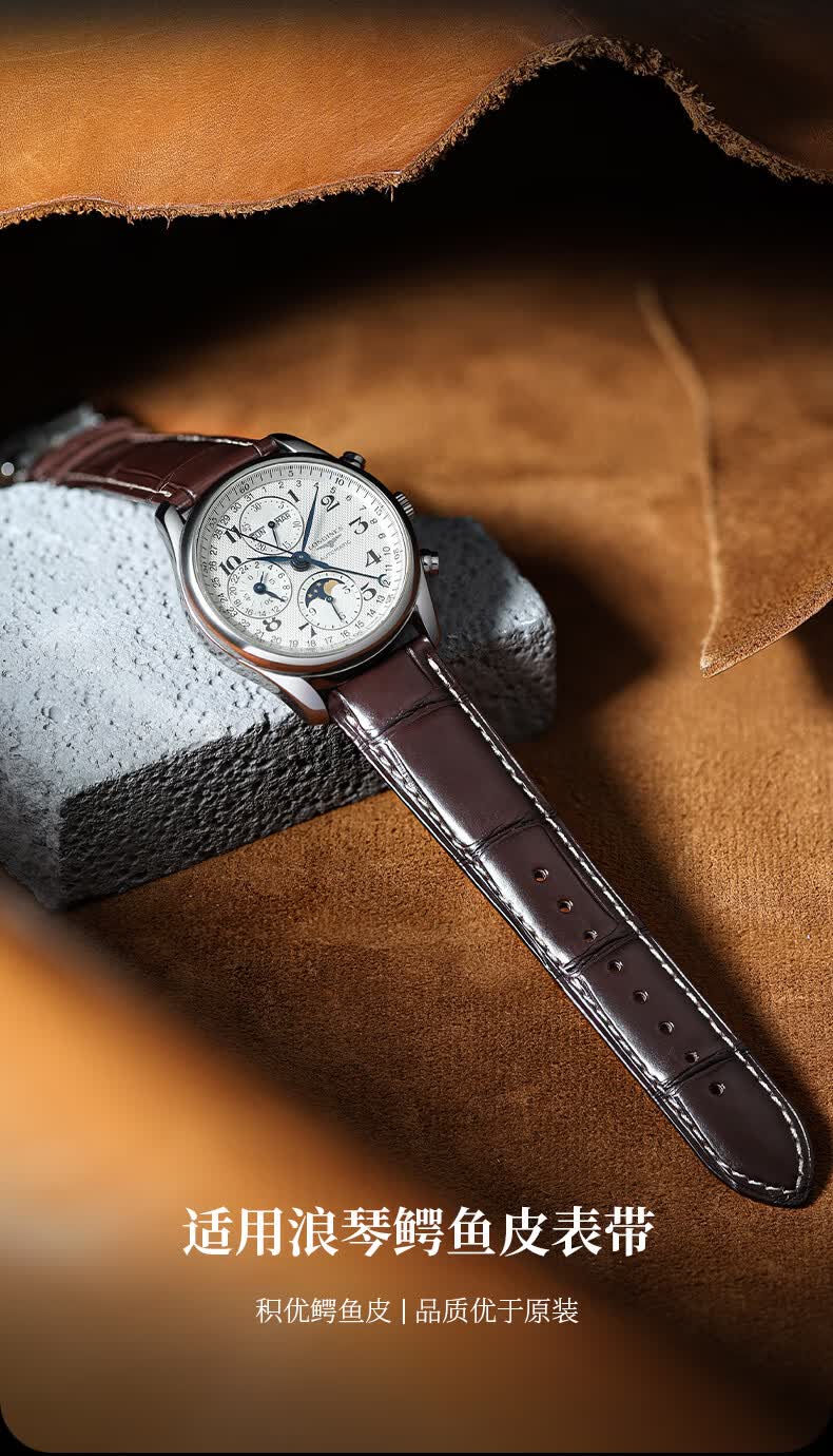 积优(JEAYOU)浪琴鳄鱼皮表带优原装浪琴名匠八针月相真皮手表表带男士代用康卡斯先行者军旗律雅瑰丽时尚女士 棕色棕线 表耳22mm,表扣20mm 不配扣