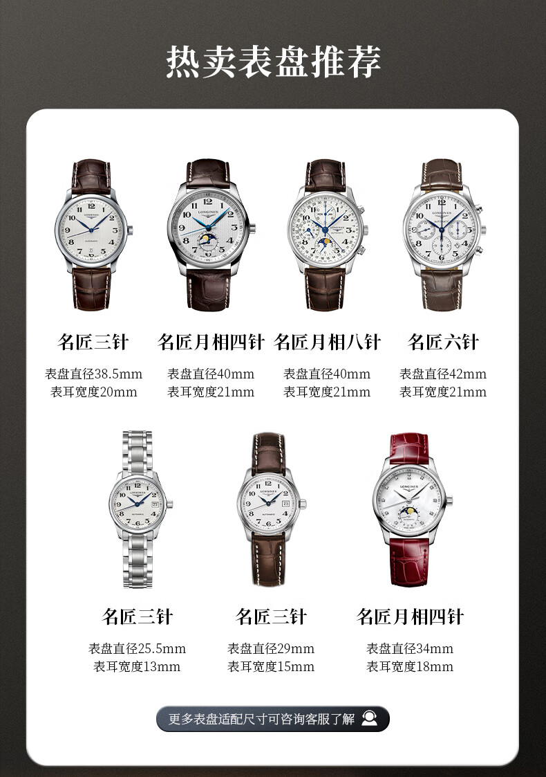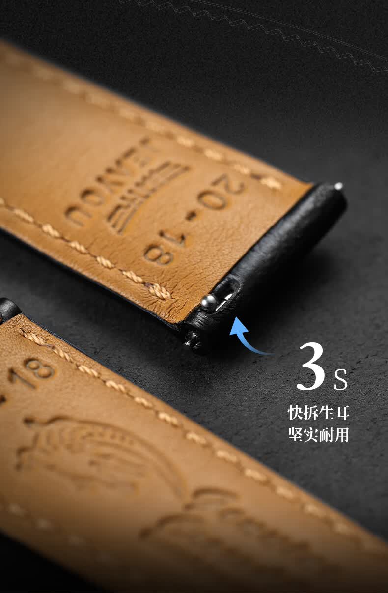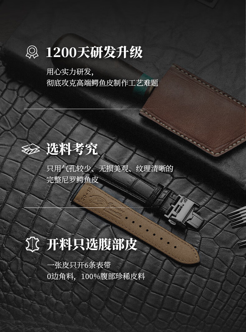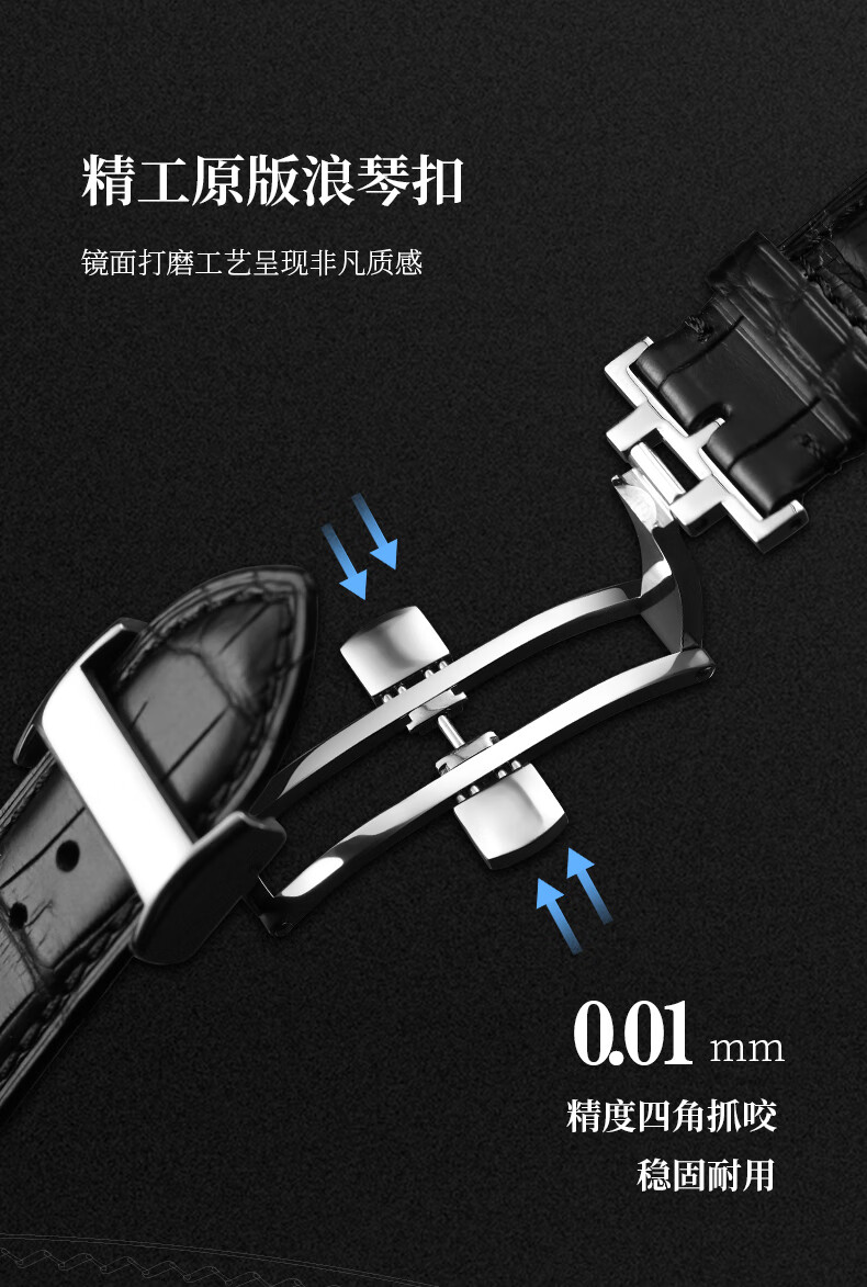 积优(JEAYOU)浪琴鳄鱼皮表带优原装浪琴名匠八针月相真皮手表表带男士代用康卡斯先行者军旗律雅瑰丽时尚女士 棕色棕线 表耳22mm,表扣20mm 不配扣