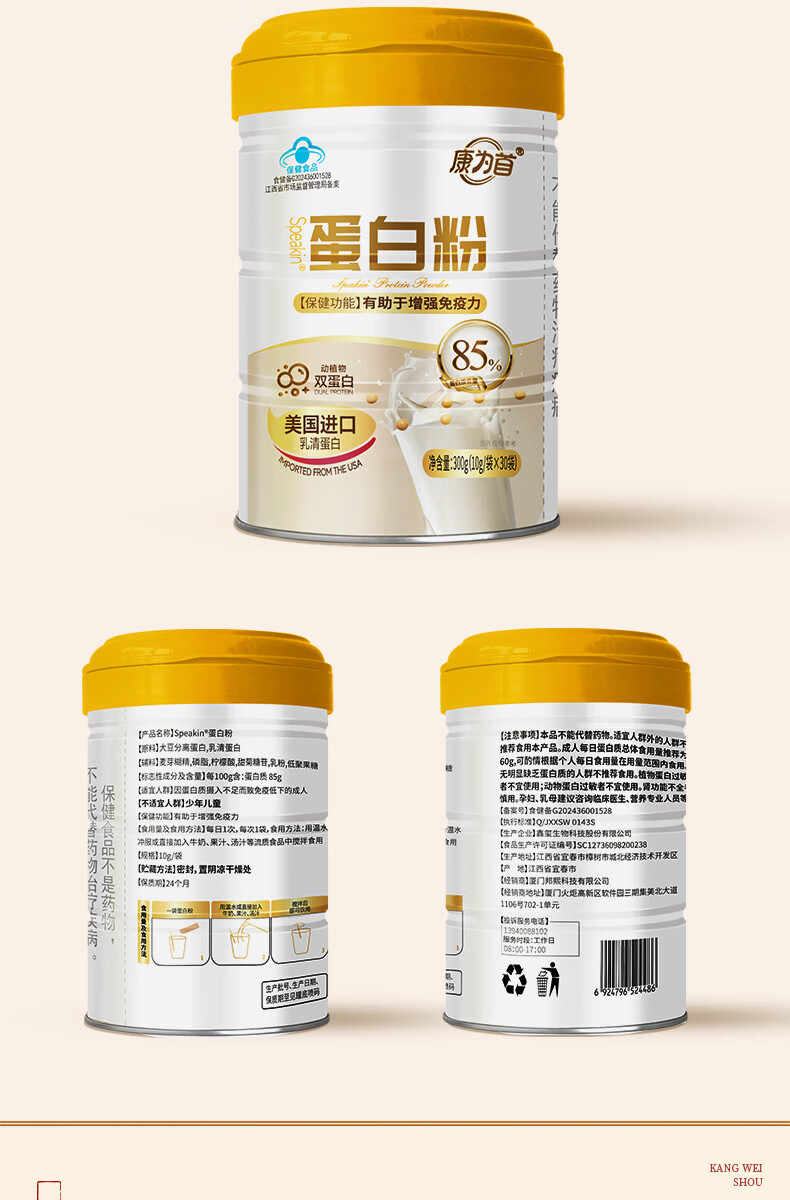 康为首 蛋白粉礼盒装术后恢复高蛋白营养品 分离乳清动植物双蛋白质粉 85%的高蛋白质营养粉 600g*1盒