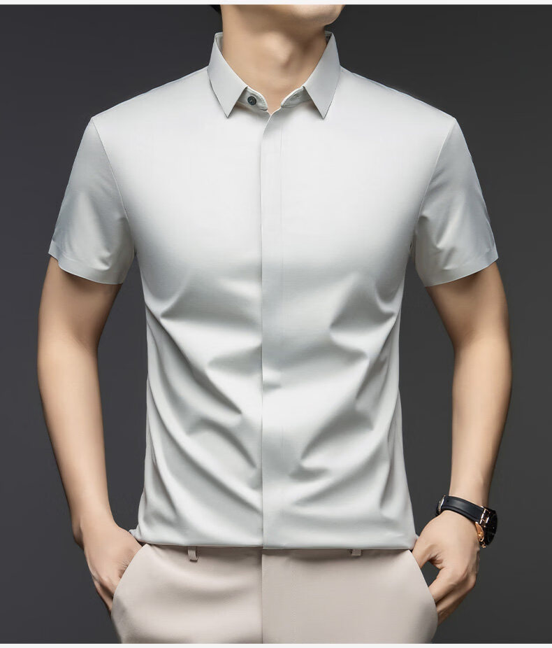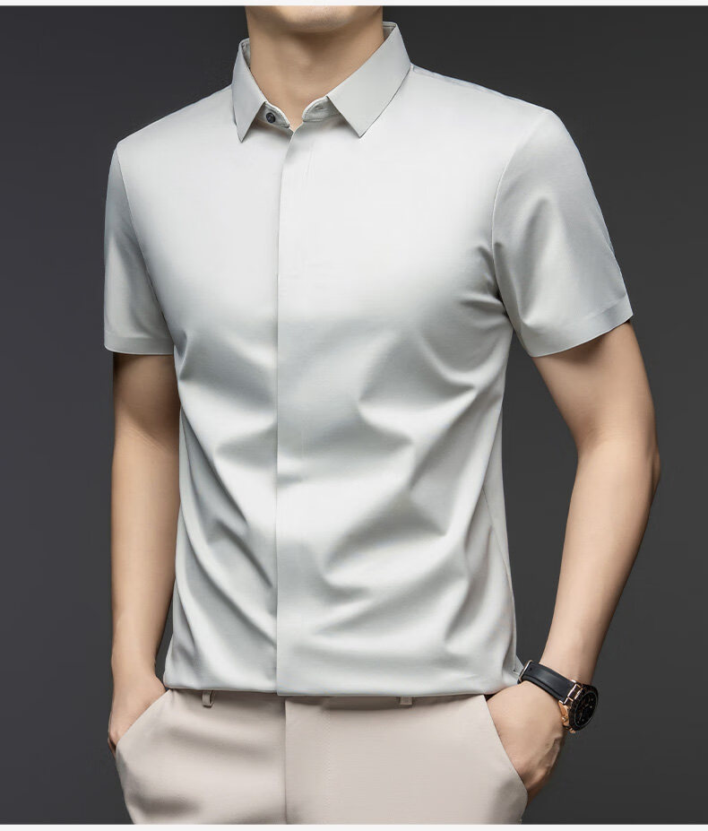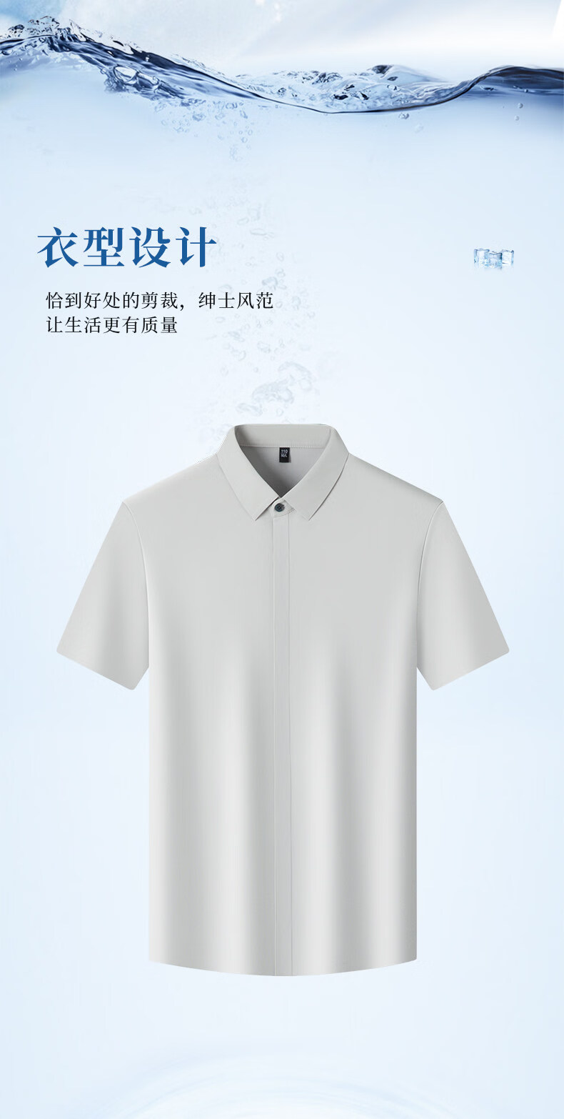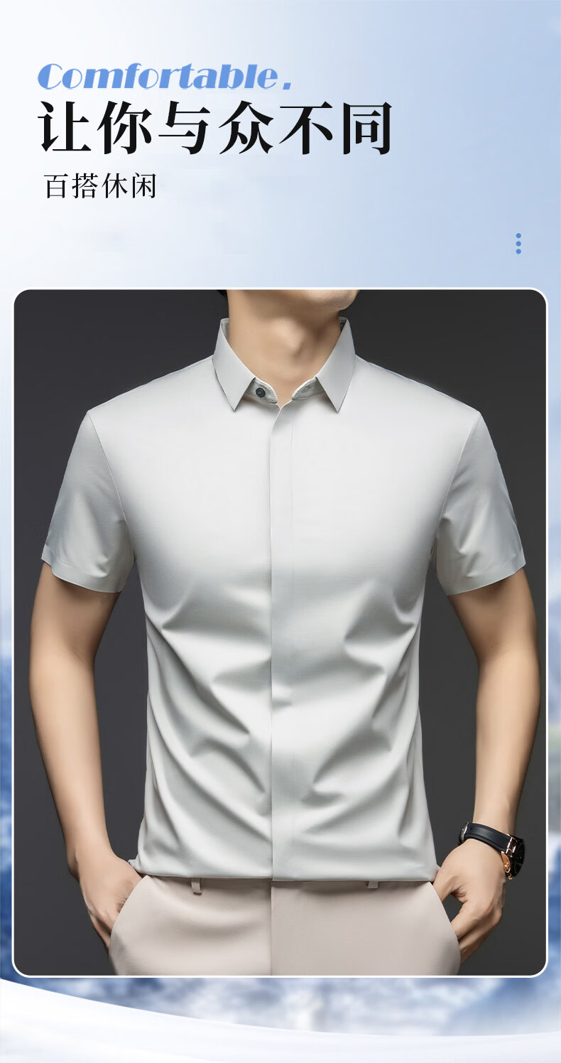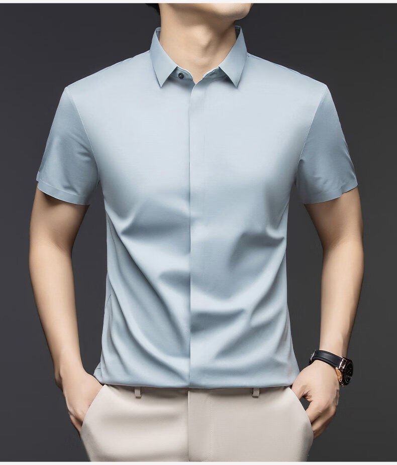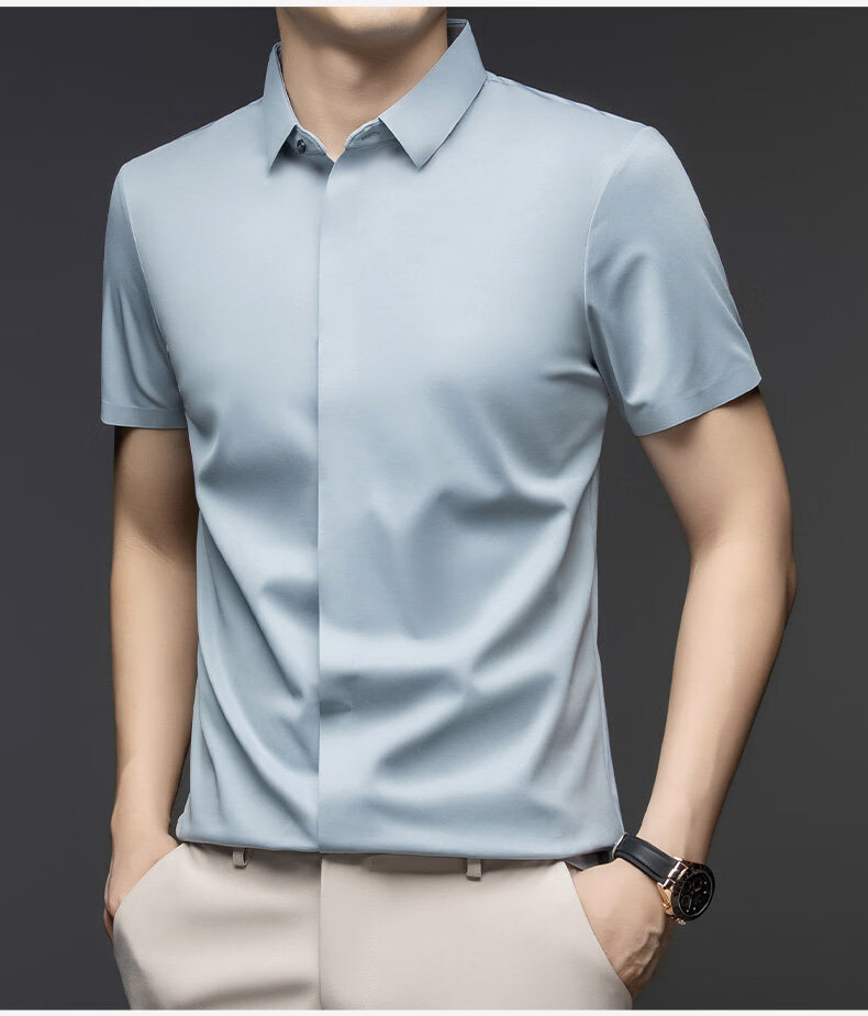 丨利郎丨桑蚕丝短袖衬衫男无痕免烫2026新款商务休闲衬衣 -浅蓝 4XL 190建议【185-200斤】