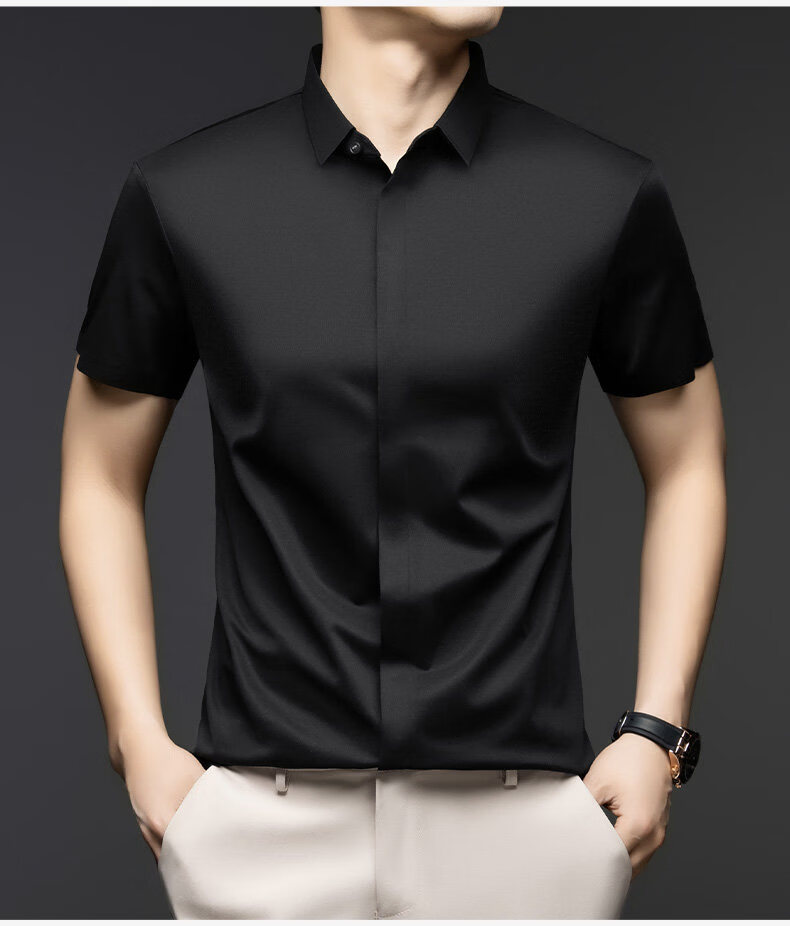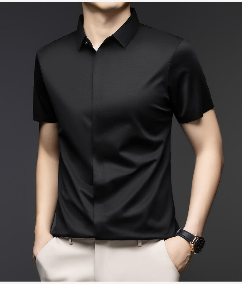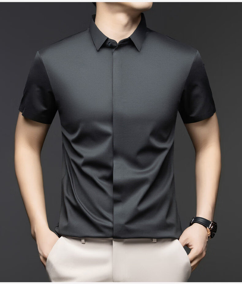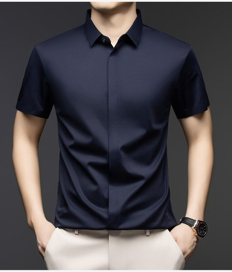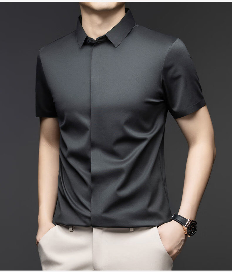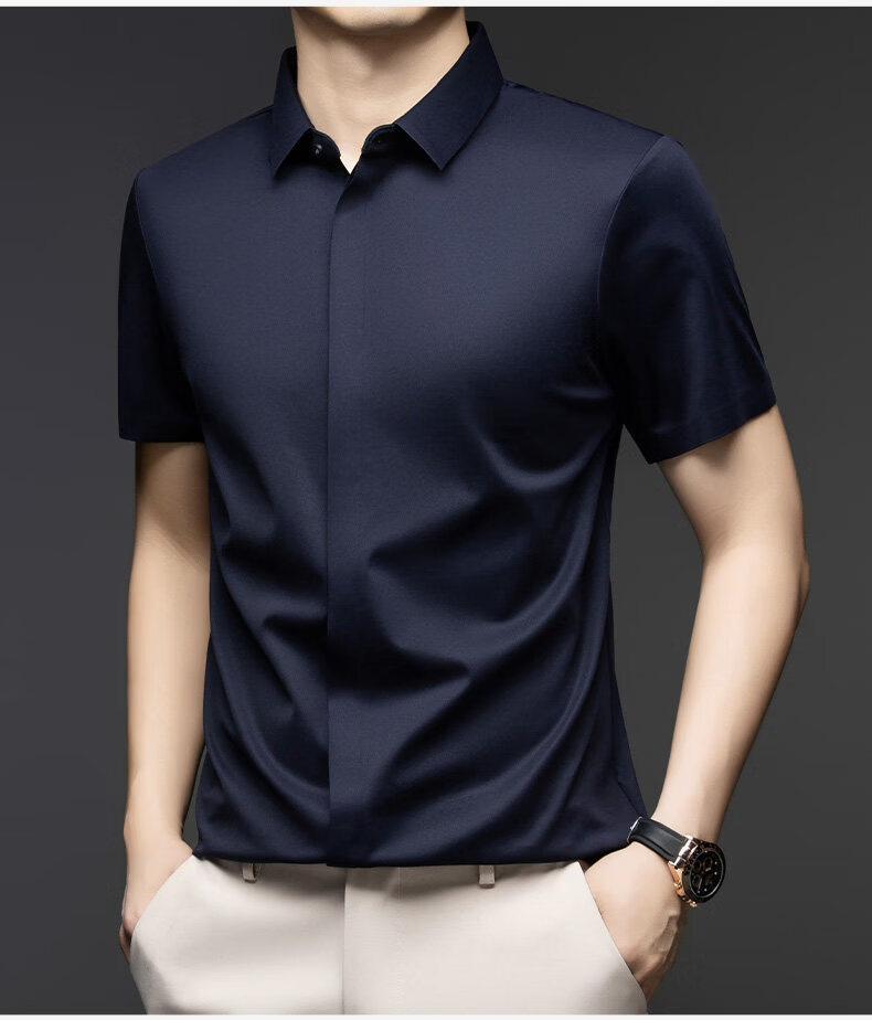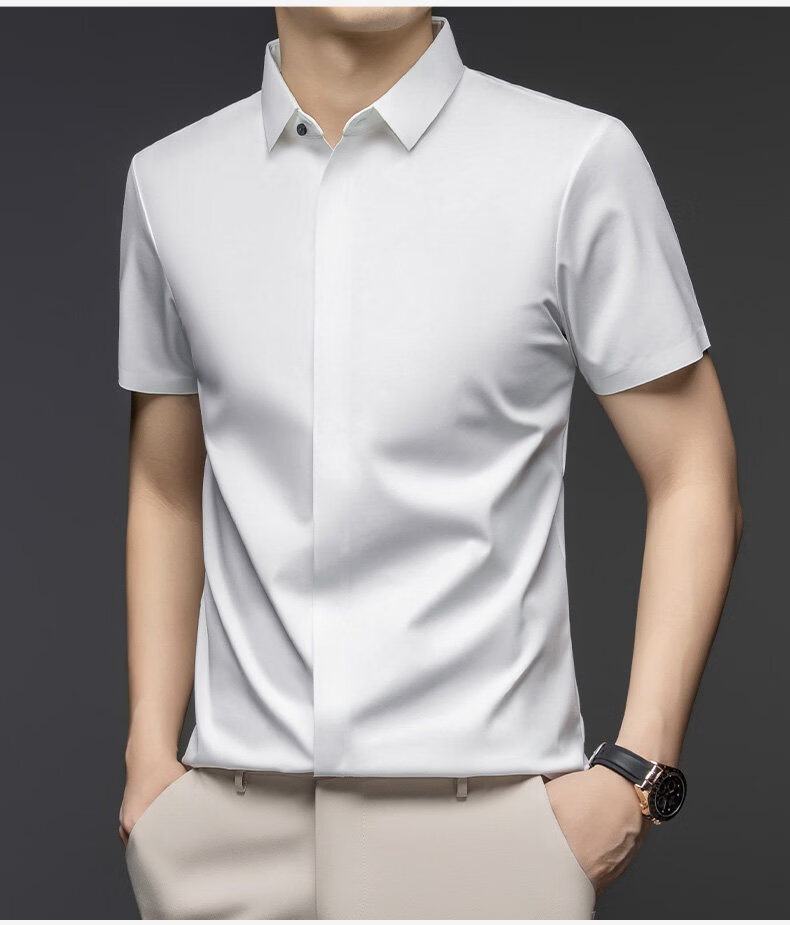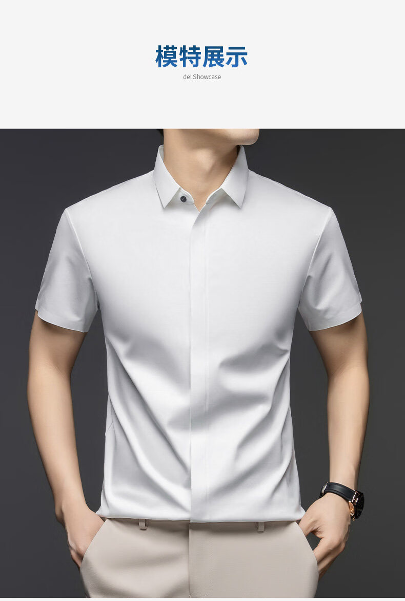 丨利郎丨桑蚕丝短袖衬衫男无痕免烫2026新款商务休闲衬衣 -浅蓝 4XL 190建议【185-200斤】