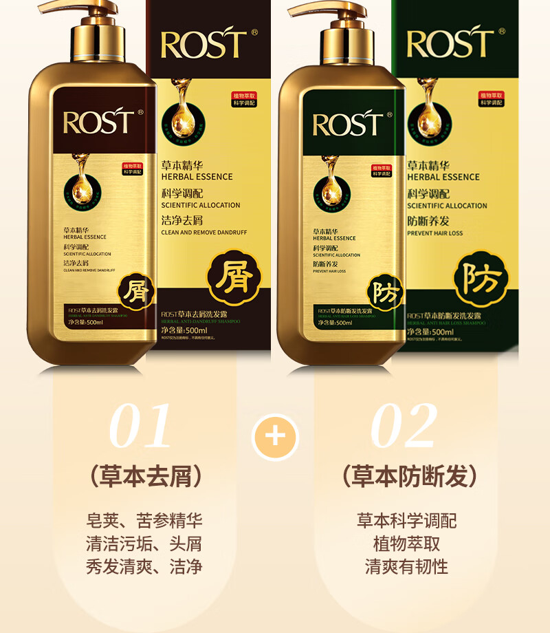 韵之堂草本防断去屑洗发水清爽蓬松洗发水 草本防断洗发水 500ml 2瓶