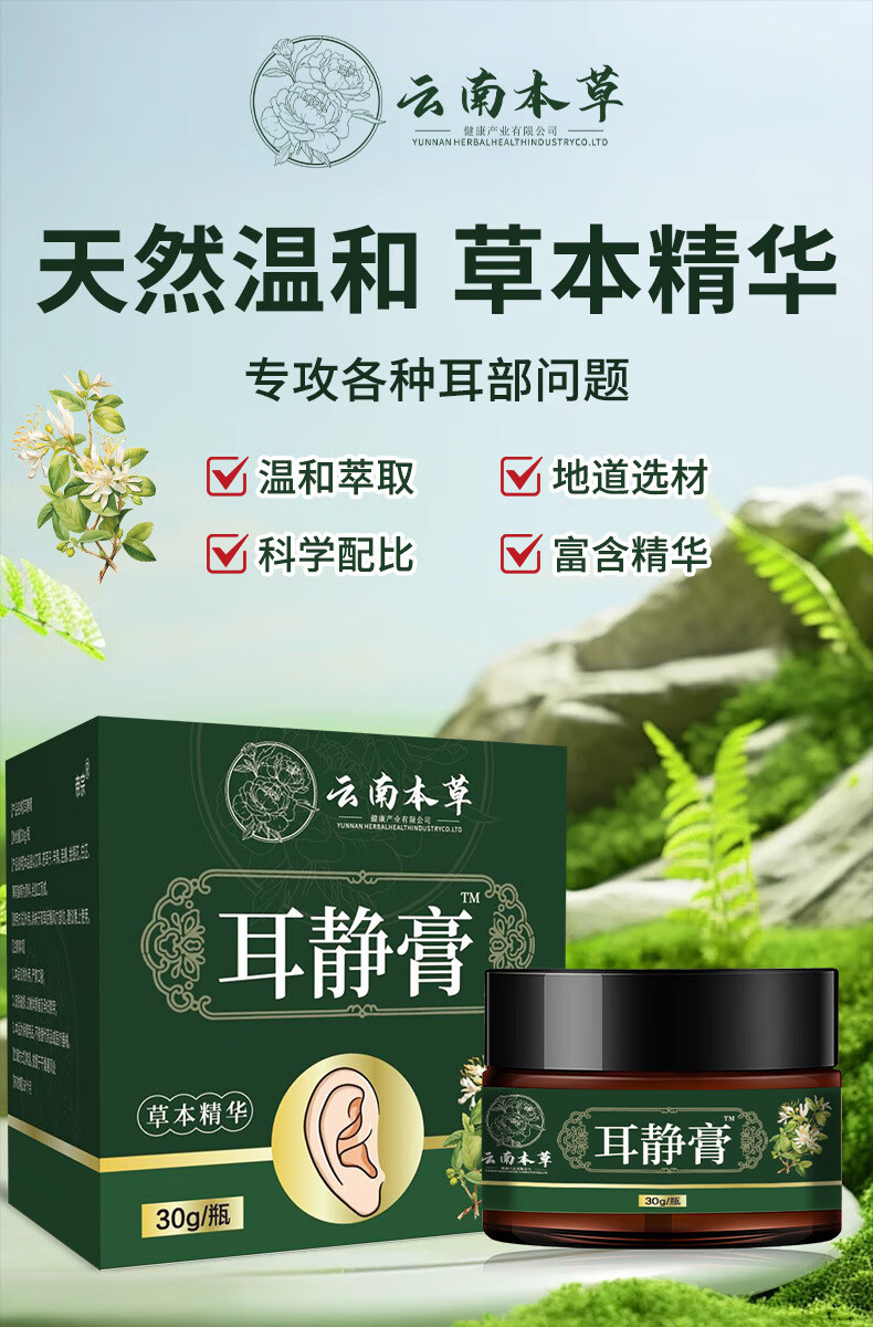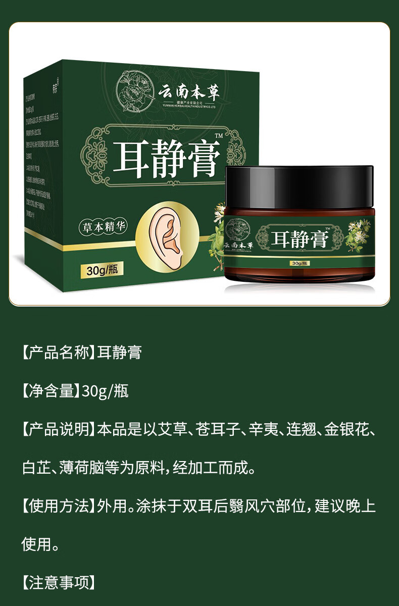 云南本草耳静膏耳鸣膏耳康贴耳聋耳鸣耳背滴耳液快手直播同款正品店 5瓶装*30g【周期甄选好价囤货】 耳静膏