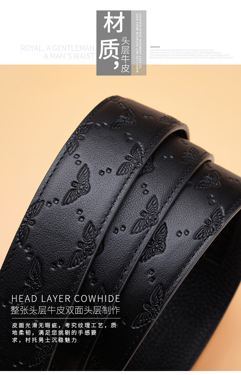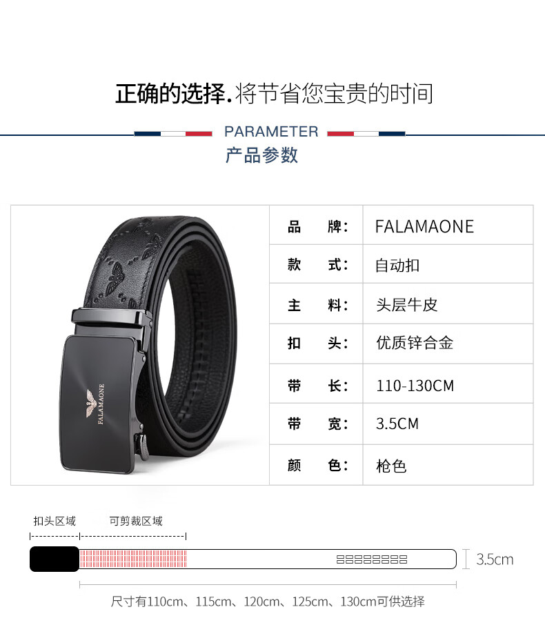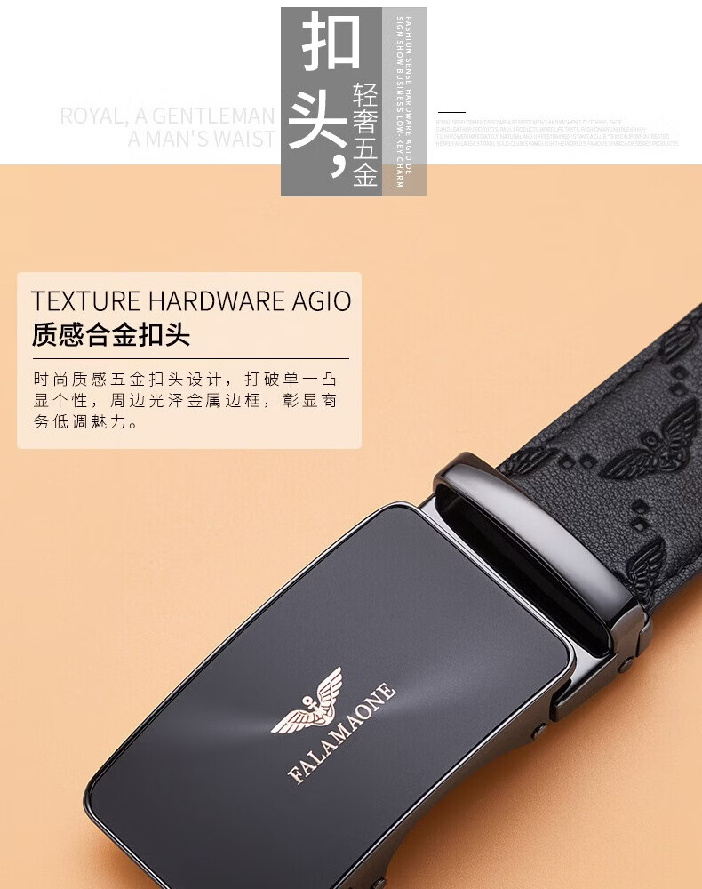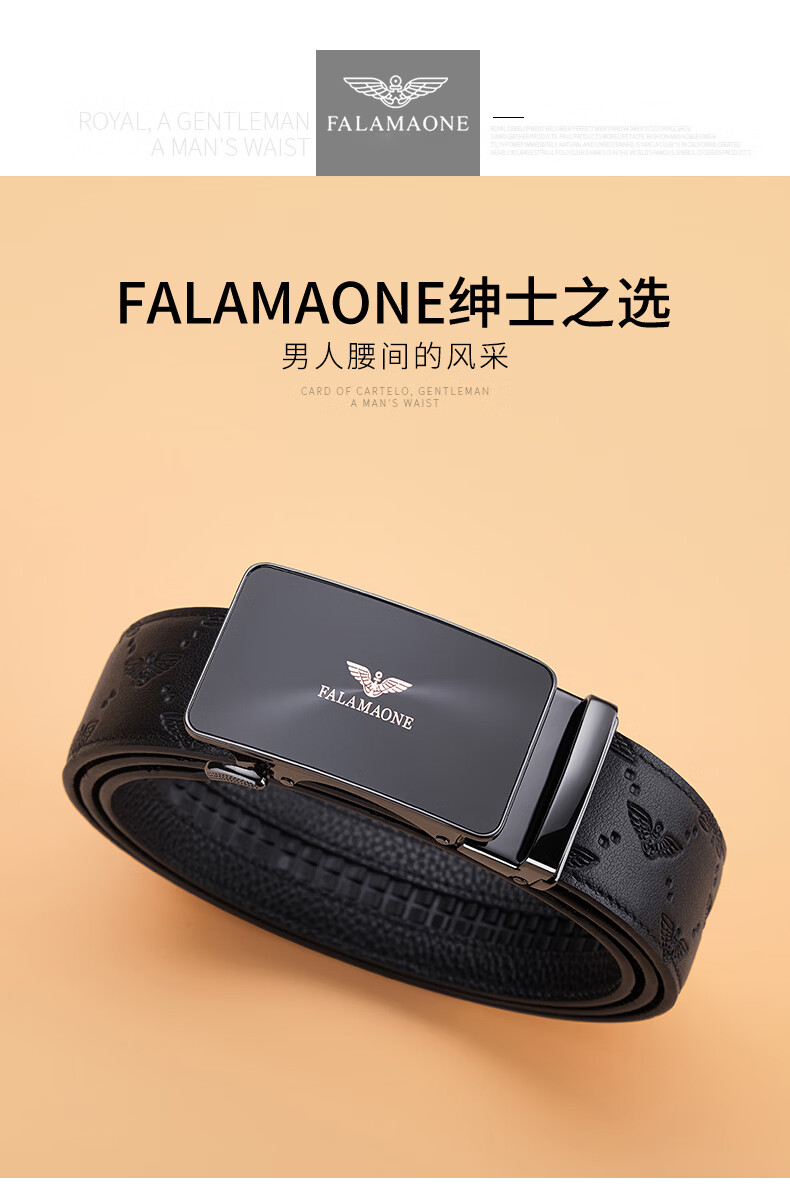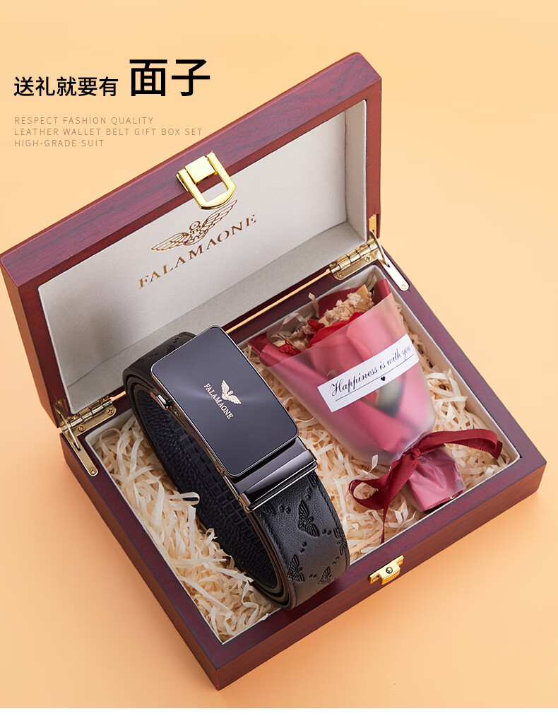 FALAMAONE法莱阿玛尼男士腰带真皮奢侈品正品2025经典款牛皮皮带男士自动扣 新款压花纹【花束+实木礼盒】 120cm 改尺寸下单备注或联系客服