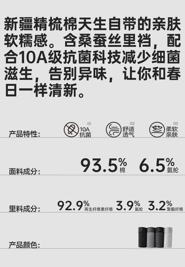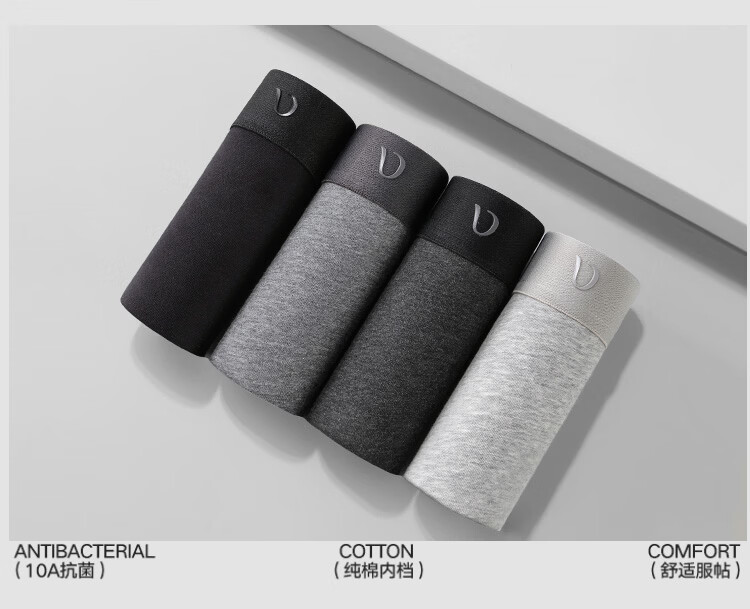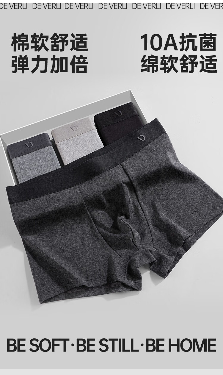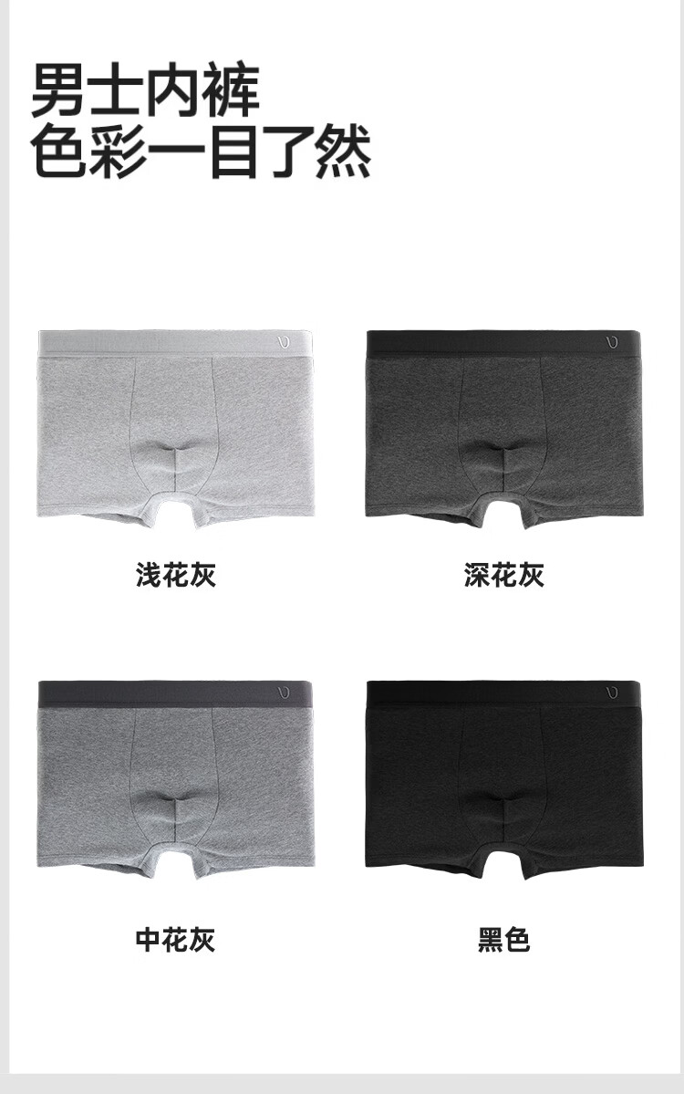 DV花纱新疆棉男士内裤10A抗菌四季通用男生平角短裤头棉质内裤衩4条 浅花灰+中花灰+深花灰+黑色 4条 4XL 190高/180-200斤