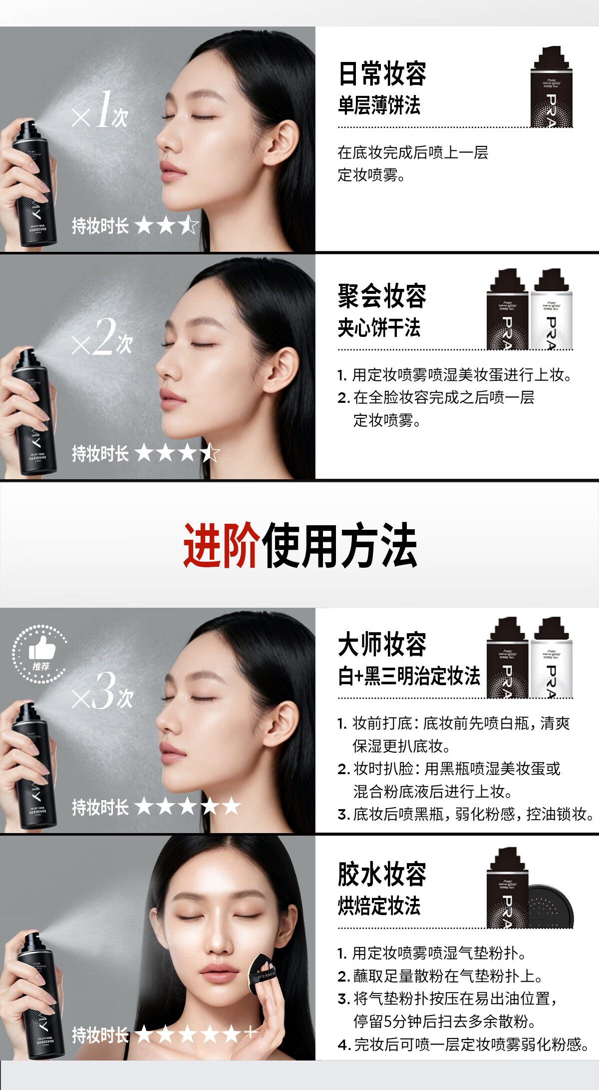 柏瑞美(PRAMY)定妆喷雾经典款持久定妆控油不易脱妆快速成膜D 柔焦雾面(黑瓶)100ml