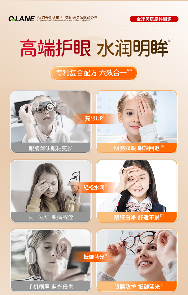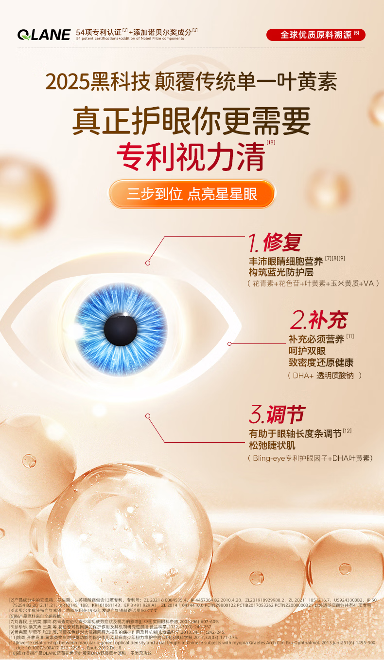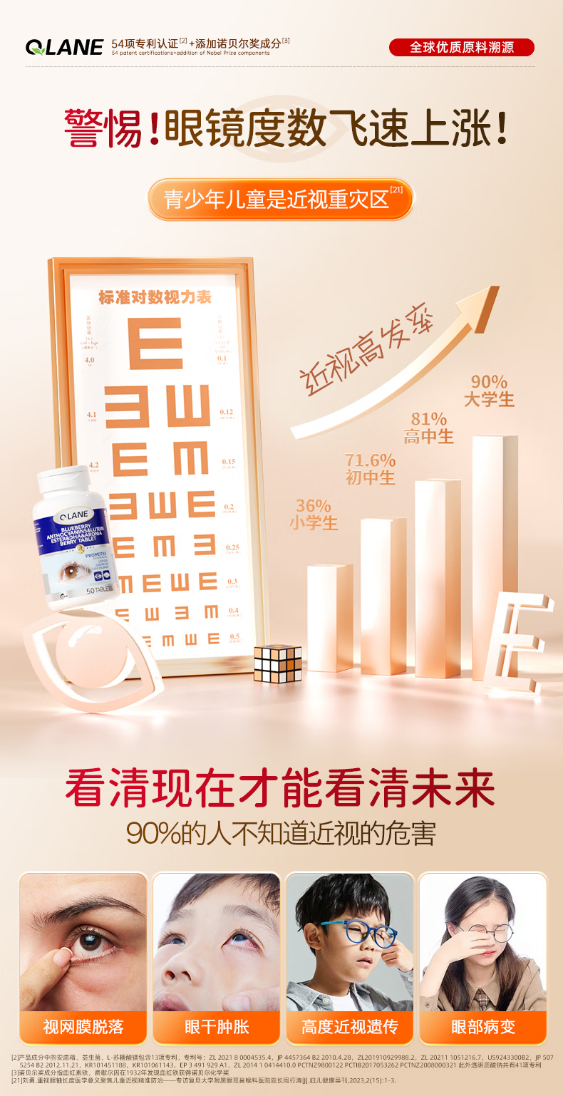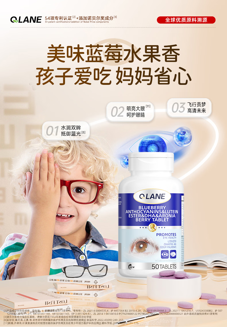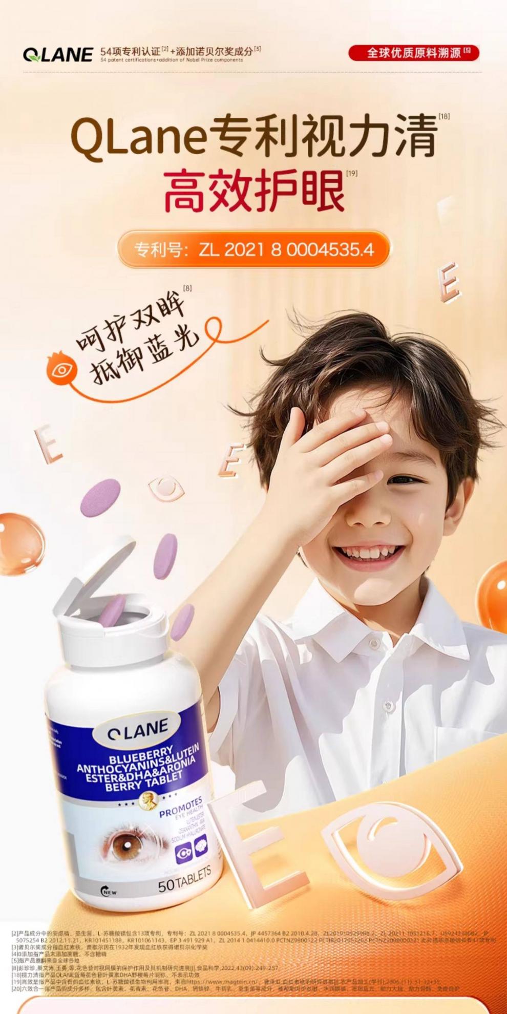 QLANE官方旗舰视立清护眼片蓝莓叶黄素儿童青少年学生3-17防视疲劳 1瓶 不*【贵在运费】 1瓶*1瓶