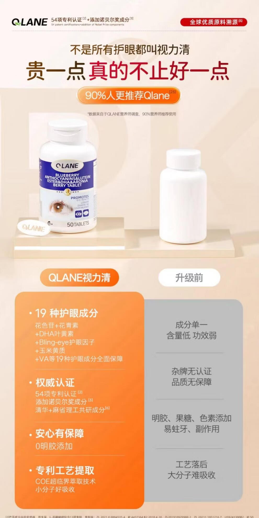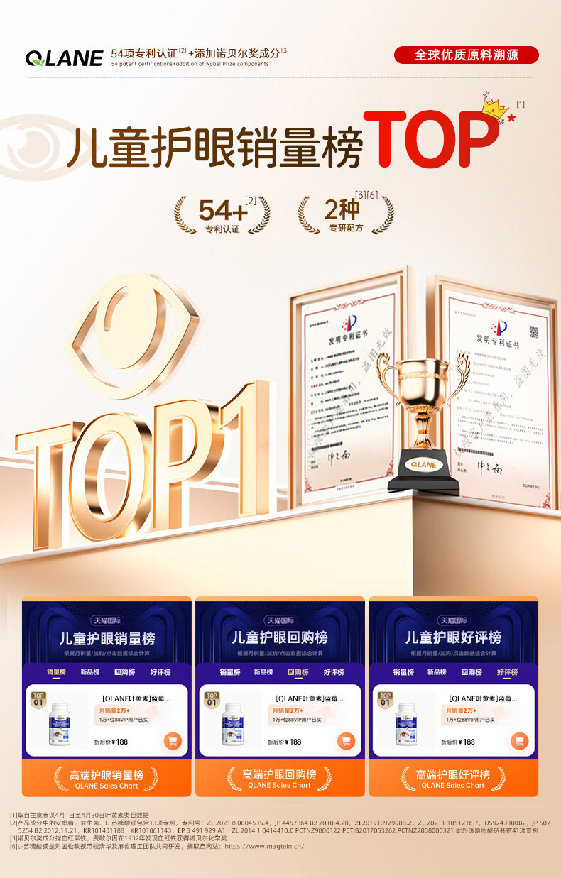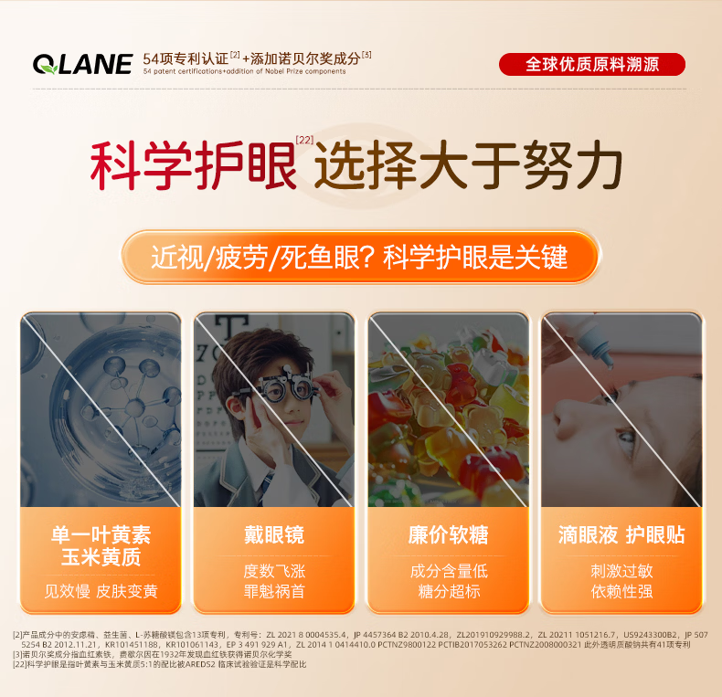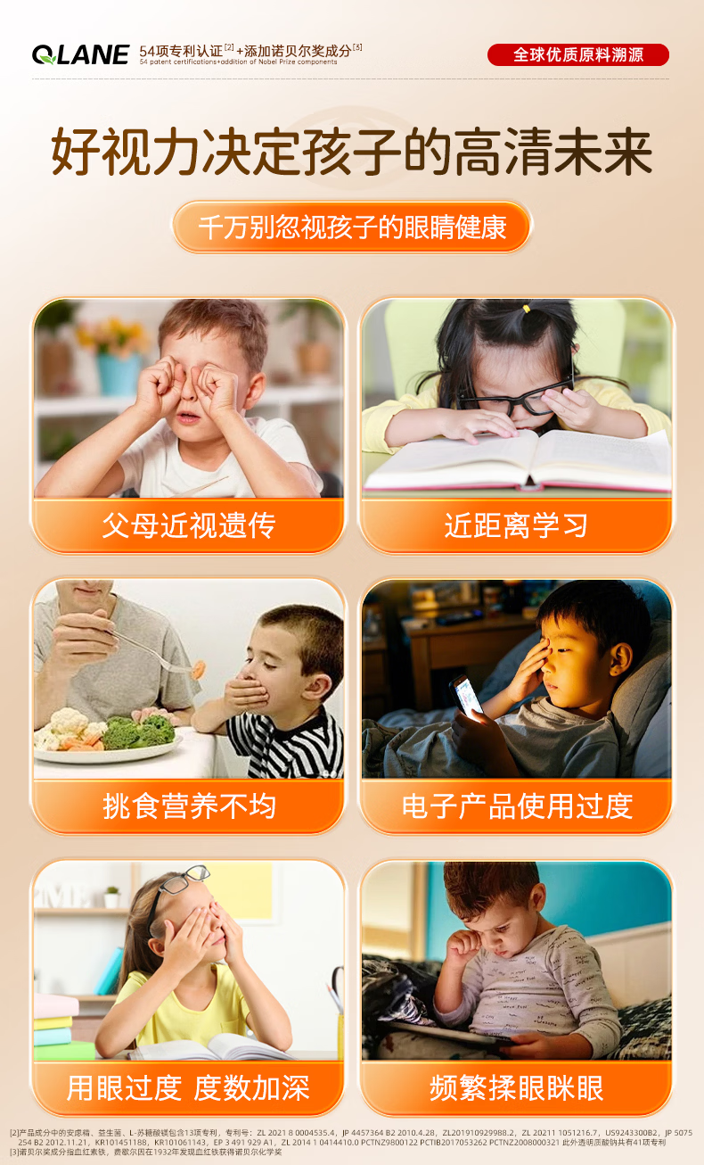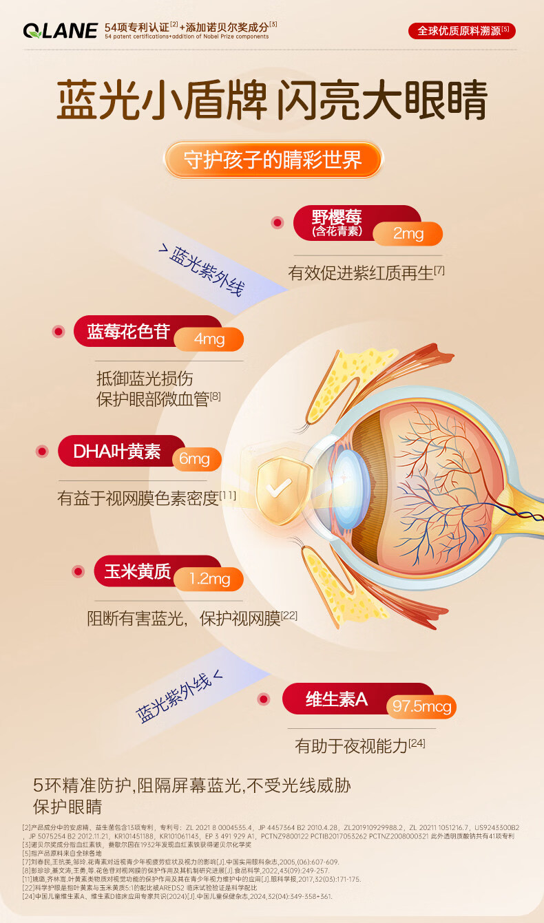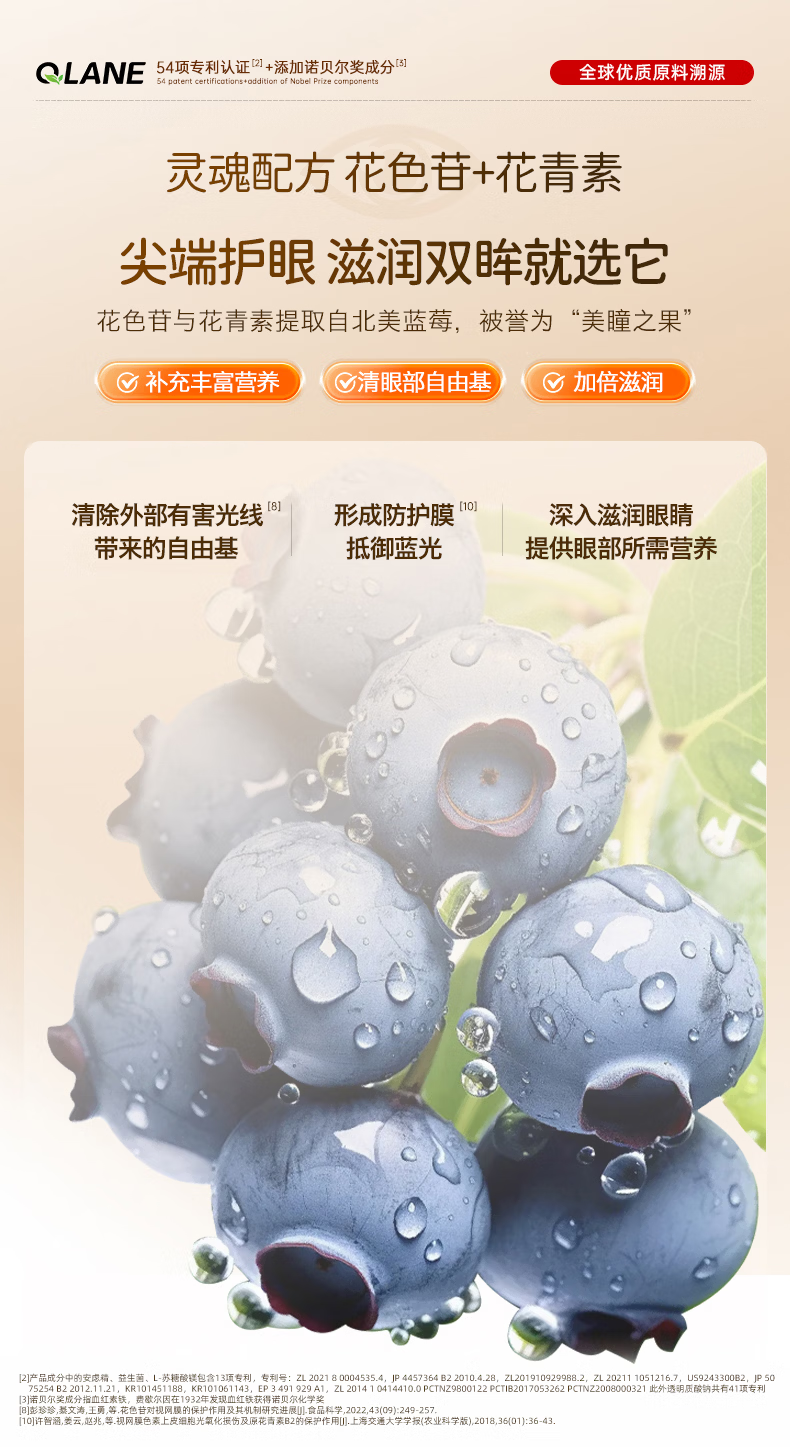 QLANE官方旗舰视立清护眼片蓝莓叶黄素儿童青少年学生3-17防视疲劳 1瓶 不*【贵在运费】 1瓶*1瓶