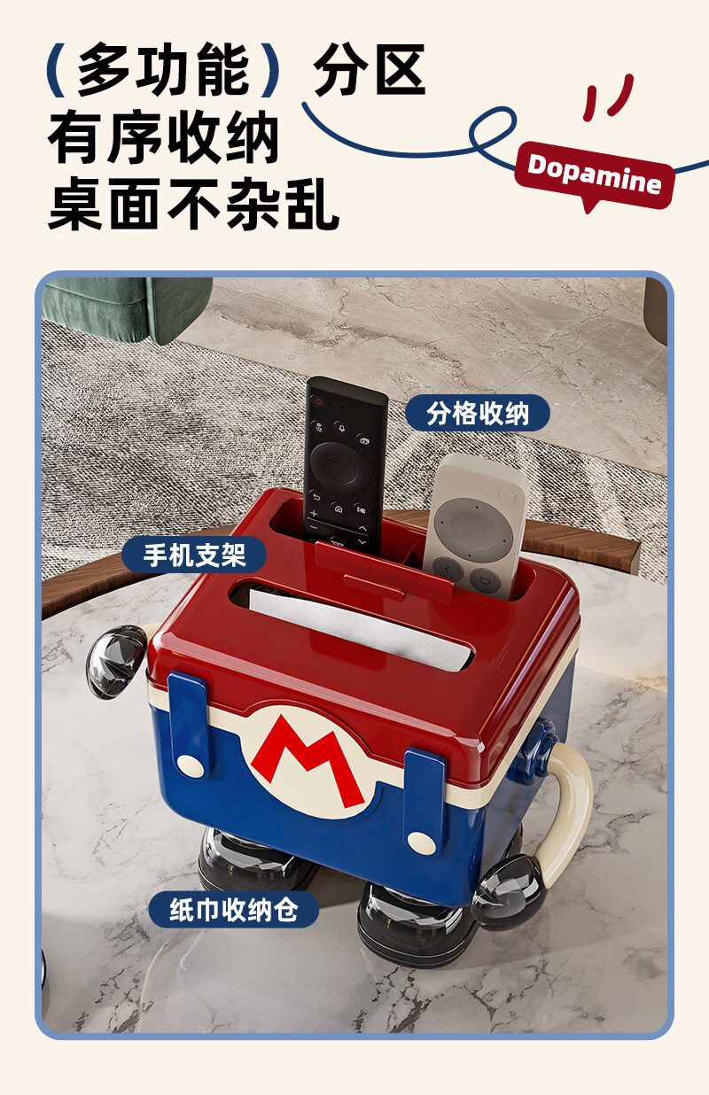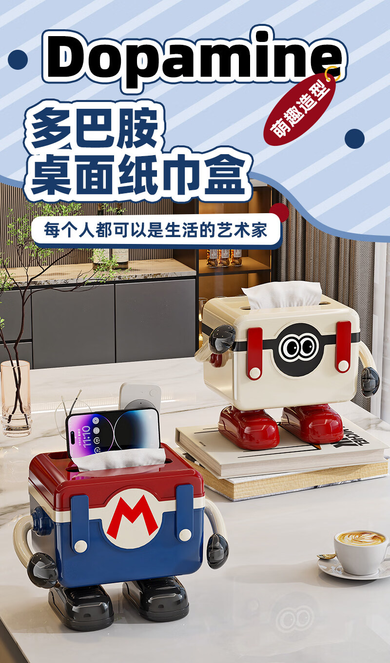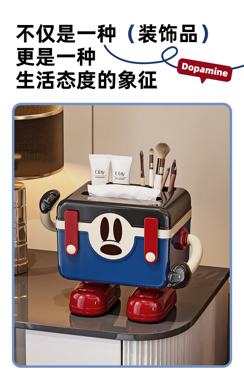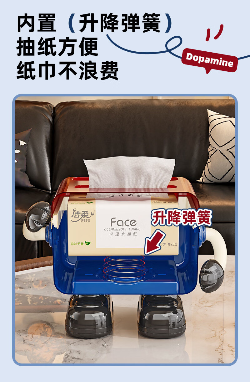 艾仕可(ASCOR)纸巾盒桌面高级感客厅轻奢高档创意多功能摆件抽纸盒纸巾收纳盒 蓝色红脚纸巾盒【自带弹簧/一抽到底】