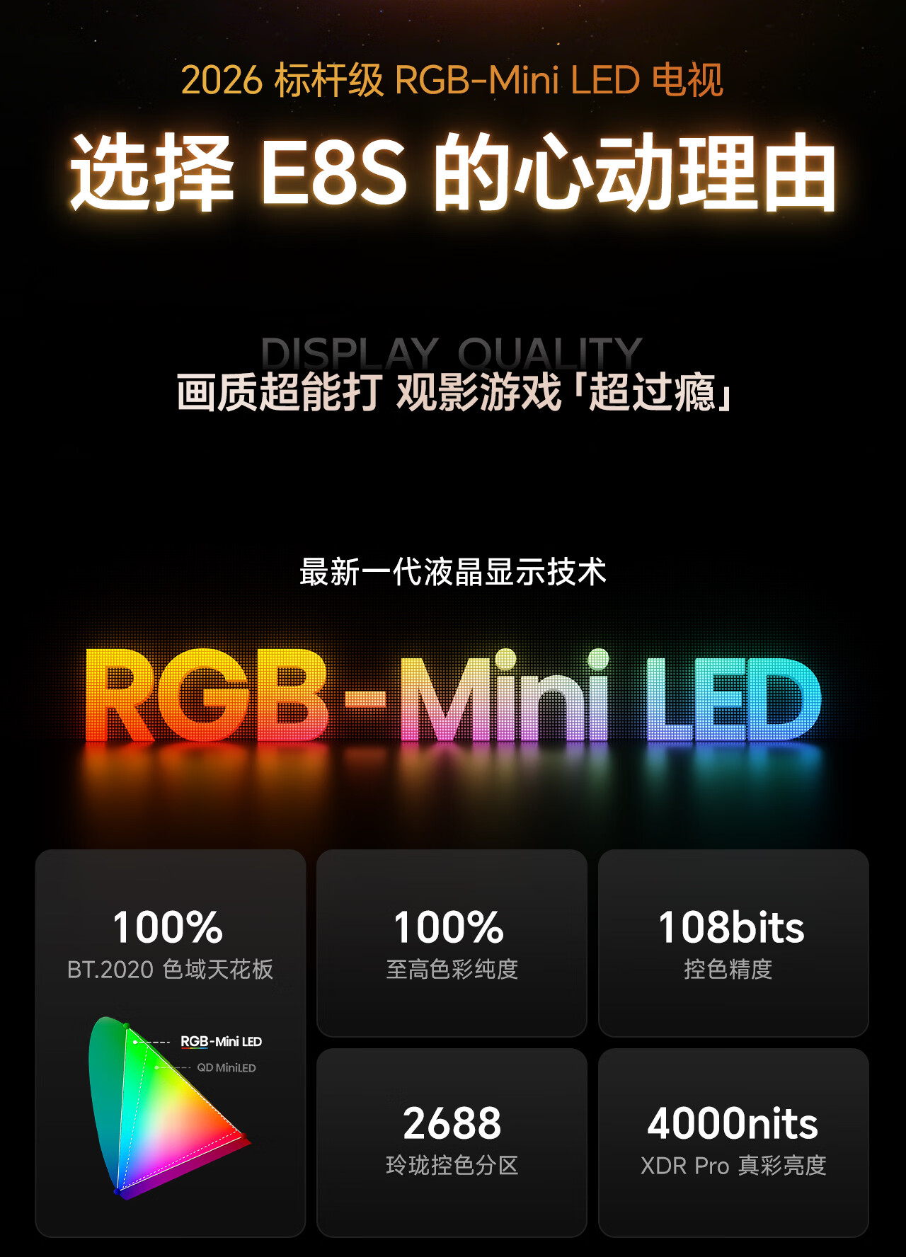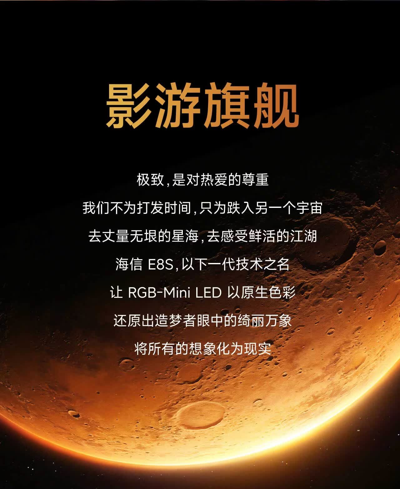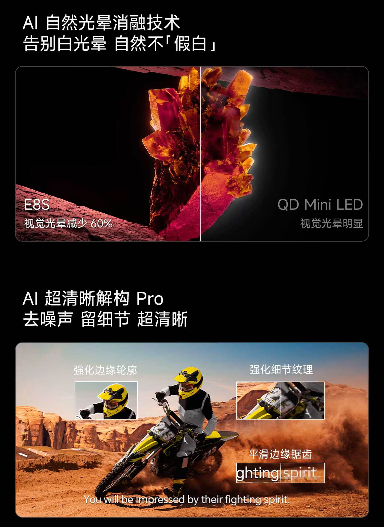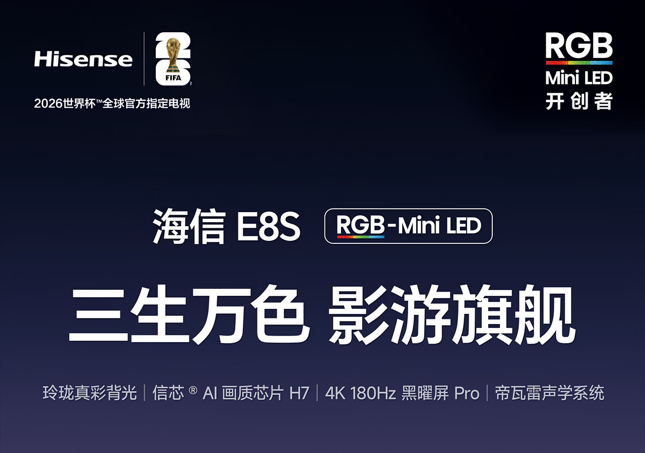 海信(Hisense)海信RGB-MiniLED电视 E8S 65吋玲珑真彩背光 H7芯片黑曜屏Pro180Hz高刷 世界杯定制电视E8QPro升级 65英寸