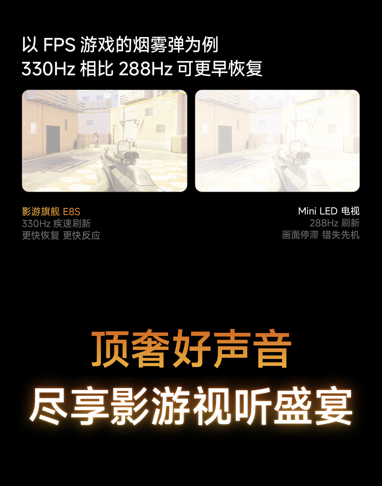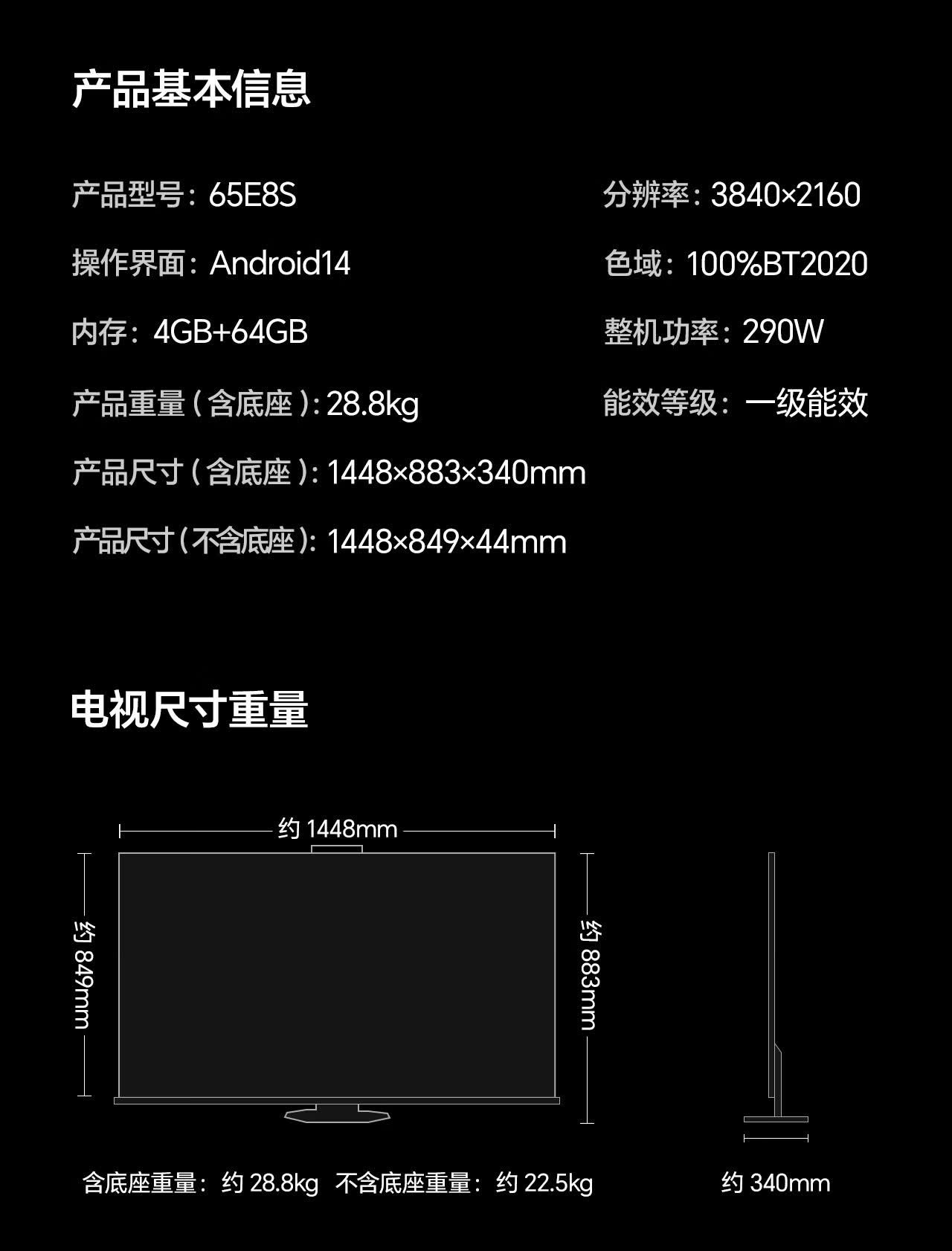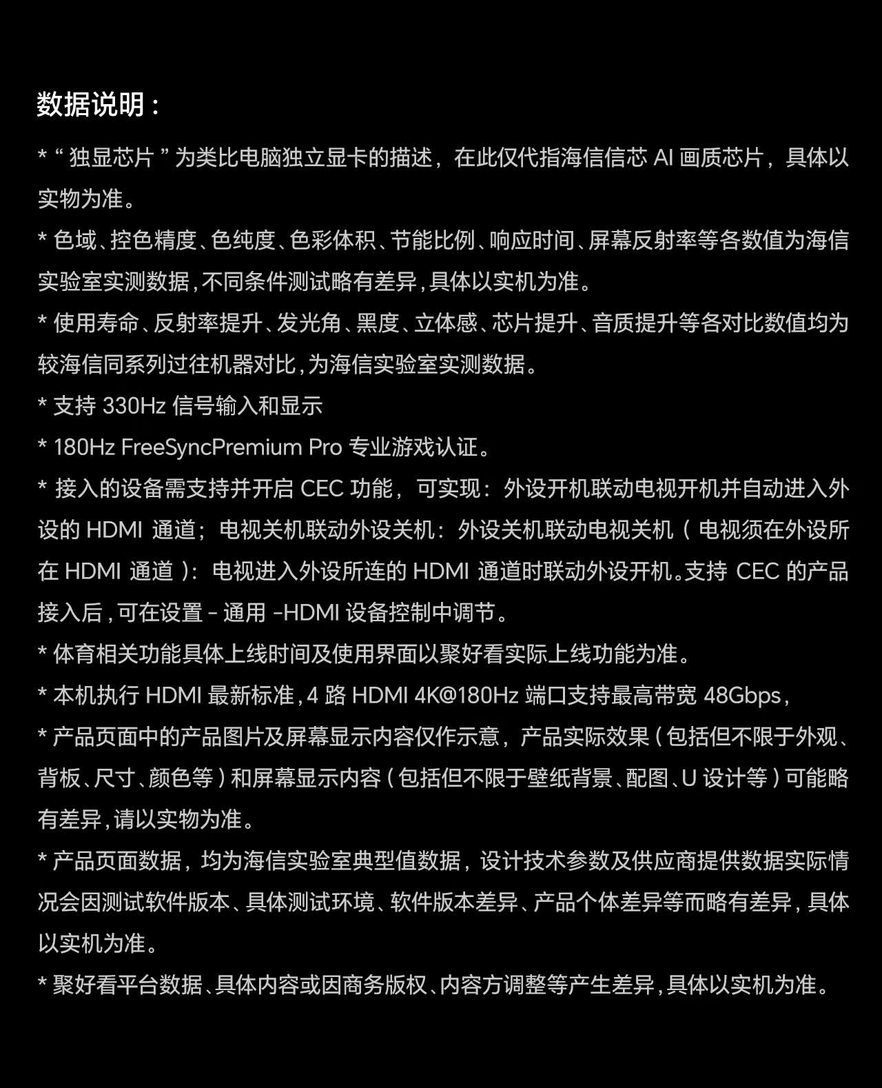 海信(Hisense)海信RGB-MiniLED电视 E8S 65吋玲珑真彩背光 H7芯片黑曜屏Pro180Hz高刷 世界杯定制电视E8QPro升级 65英寸