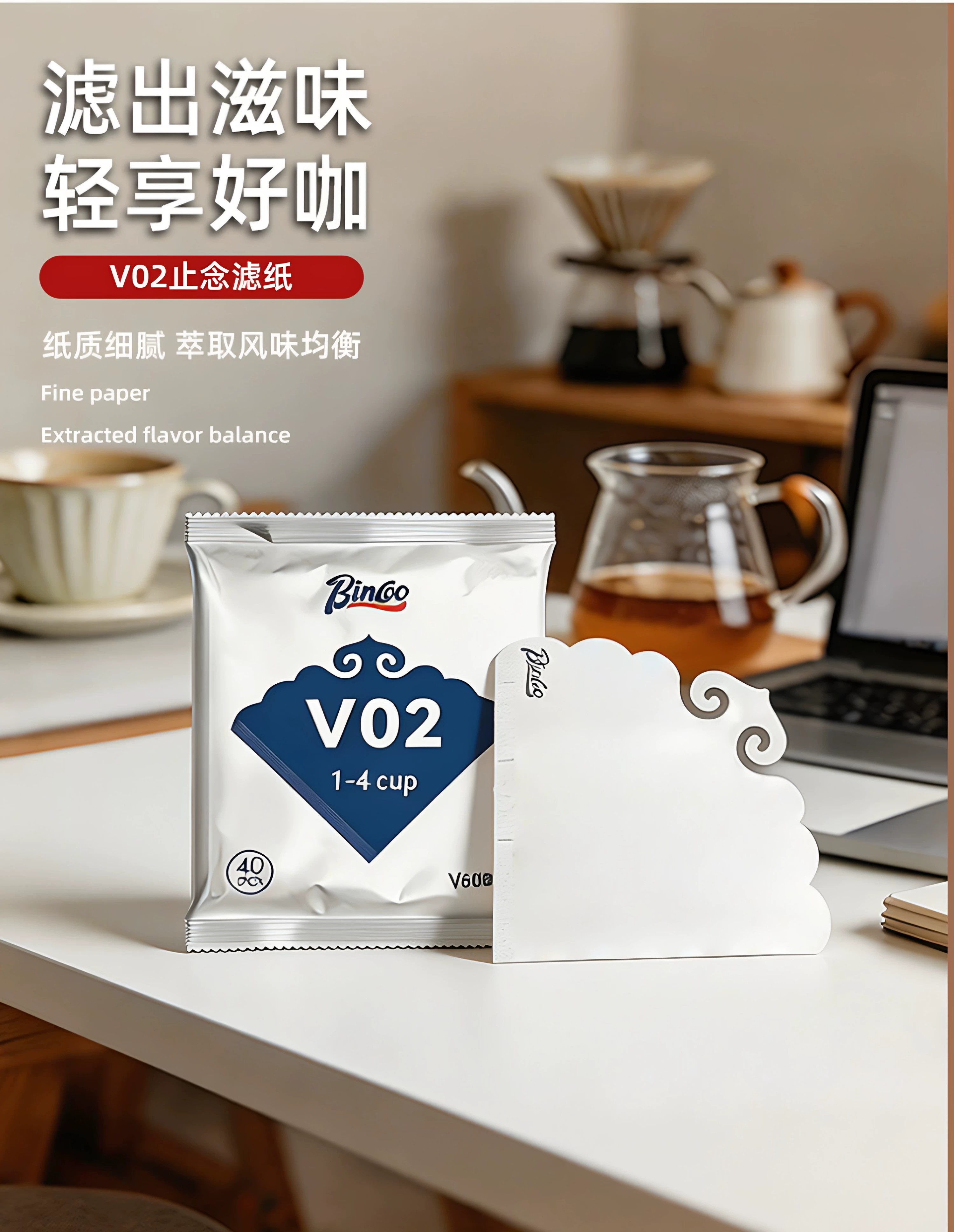 Bincoo手冲咖啡滤纸V型滤网滴漏式大号手冲滤杯通用创意个性滤纸 悟空滤纸V02【40张】 40张
