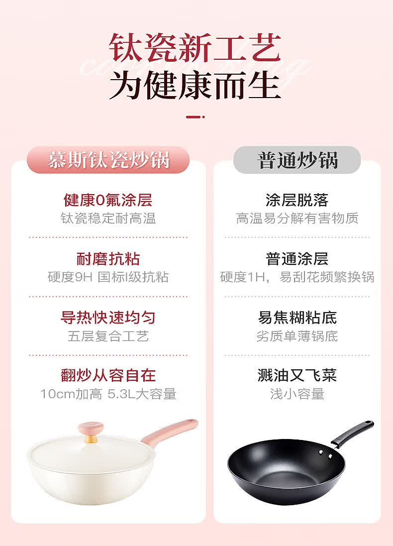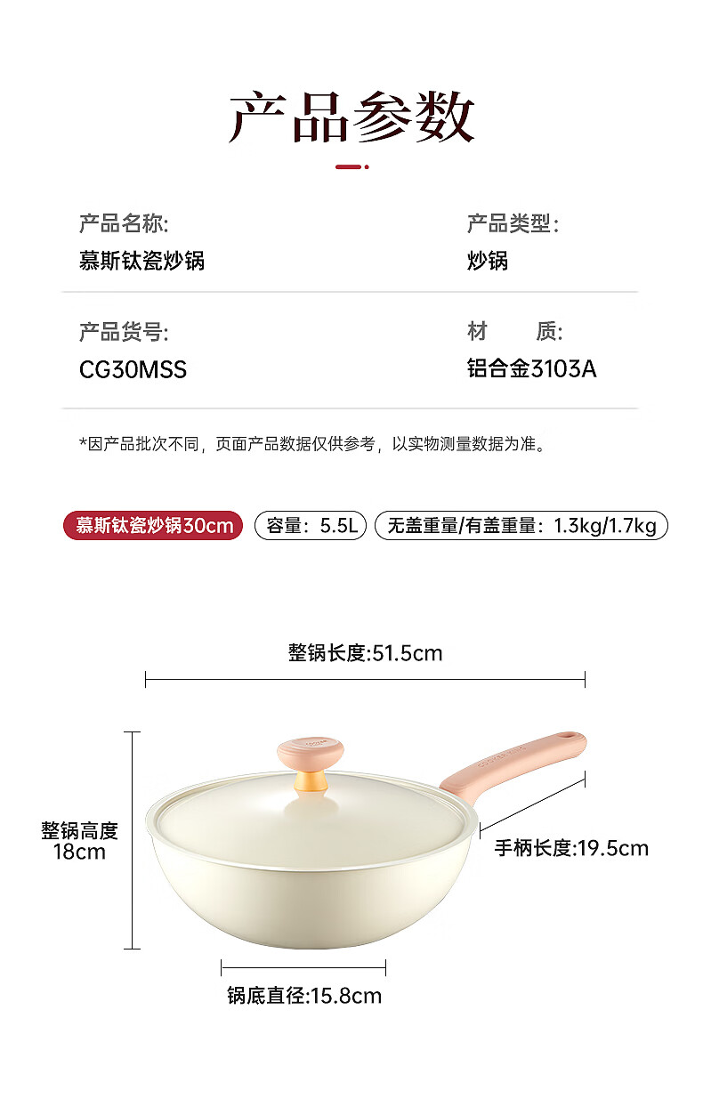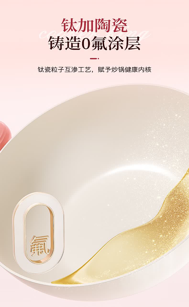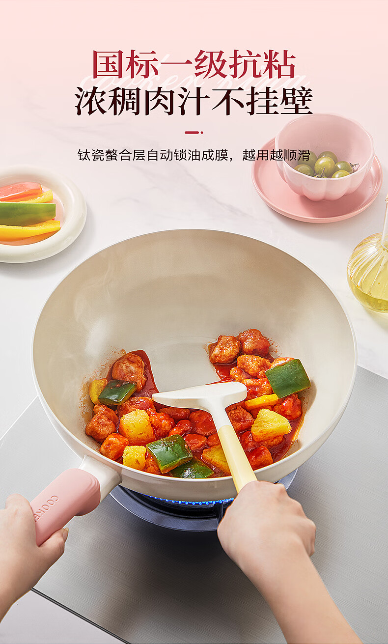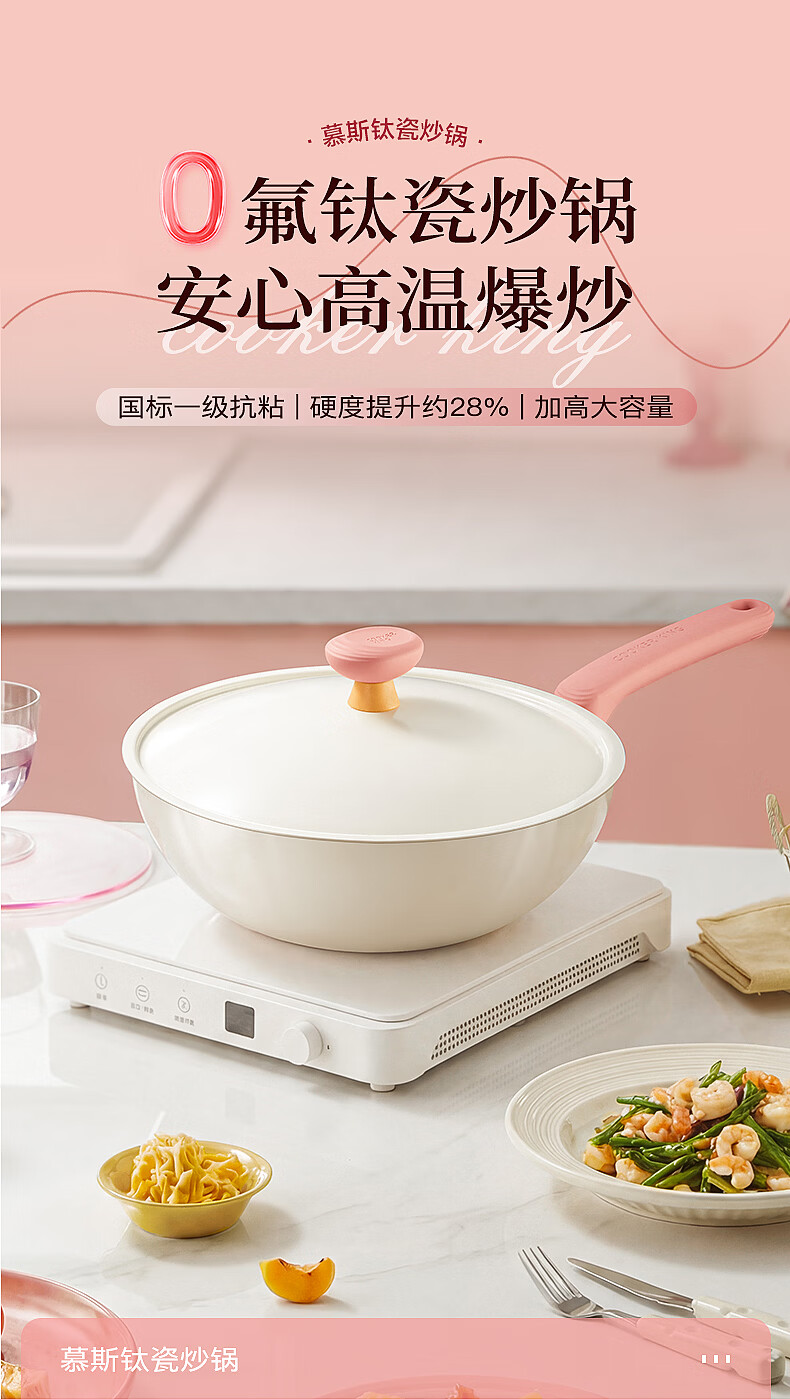 炊大皇(COOKER KING)炒锅钛瓷0氟涂层不粘锅慕斯钛瓷炒锅30cm燃磁通用 慕斯钛瓷不粘炒锅 30cm