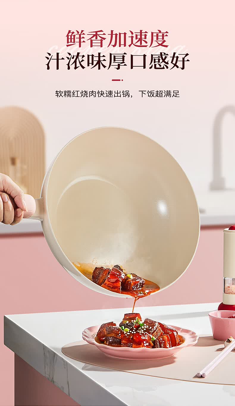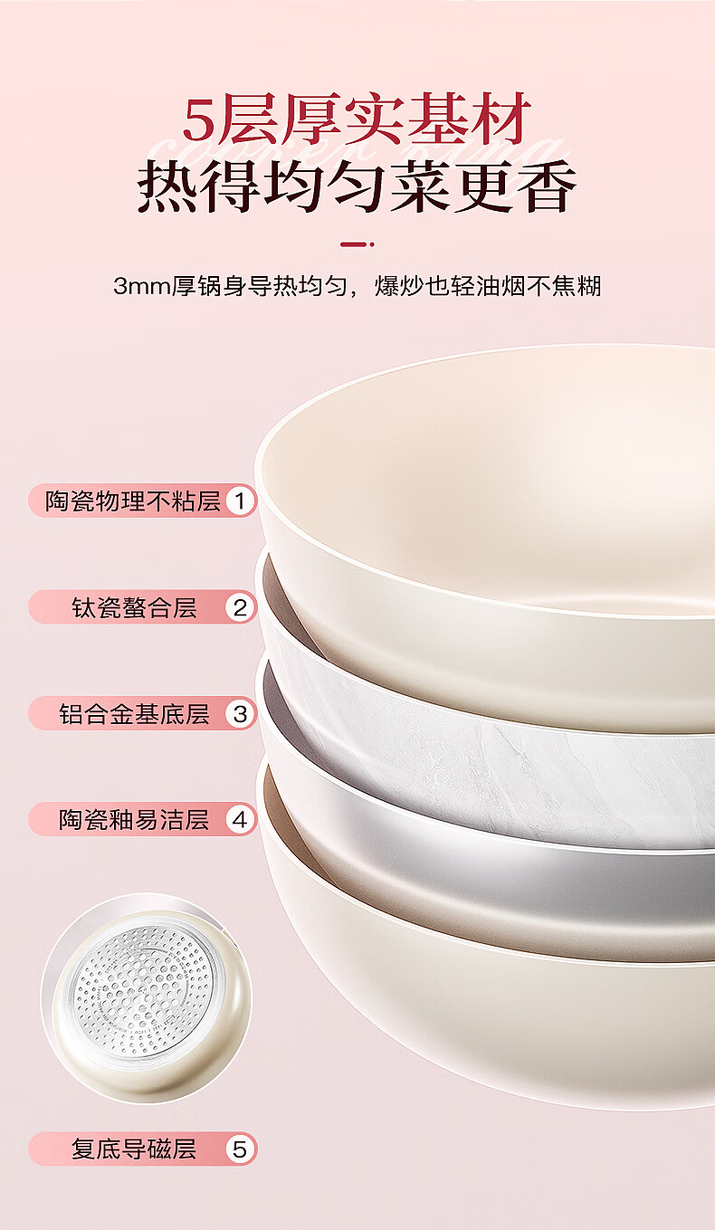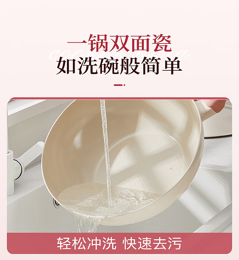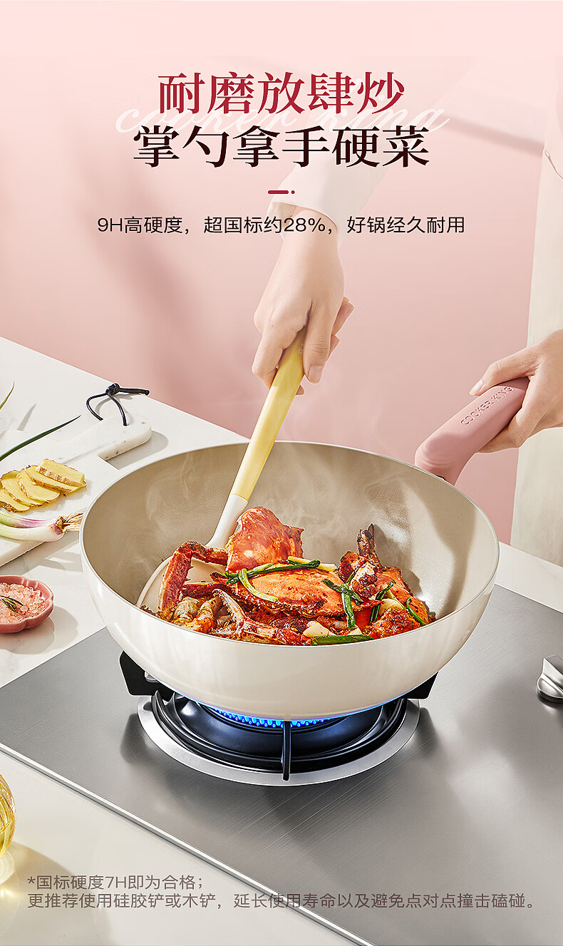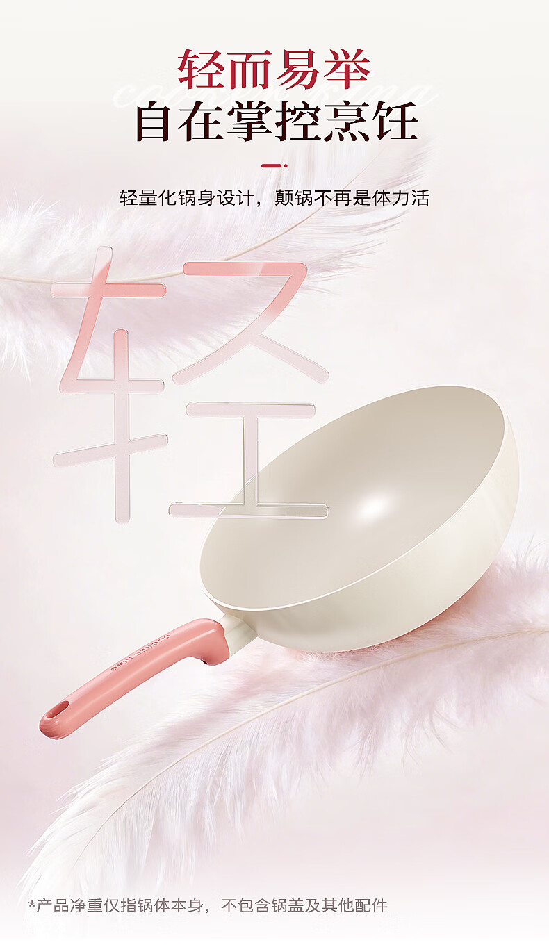 炊大皇(COOKER KING)炒锅钛瓷0氟涂层不粘锅慕斯钛瓷炒锅30cm燃磁通用 慕斯钛瓷不粘炒锅 30cm