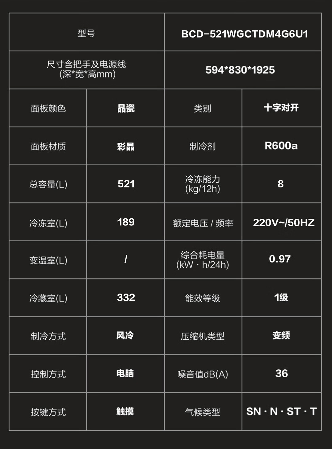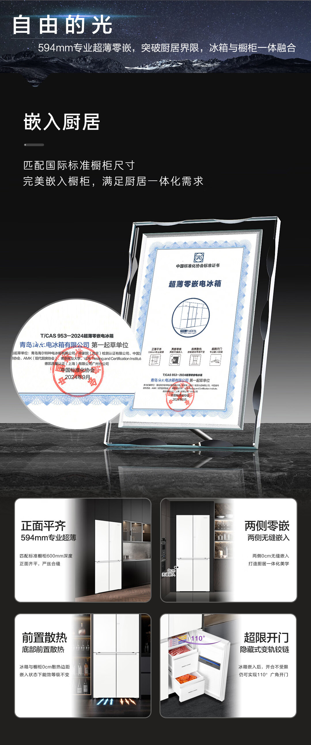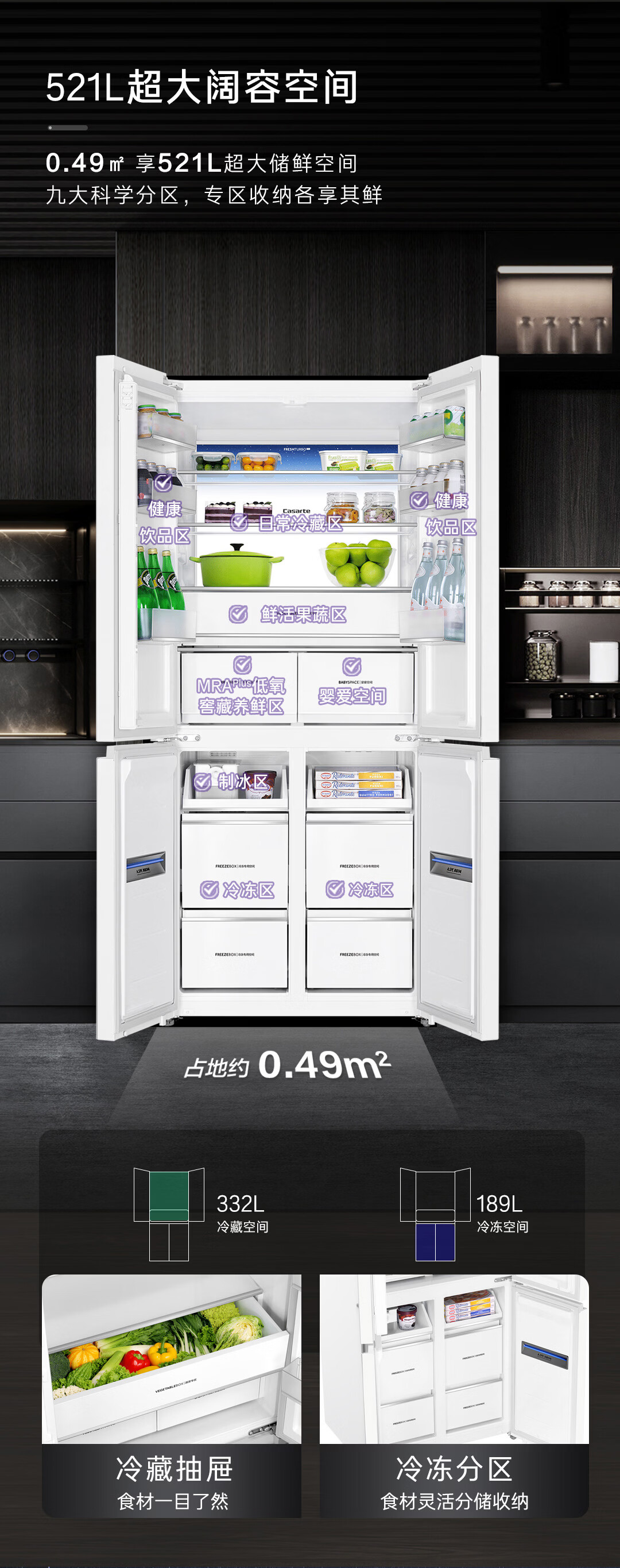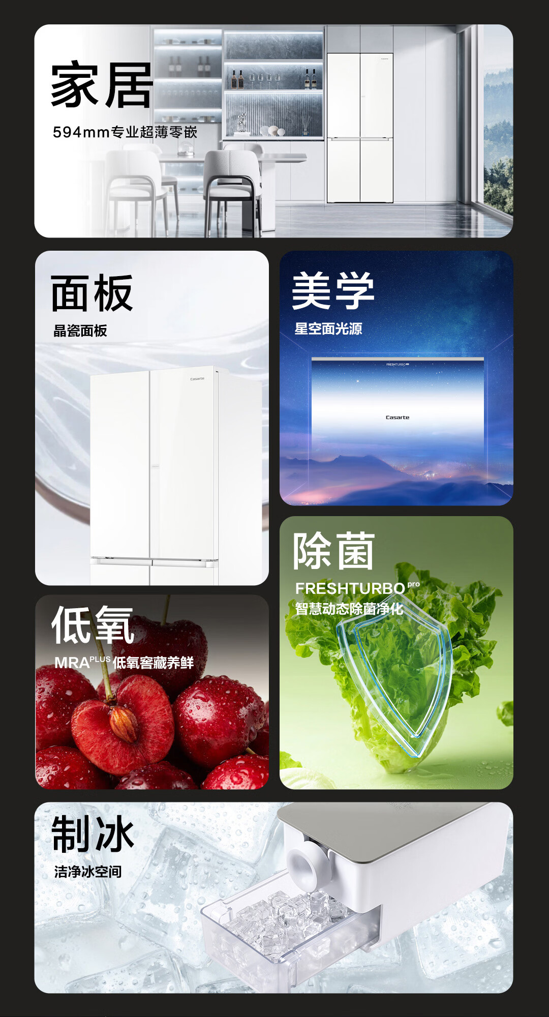 Casarte卡萨帝521升十字门冰箱零距离自由嵌入式冷藏冷冻动态杀菌以旧换新国家补贴至高立减15%