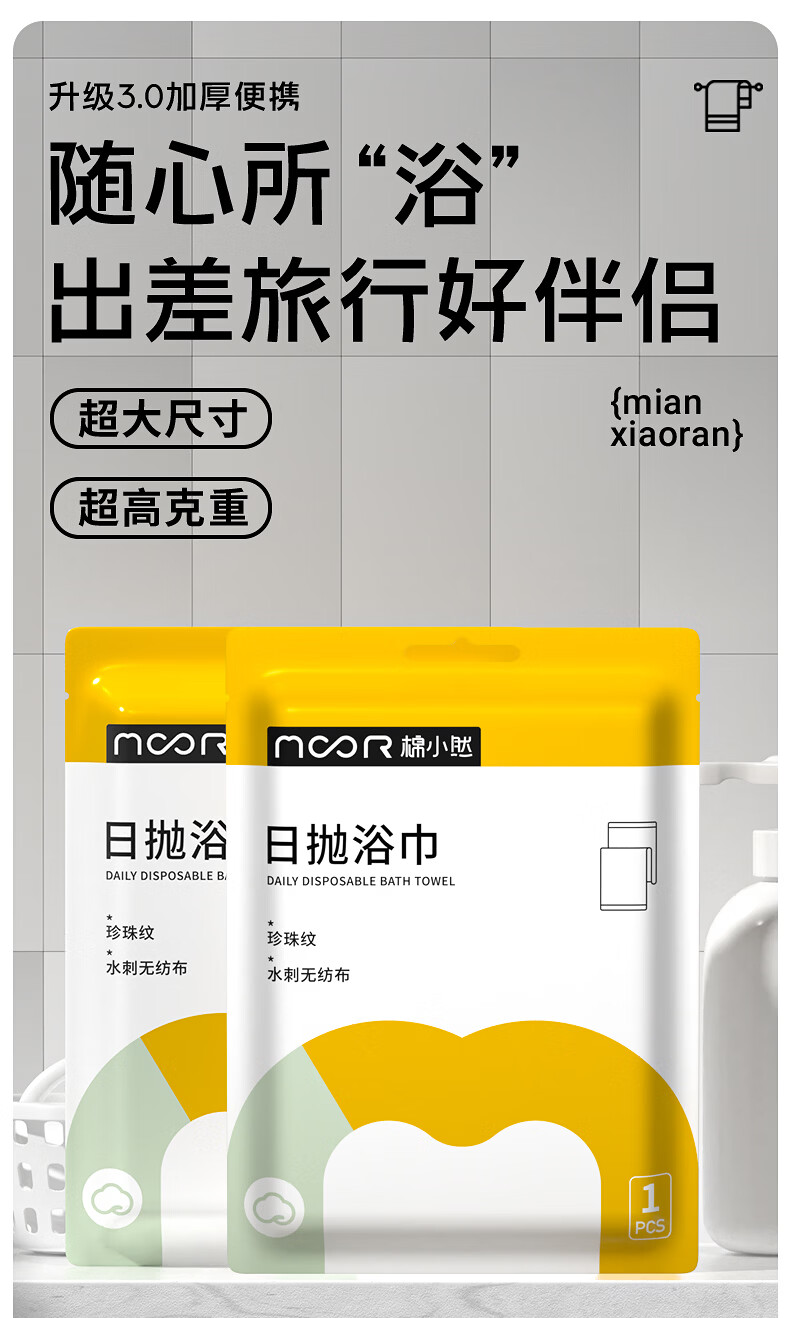 棉小然一次性浴巾70*140cm加大加厚珍珠纹独立包装出差旅行必备酒店用品 一次性浴巾 3条