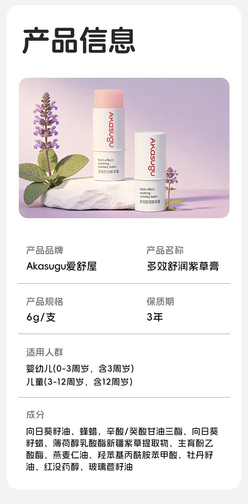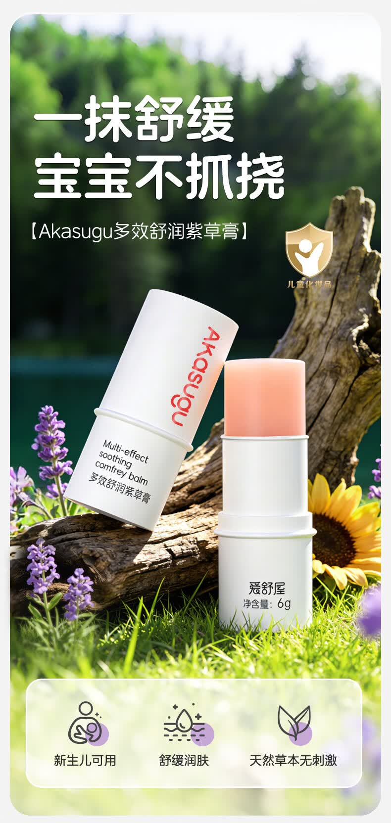 Akasugu多效舒润紫草膏儿童宝宝户外叮咬多效修护防蚊止痒 【两支装】6g*2