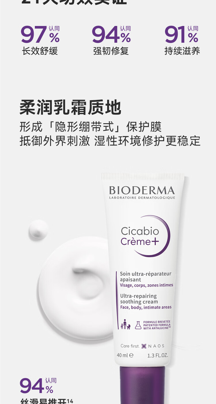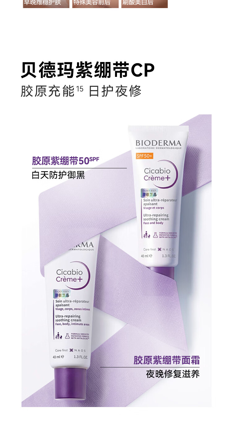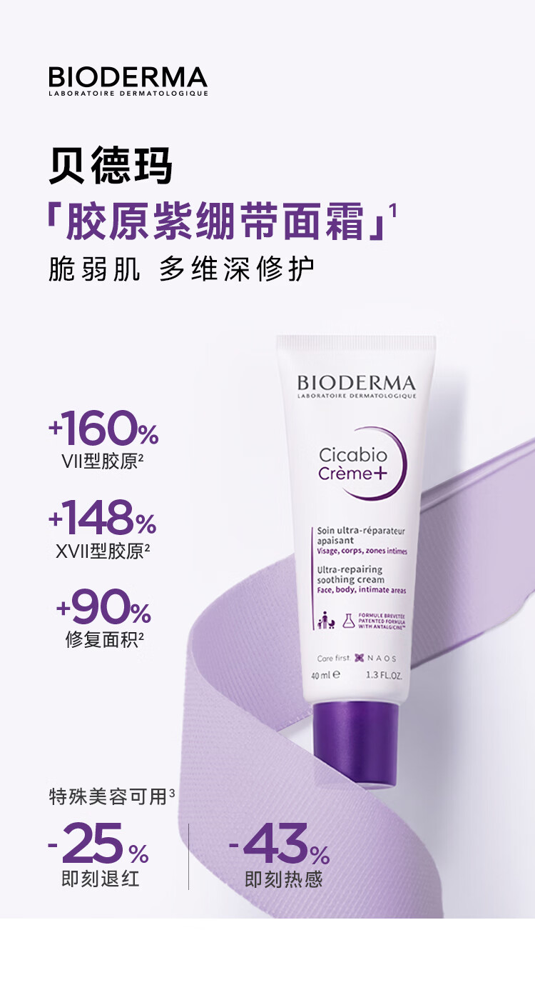 贝德玛(BIODERMA)胶原紫绷带面霜修护舒缓特殊美容后可用保湿受损脆弱肌 紫绷带面霜40ml