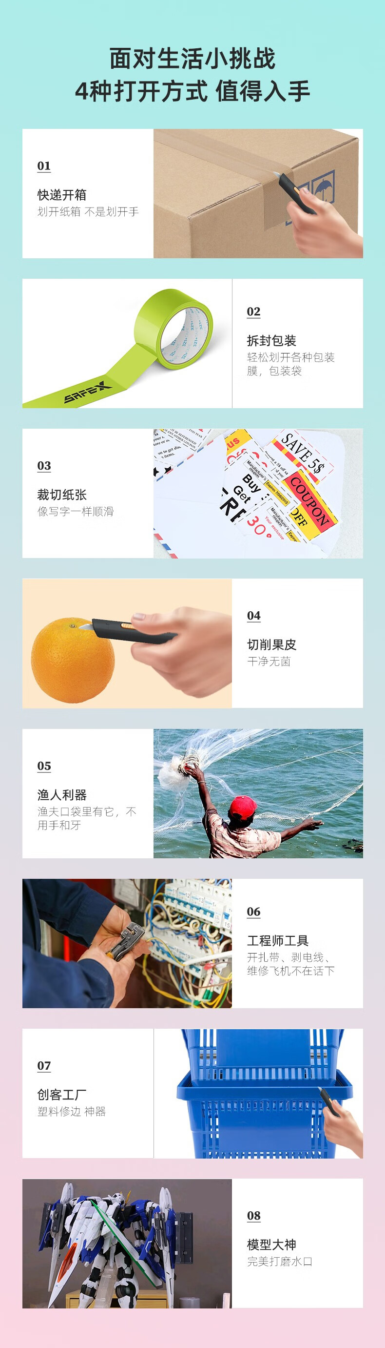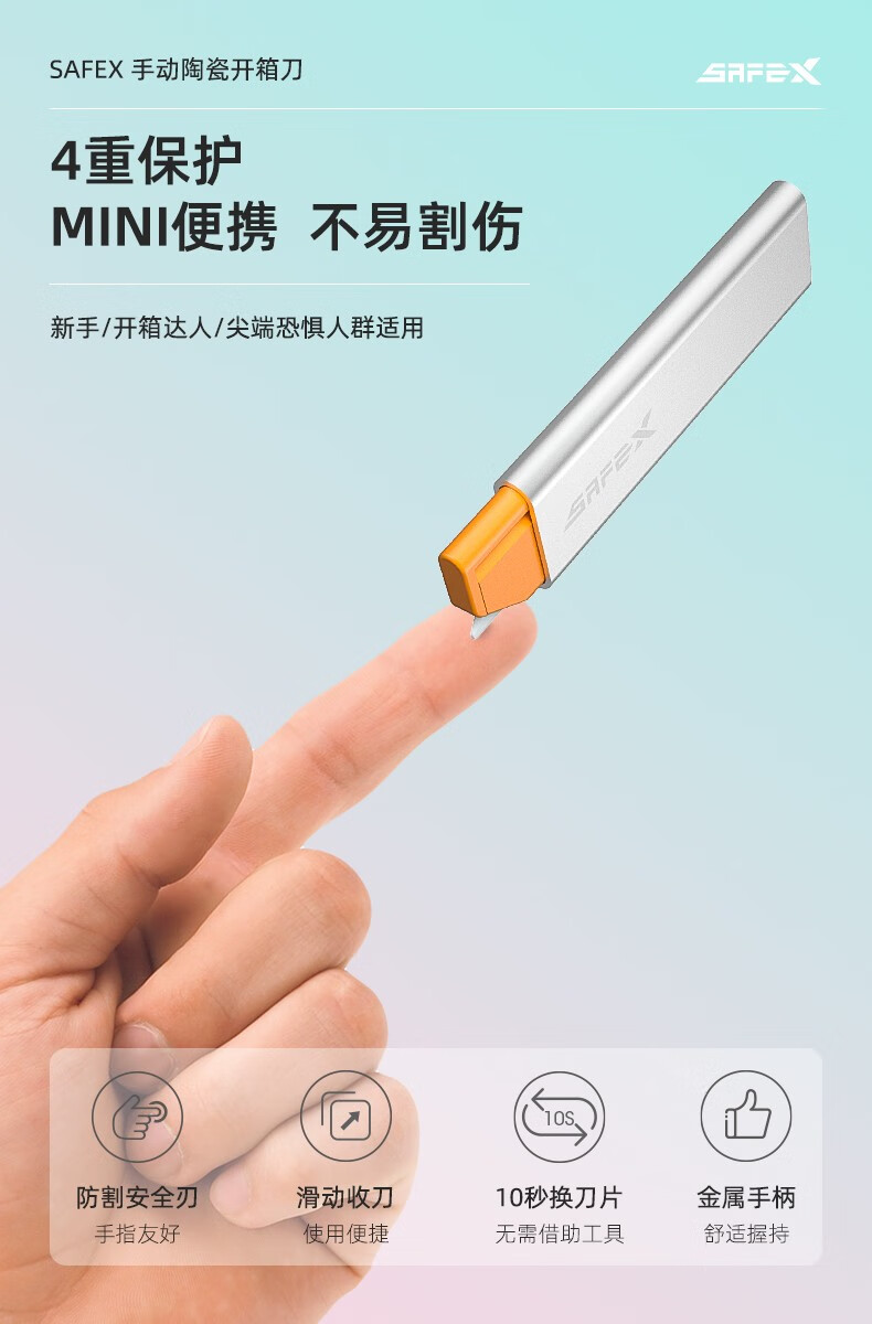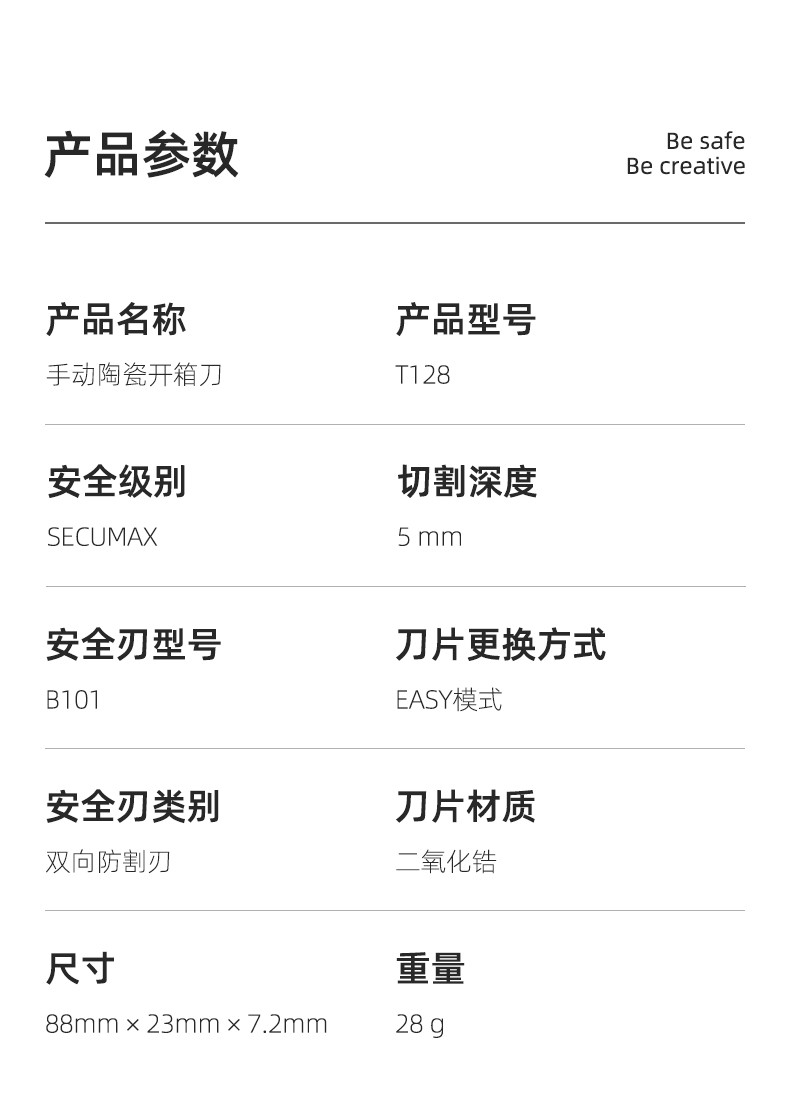 SAFEX 高颜值开箱刀美工刀快递刀拆快递神器开箱神器开箱好物陶瓷安全刀拆快递刀迷你便携开快递安全刀 T128-经典黑
