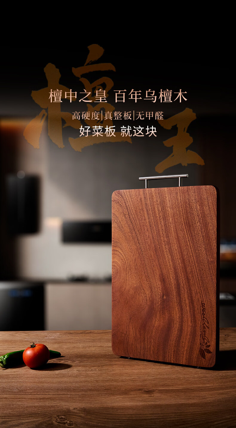 咏幻整木乌檀木菜板抗菌防霉家用切菜板实木砧板双面案板厨房专用 【进口整木乌金檀】 45*30*2.5CM 4-6