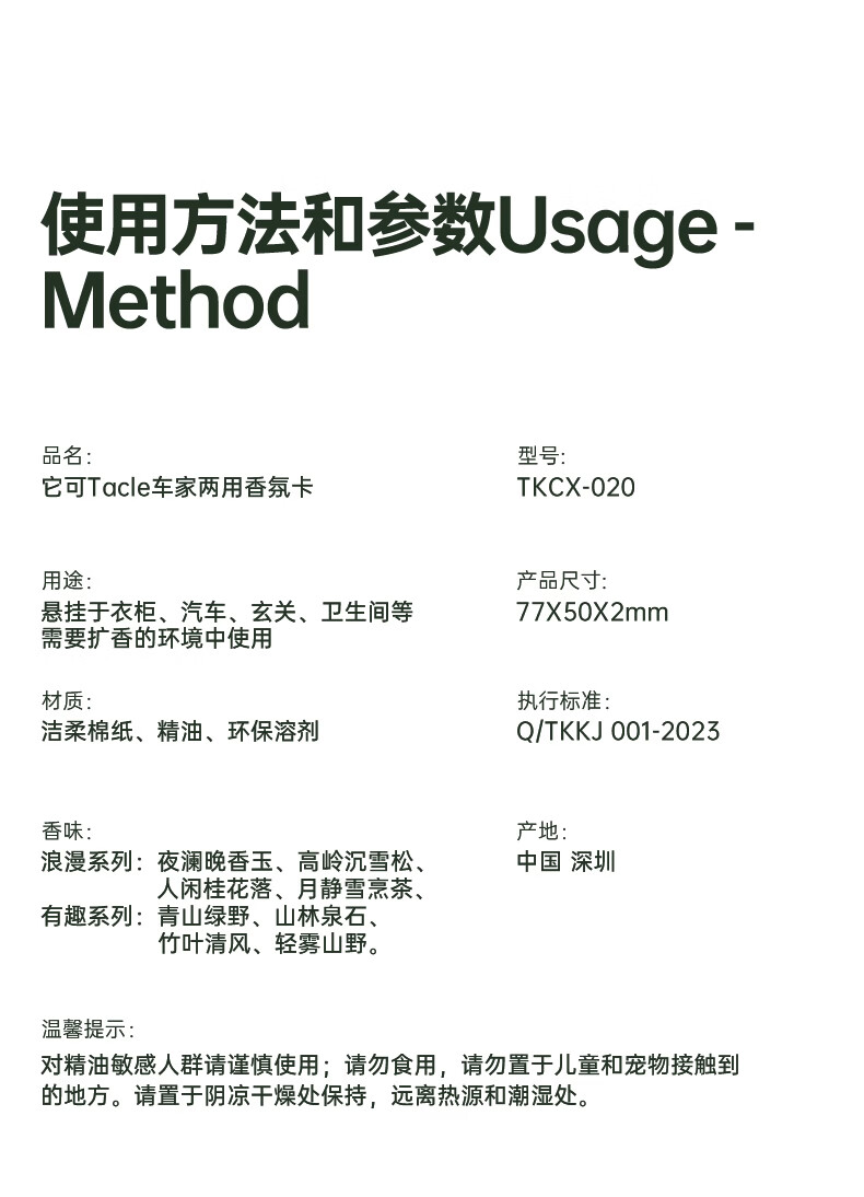 TACLE它可车载香片持久留香车载香薰片汽车香片挂件车内挂饰衣柜香氛片 男士推荐香4片