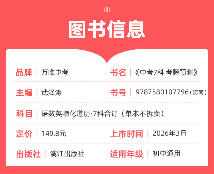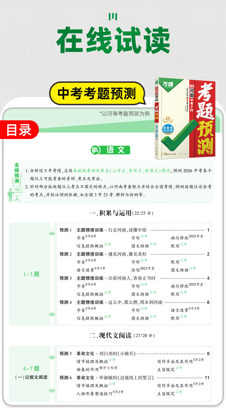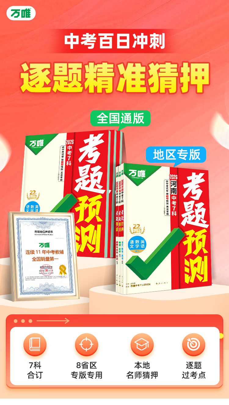 2026万唯中考7科考题预测临考抢分攻略逐题预测答题模板提分视频初三总复习考前押题语数英物化道历全国通版8省专版万维教育 【考题预测】逐题攻克 河南专版