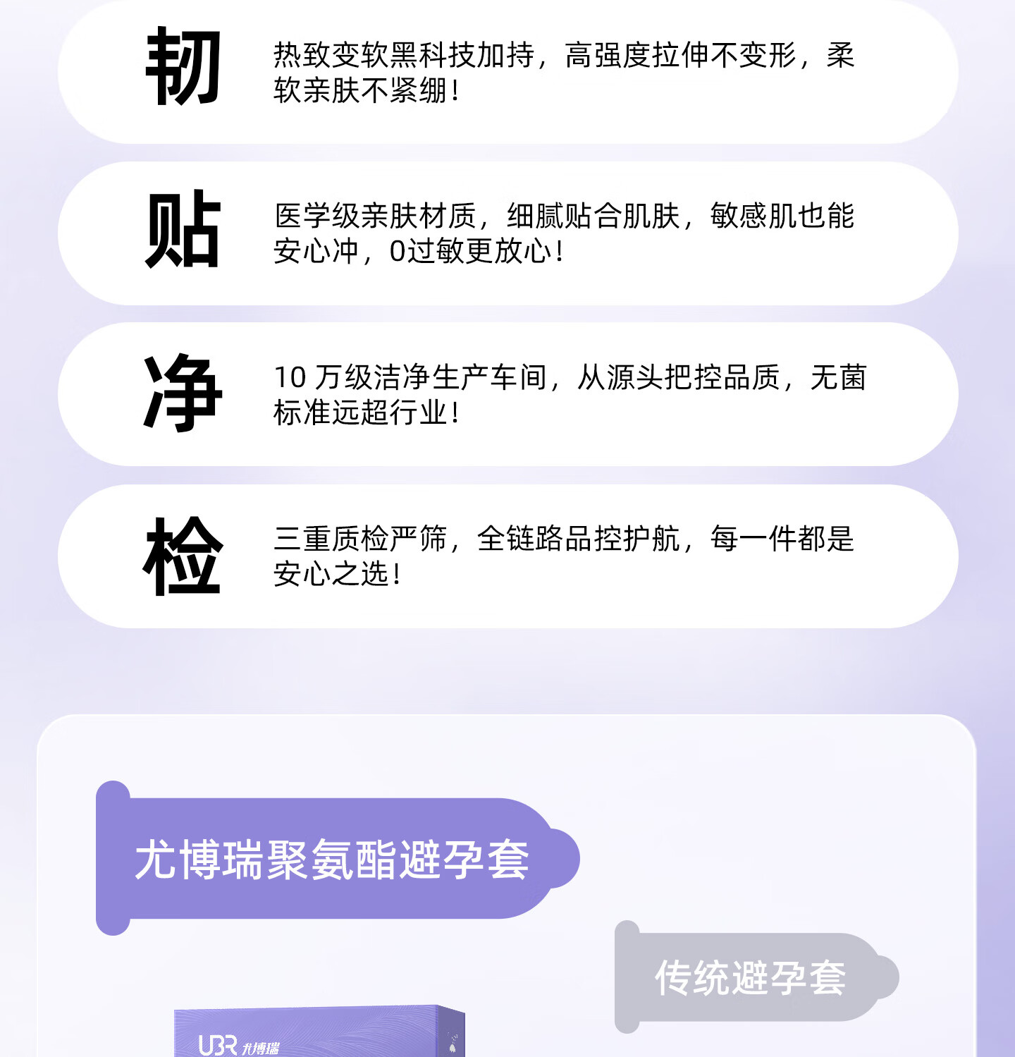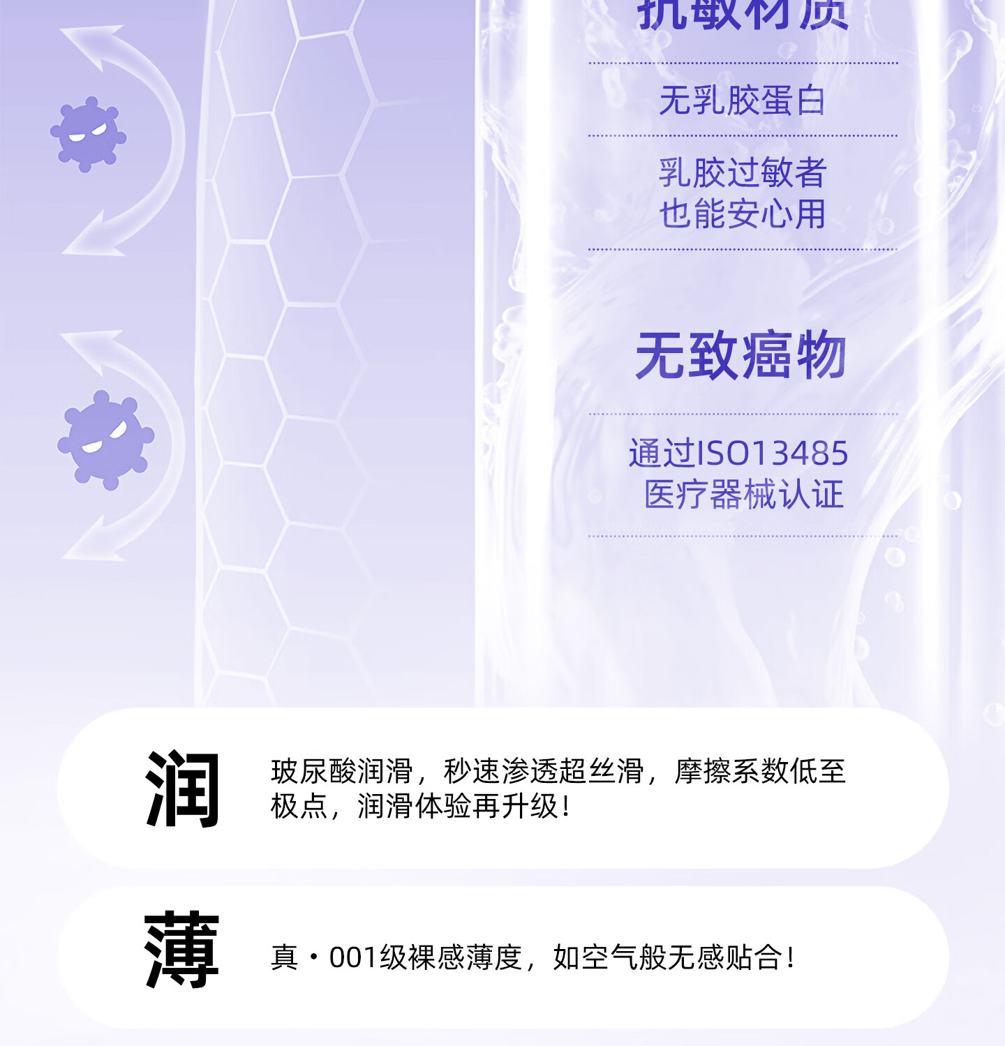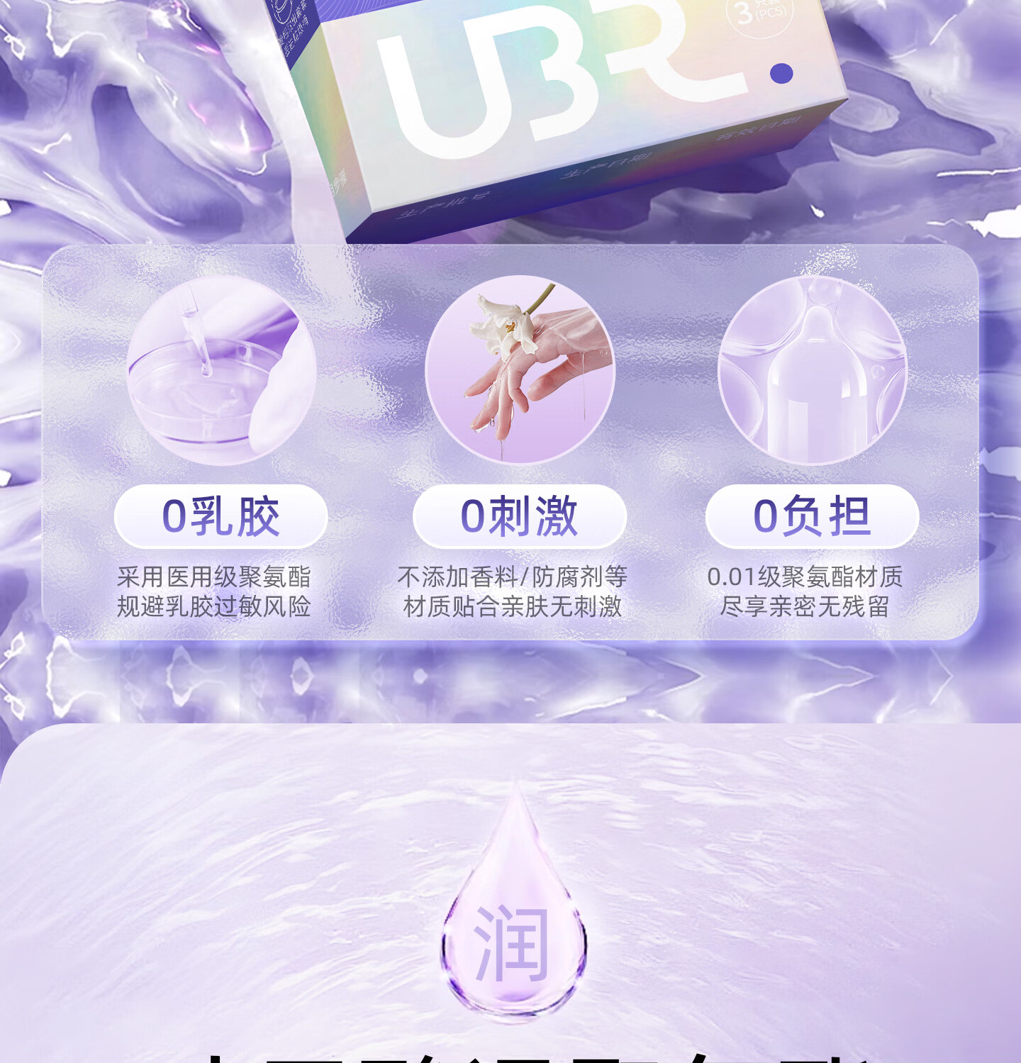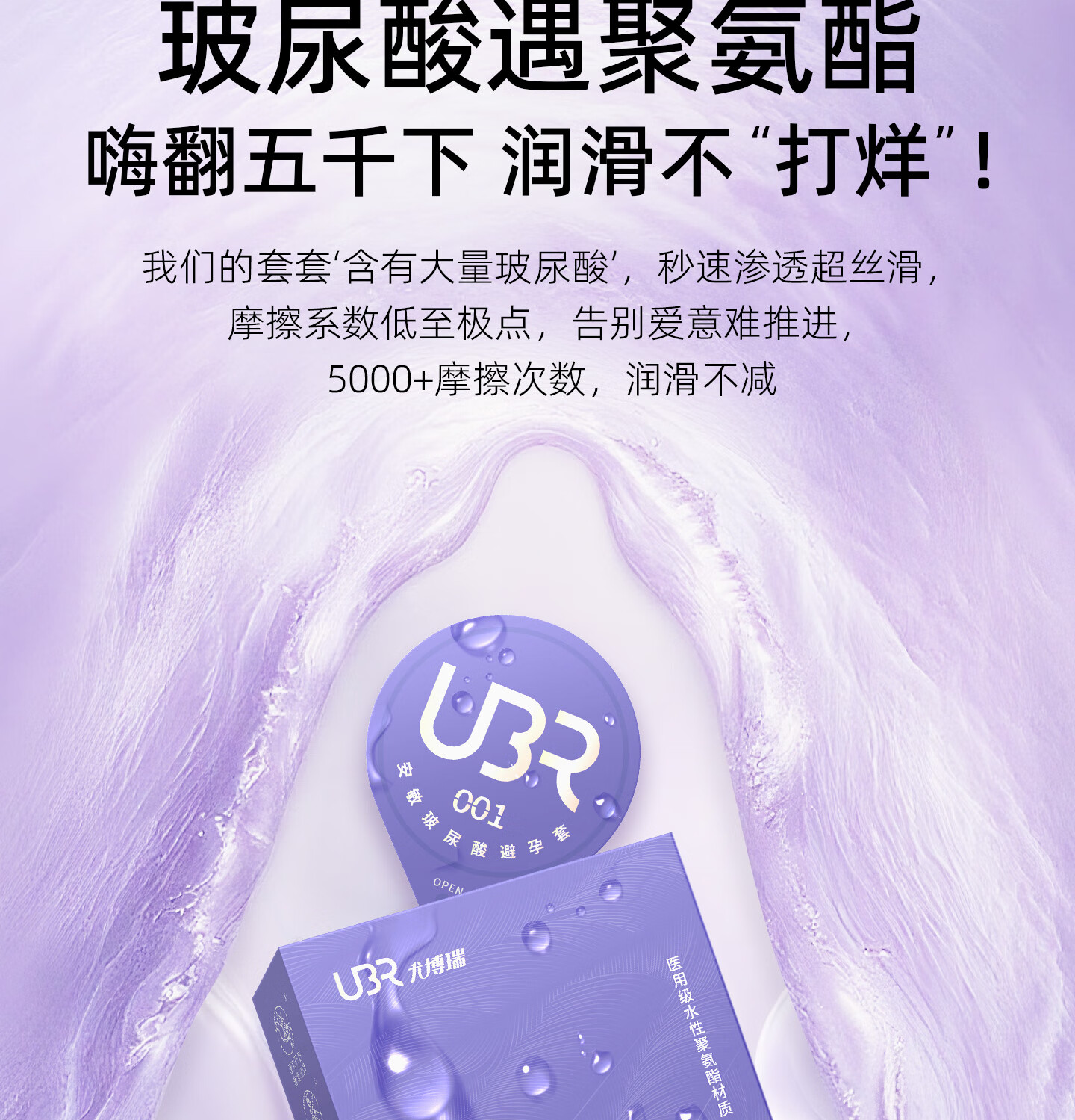 UBR尤博瑞聚氨酯001避孕套 超薄无感玻尿酸润滑持久8只装byt 【玻尿酸防HPV款】001玻尿酸3只
