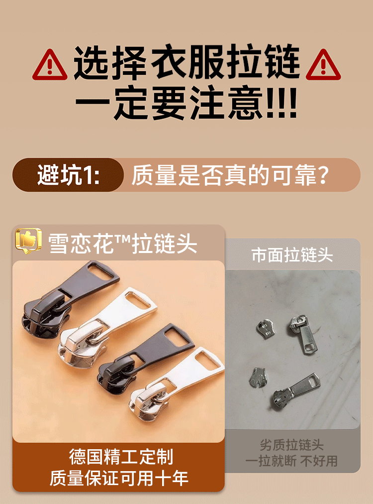 千百绘拉链头替换羽绒服衣服通用被套拉锁头修复神器金属拉头可拆卸 【黑色8号5个装】质保十年