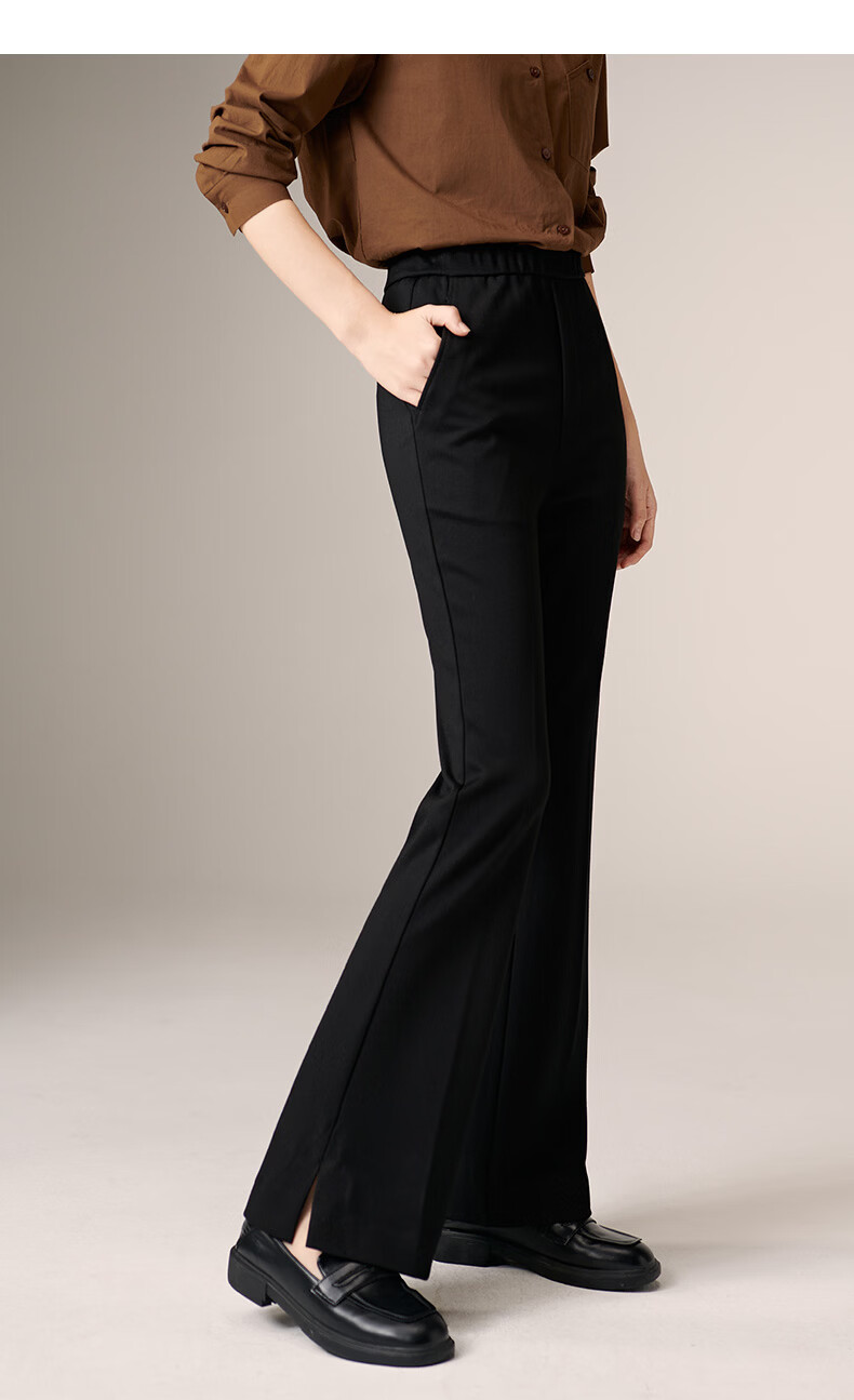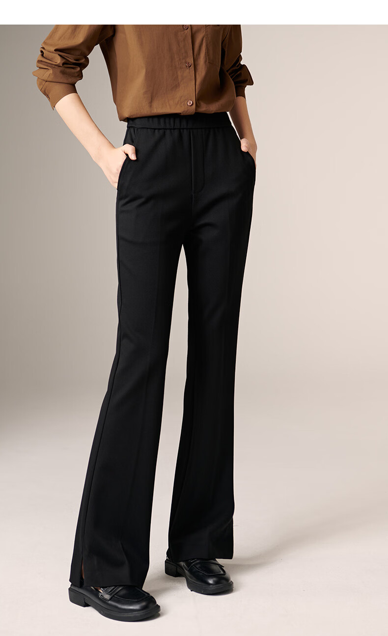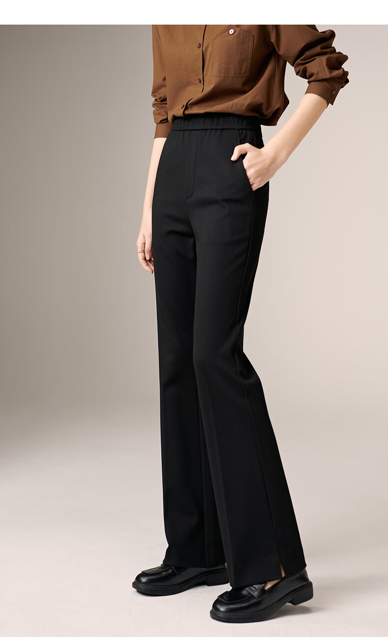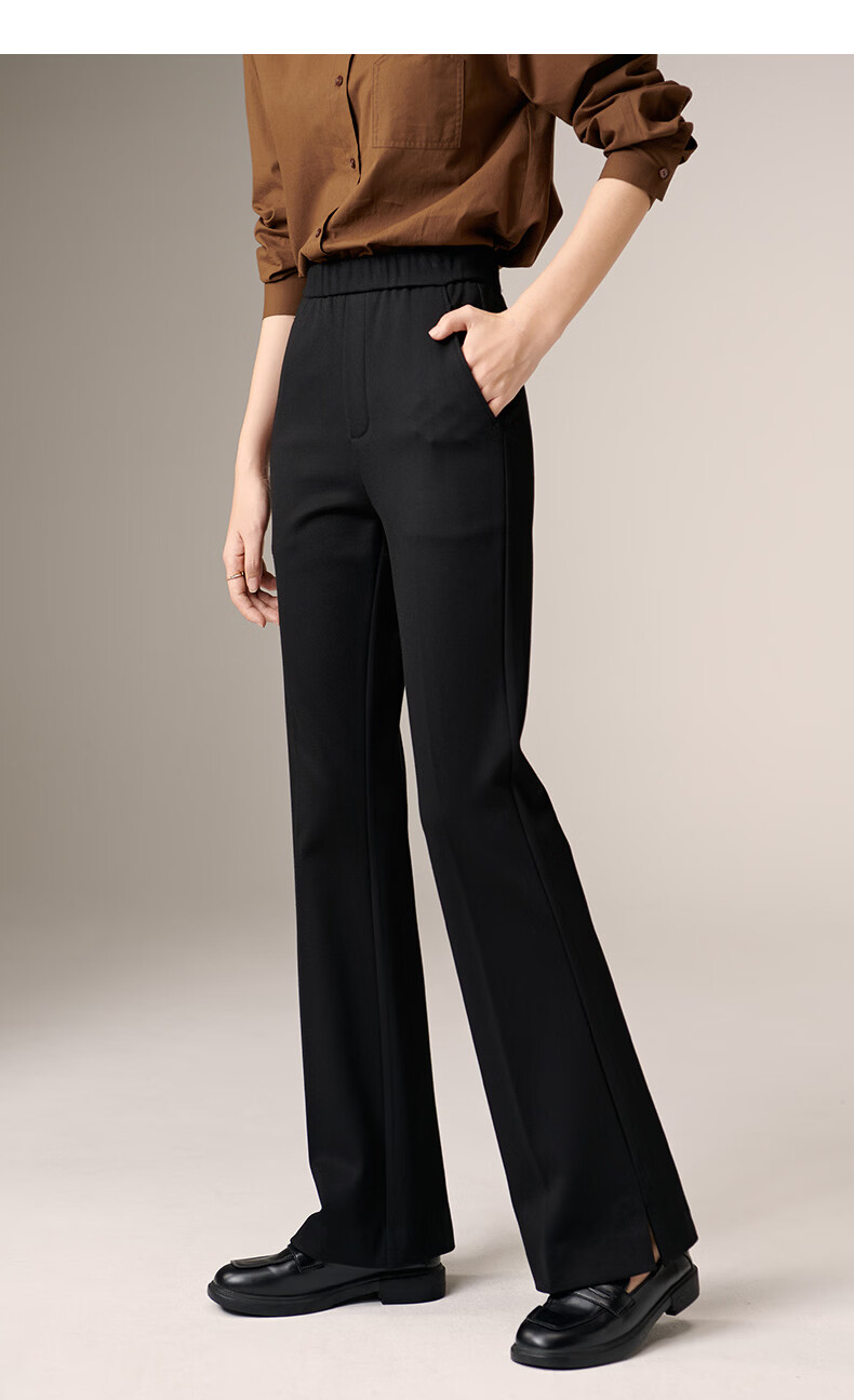 晚白【新品】2026春款经典高腰裤子修身显瘦职场通勤微喇裤女 黑色 28