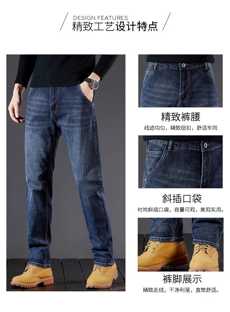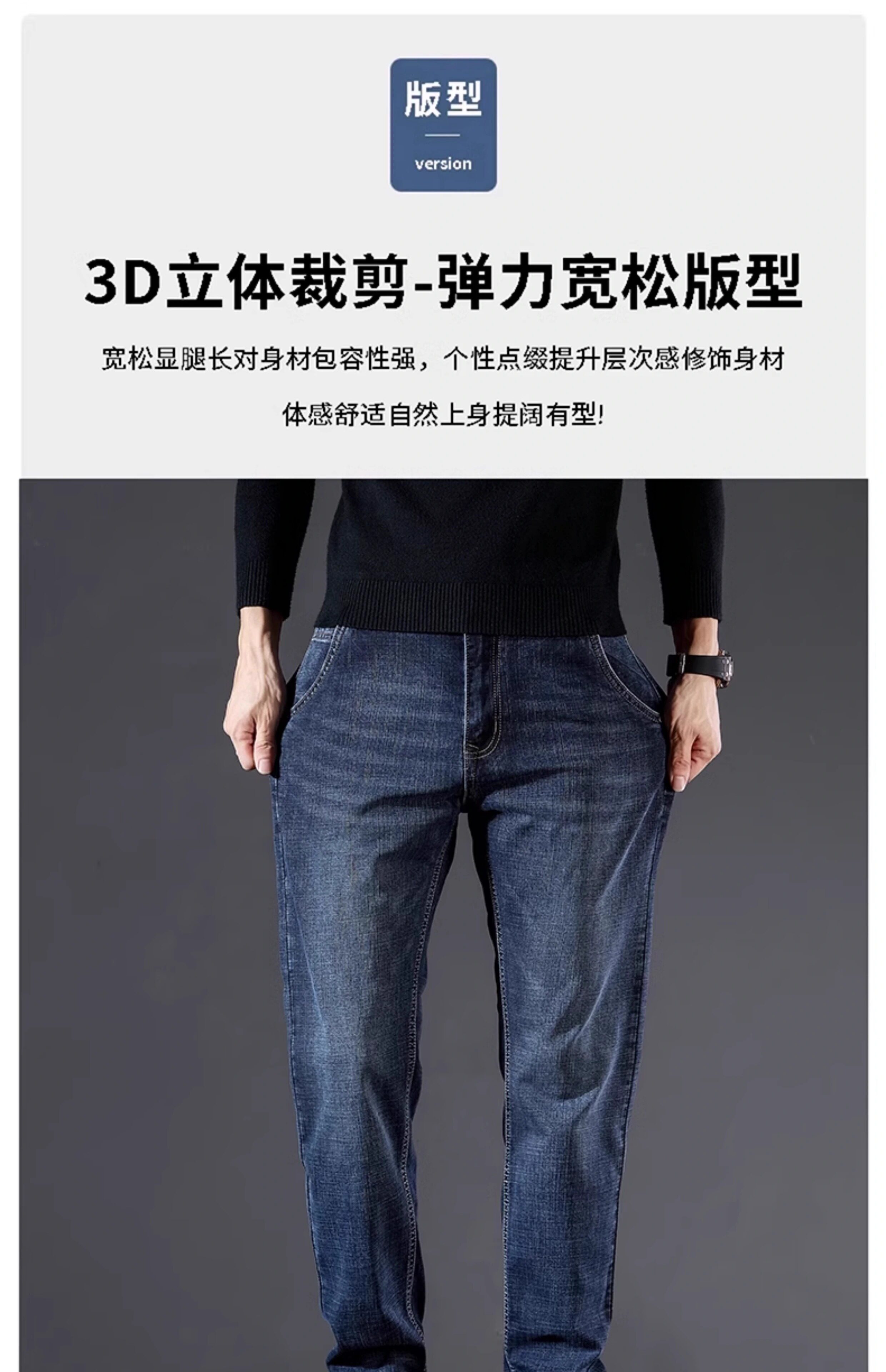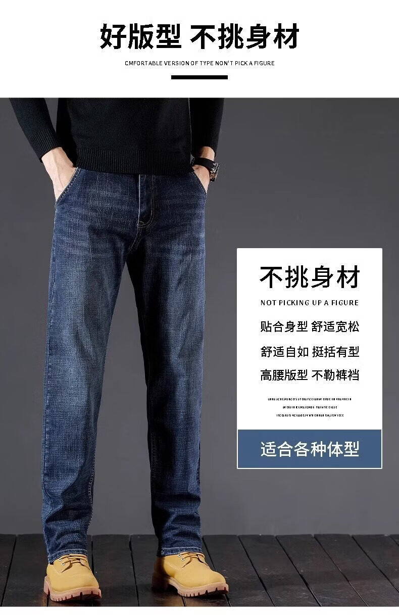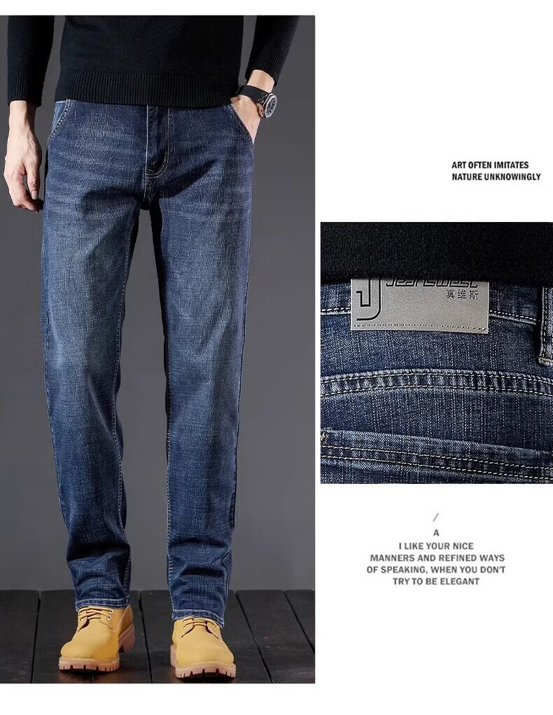 真维斯(Jeanswest)牛仔裤男2026秋冬新款宽松弹力男裤加绒直筒潮牌男士休闲裤 黑灰 32