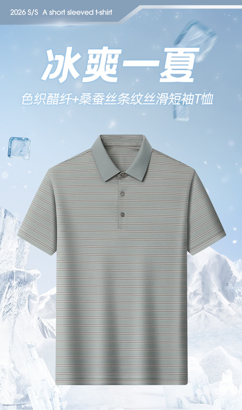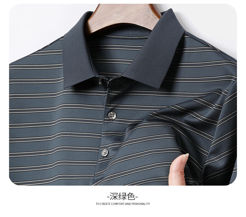 SHANSHAN杉杉男士短袖T恤2026夏季新款撞色翻领Polo衫男通勤休闲上班衣服 深绿色 S /165