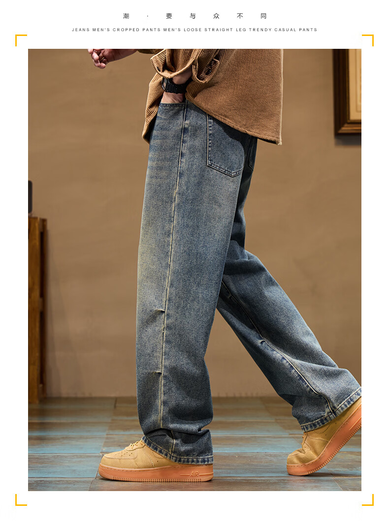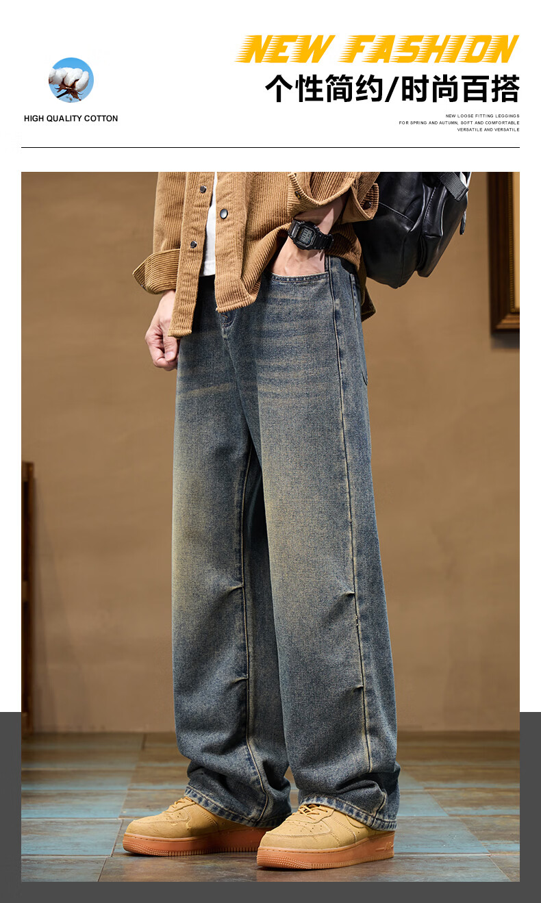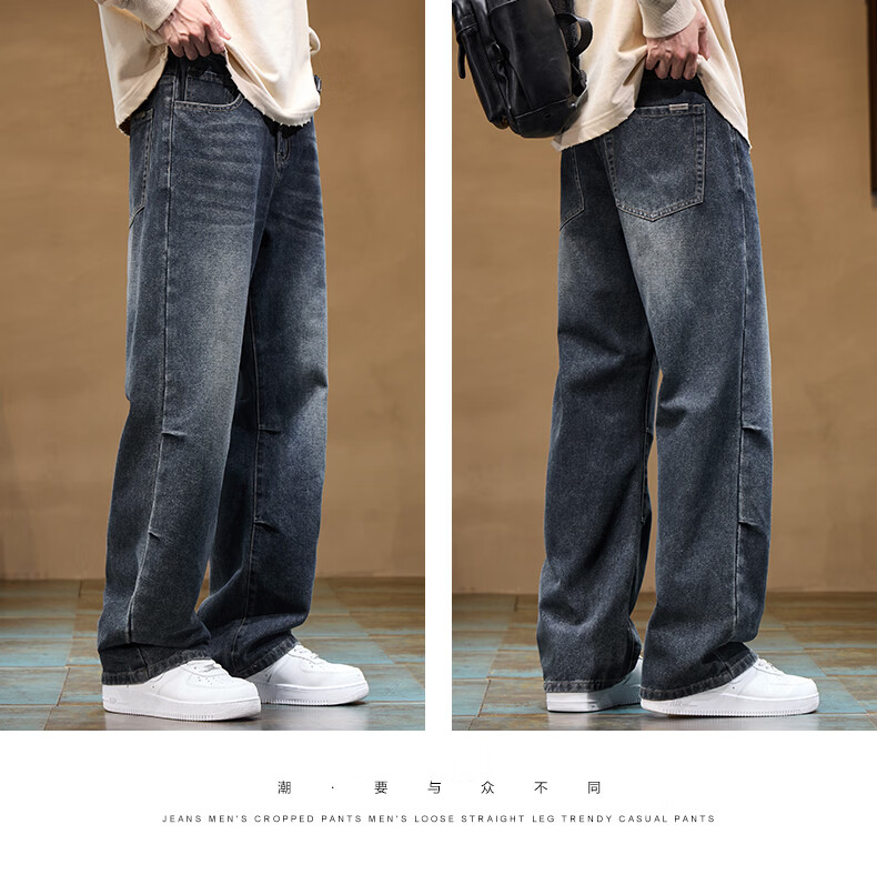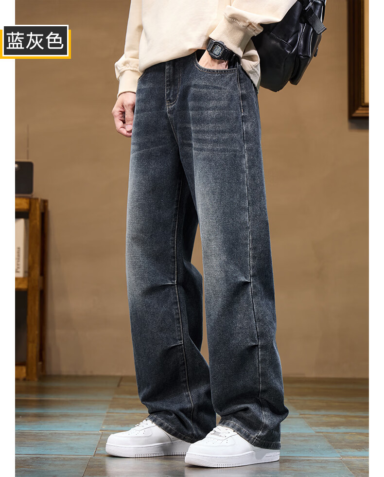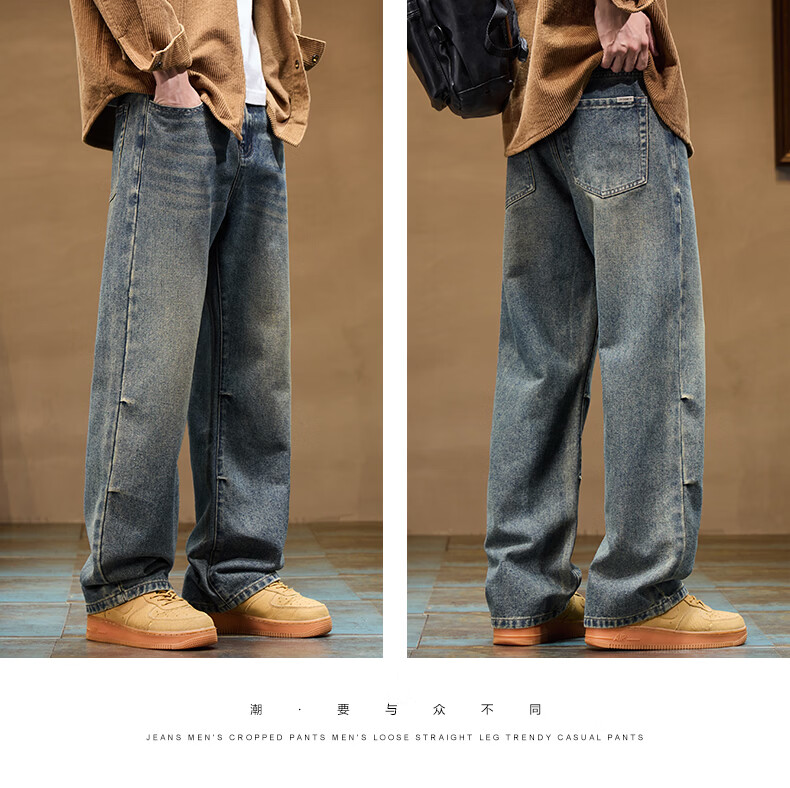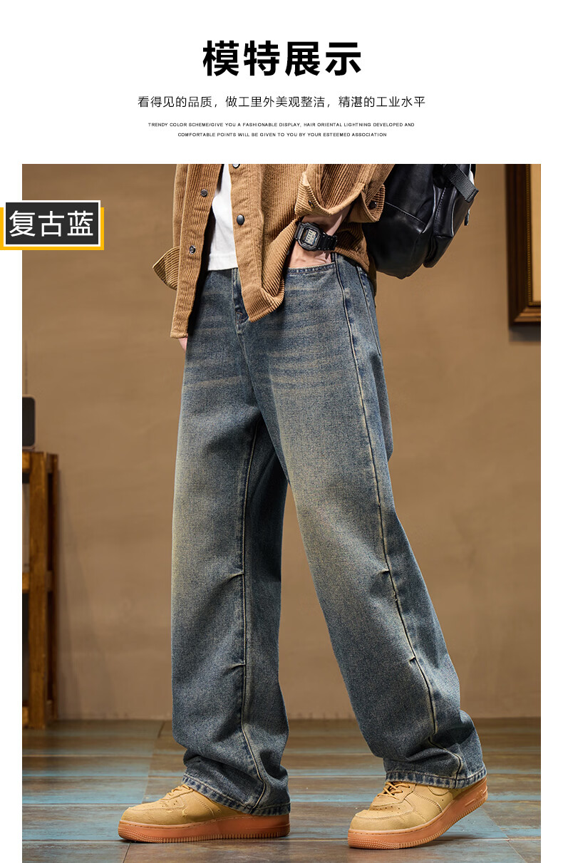 真维斯(Jeanswest)加绒牛仔裤男士秋冬新款美式重磅宽松直筒男裤复古舒适阔腿裤子男 复古蓝 28