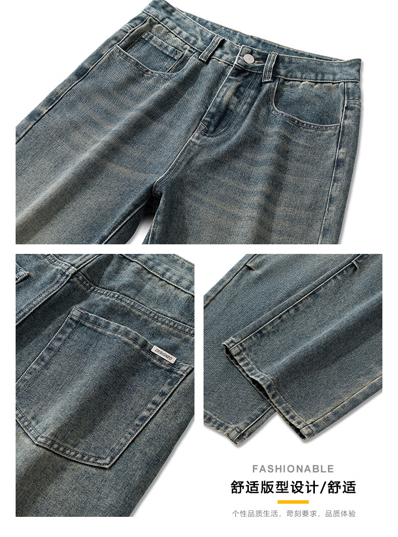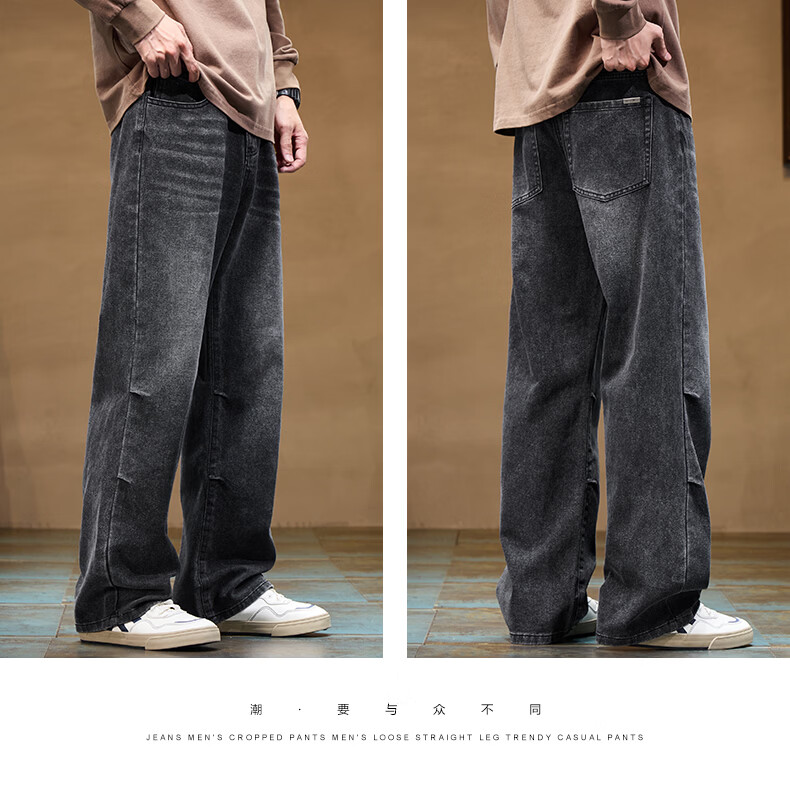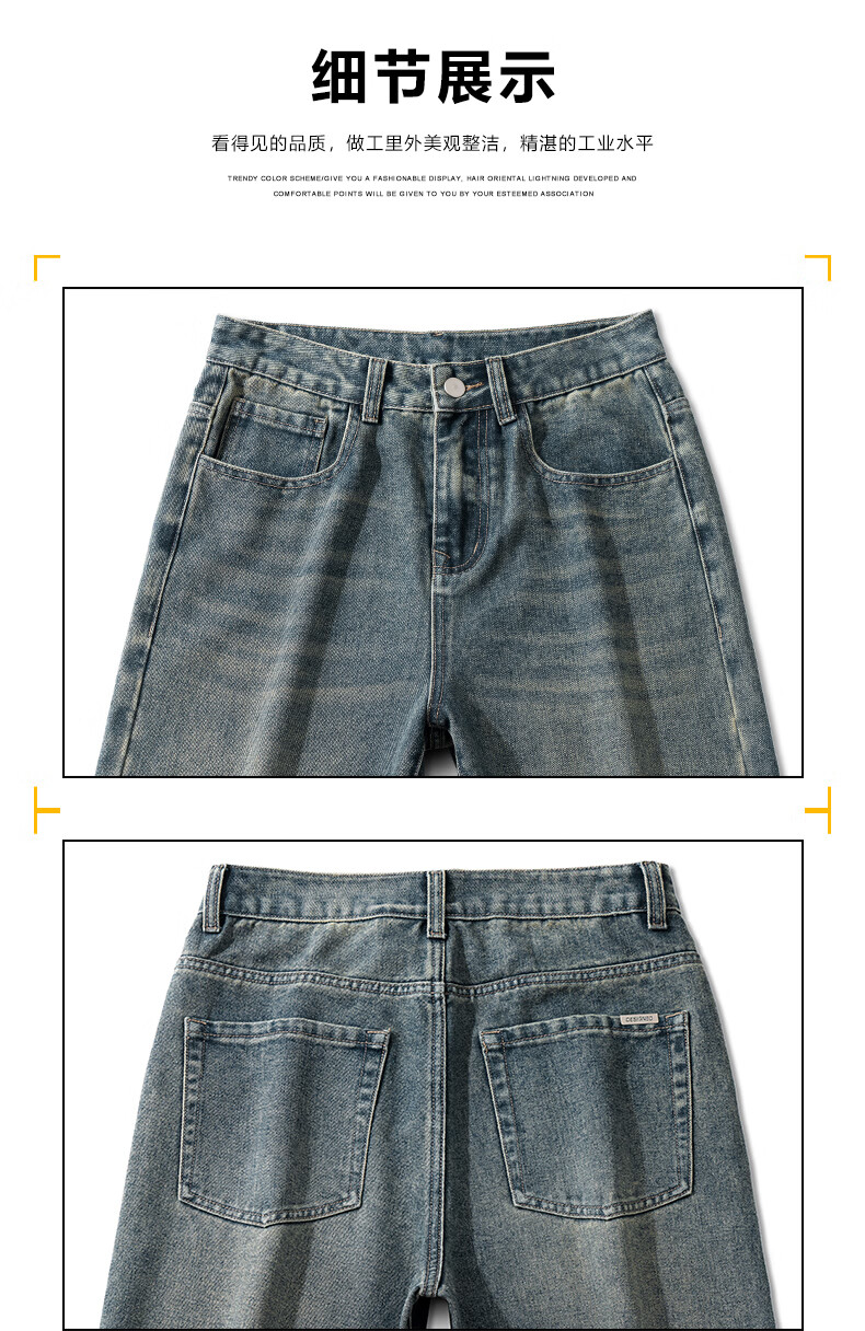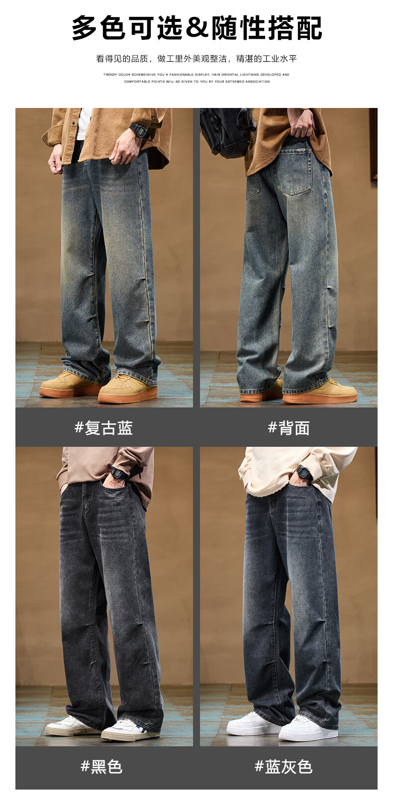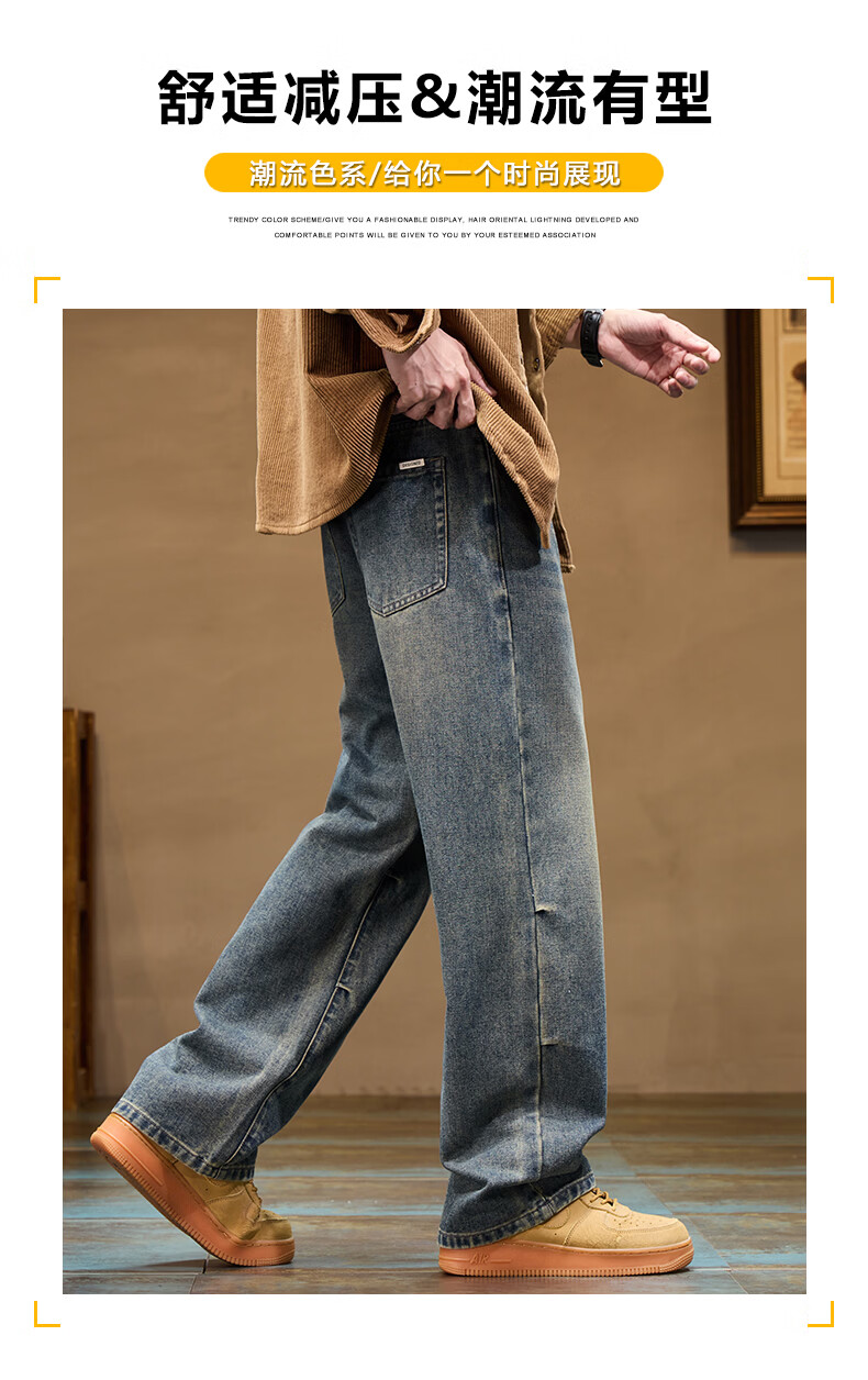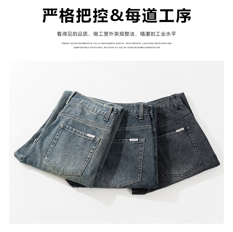 真维斯(Jeanswest)加绒牛仔裤男士秋冬新款美式重磅宽松直筒男裤复古舒适阔腿裤子男 复古蓝 28