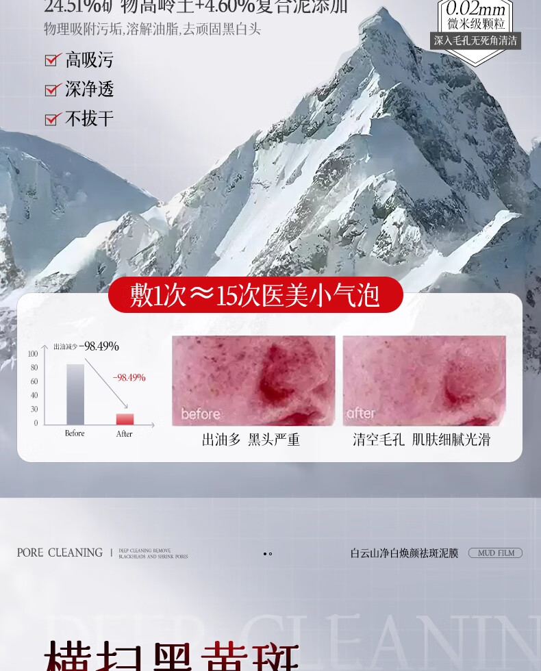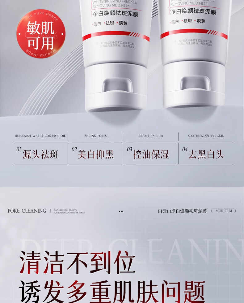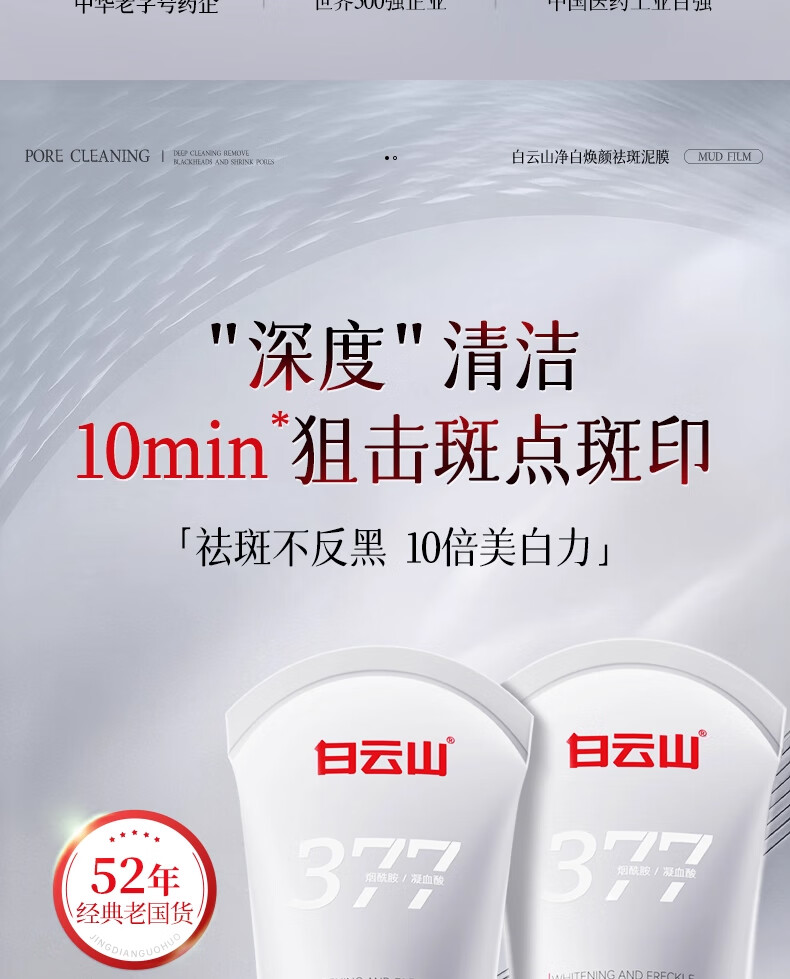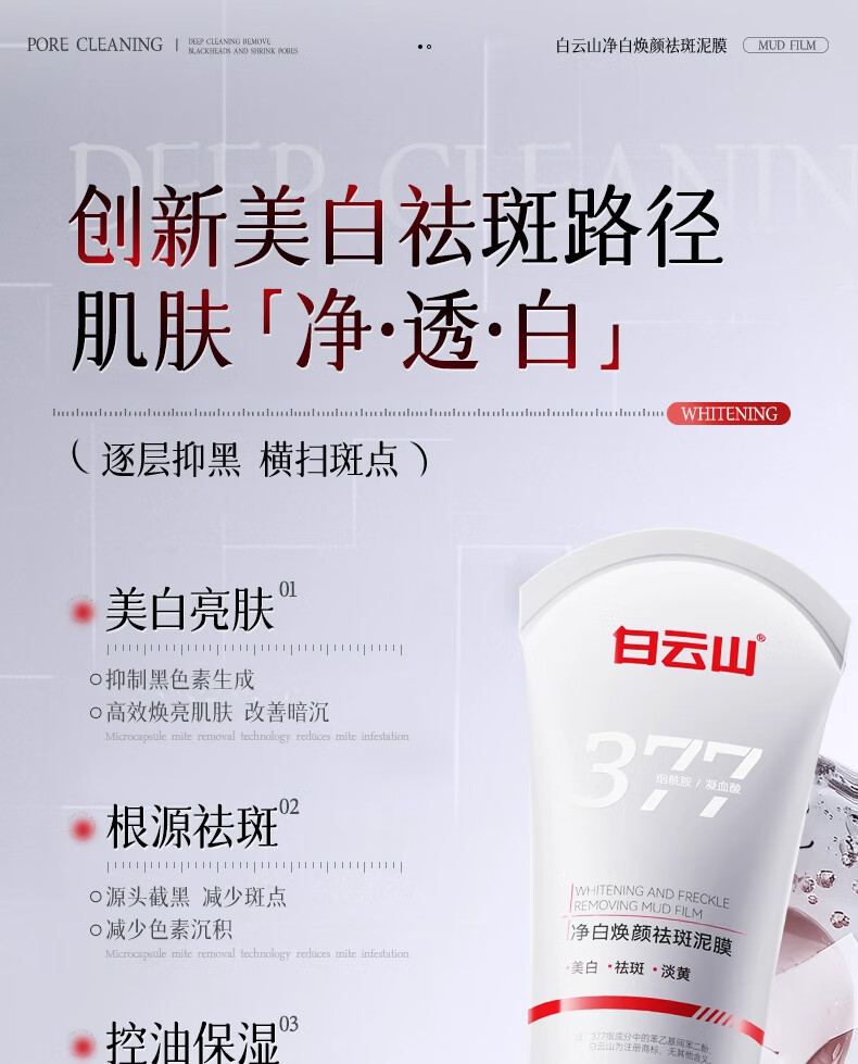 白云山377清洁泥膜深层清洁去黑头收缩毛孔去角质面部去死皮控油男女士