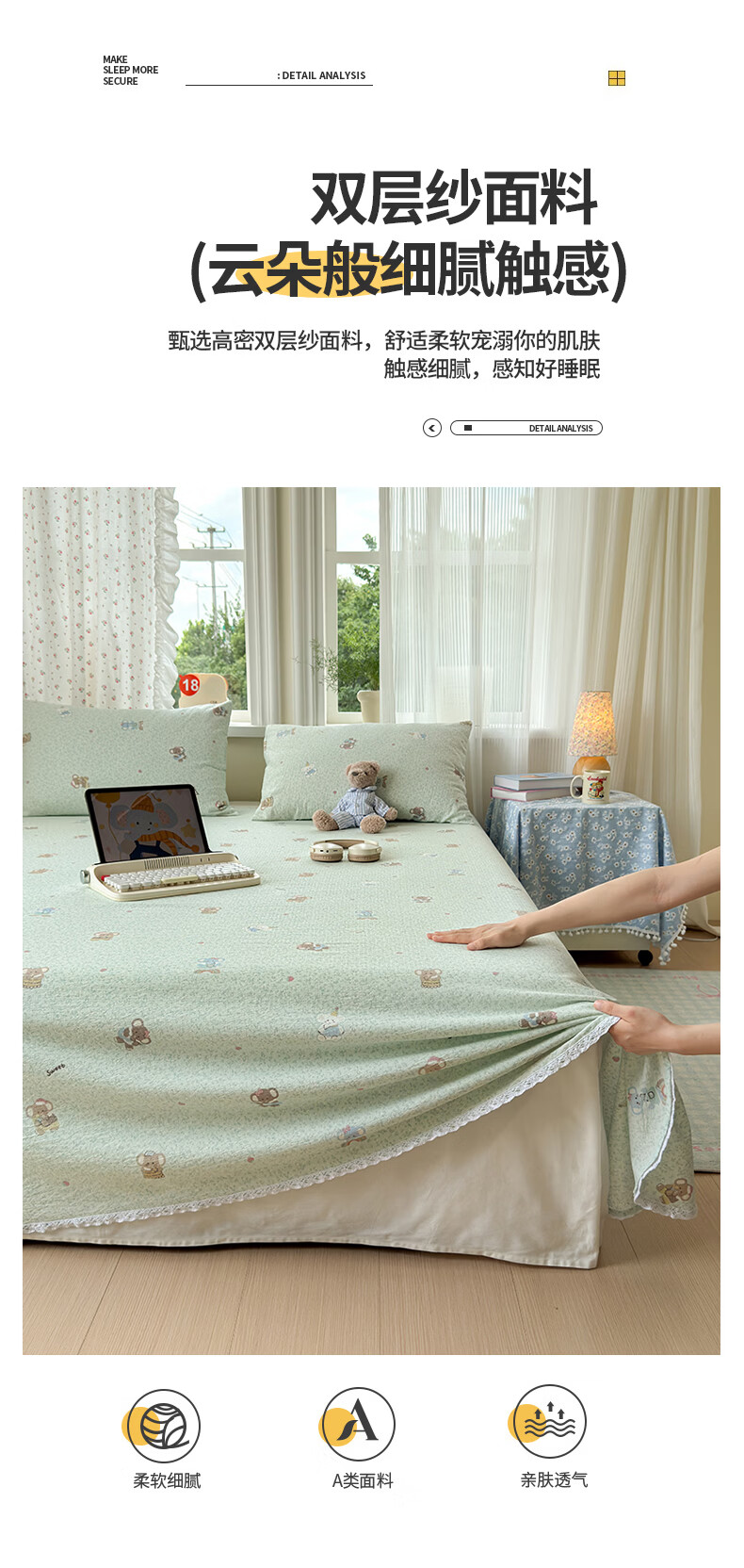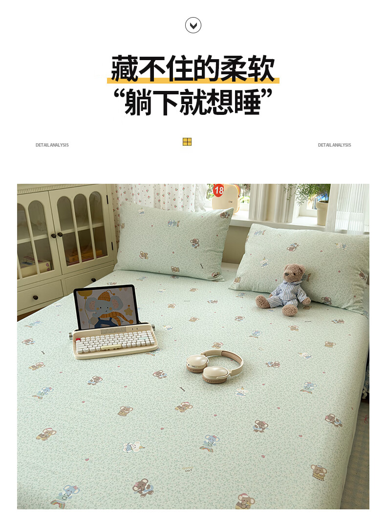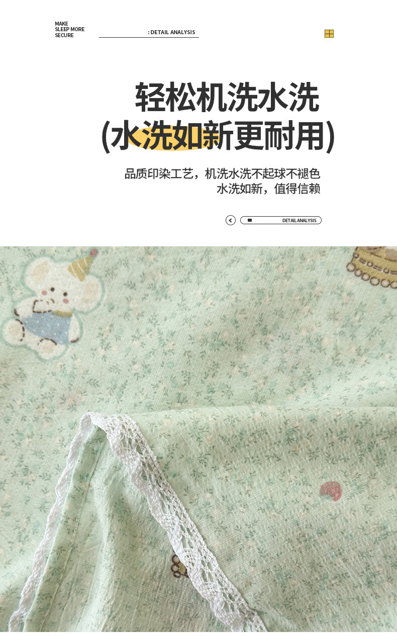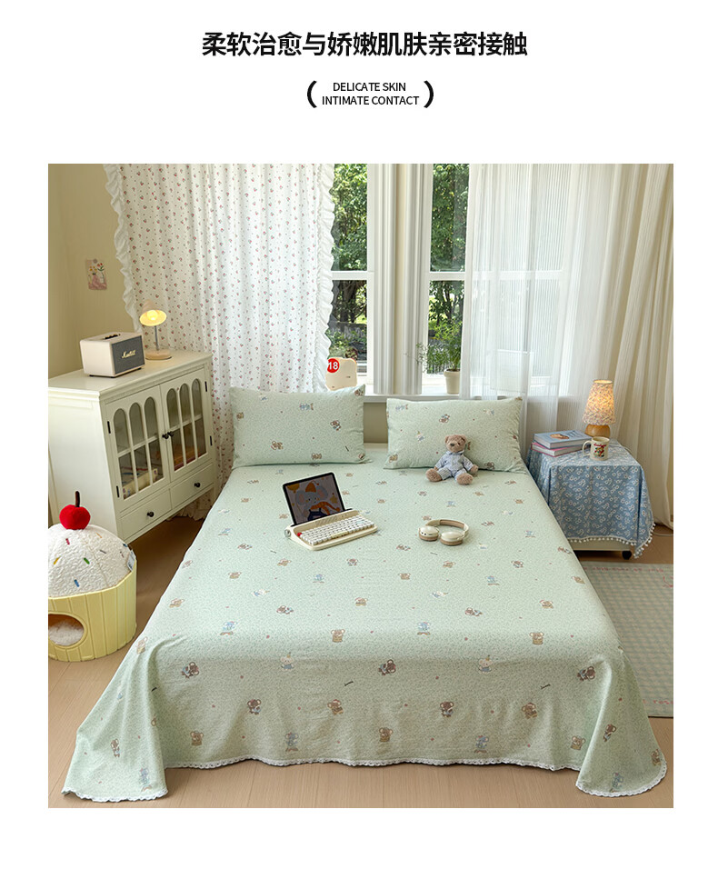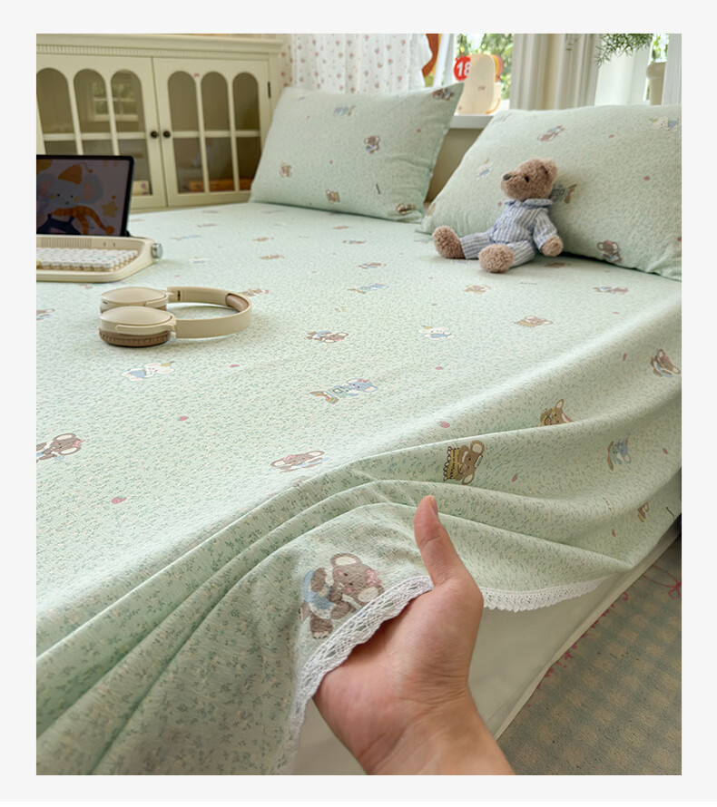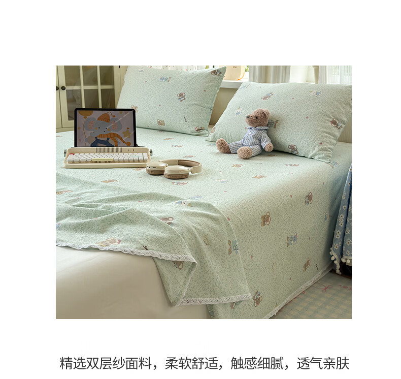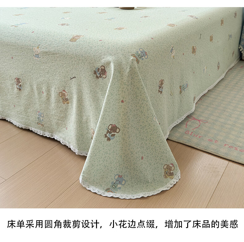 南极人(Nanjiren)双层纱花边床单200x230cm单件被单家用床盖宿舍三件套单人床单 幸运小象 【花边双层纱面料 亲肤细腻】 单床单200x230cm【适合1.5m床】