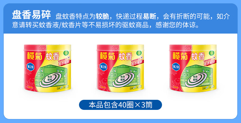 榄菊蚊香40圈*3筒 无烟无香型菊之语盘香家用基孔肯雅热黑蚊香盘