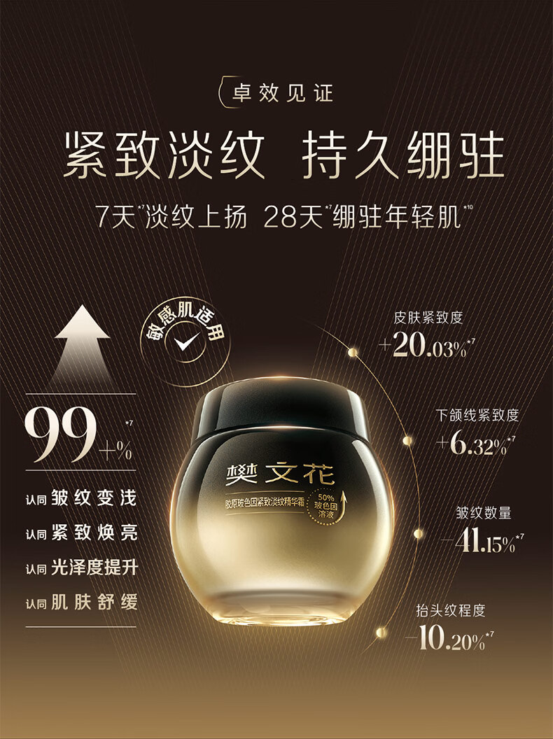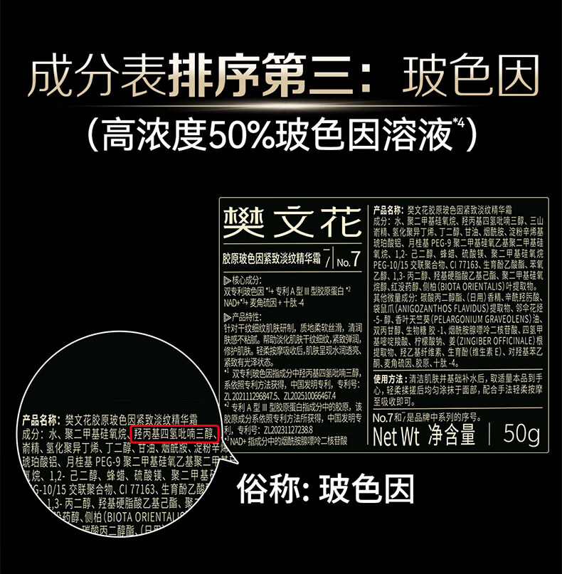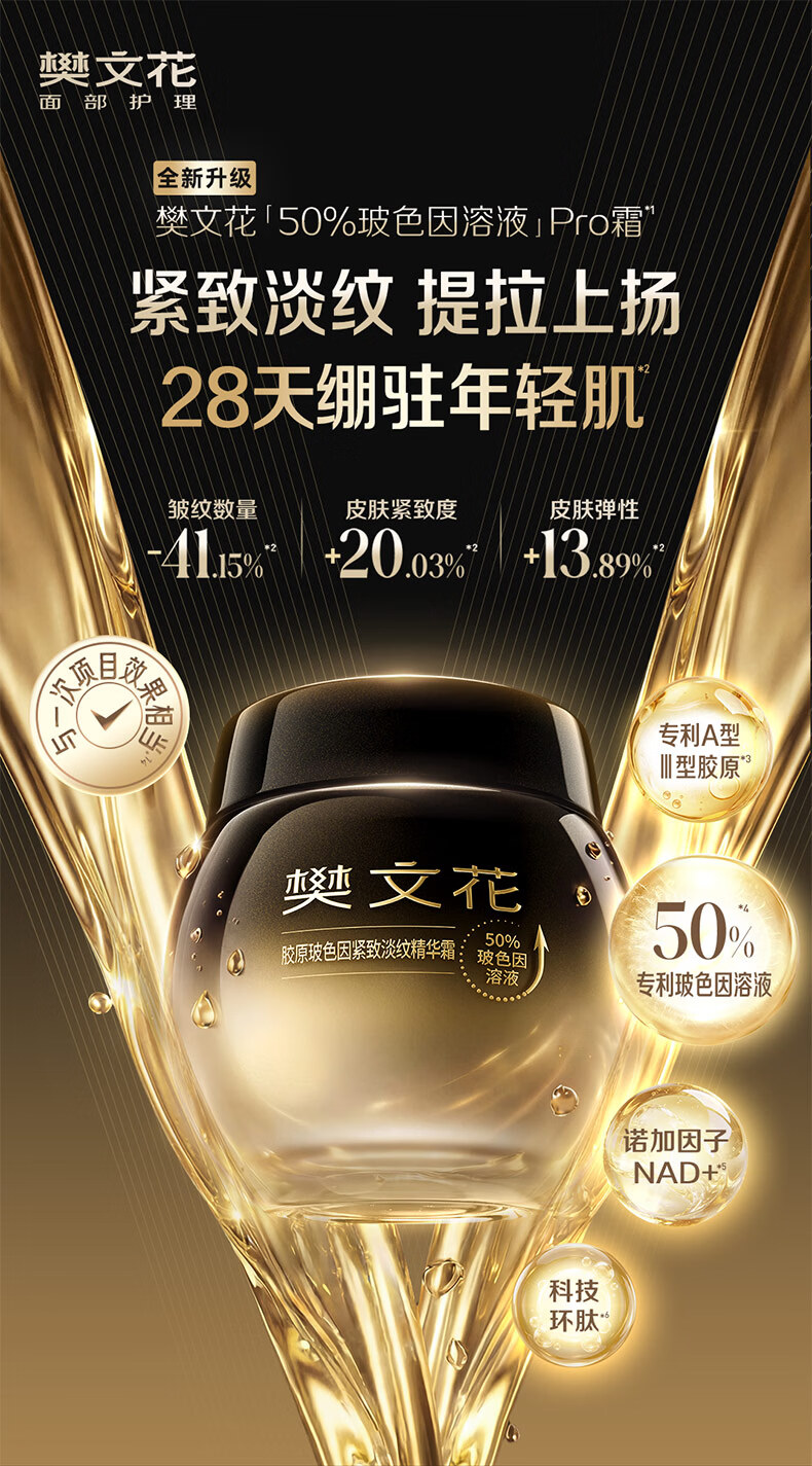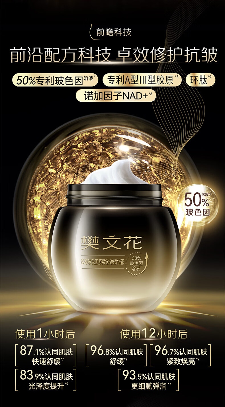 樊文花7号胶原玻色因紧致淡纹精华霜50%玻色因抗皱保湿舒缓修护面霜女生 3.8g