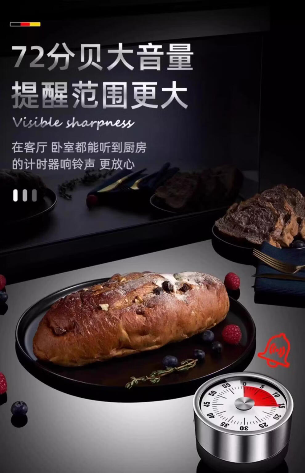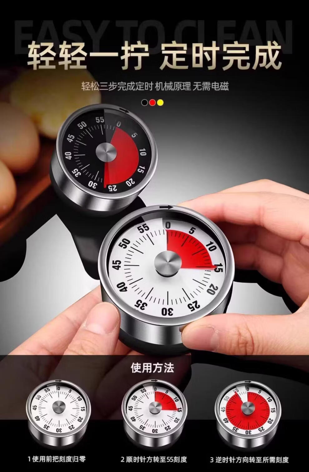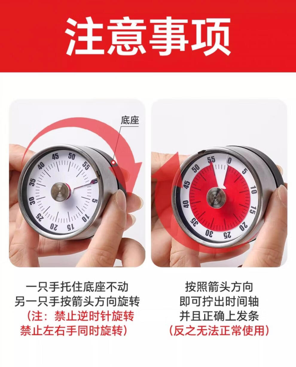 胖东来同款可视化计时器厨房机械定时学习儿童厨房提醒器磁吸式烹 白色-磁吸【无需电池+计时精准】
