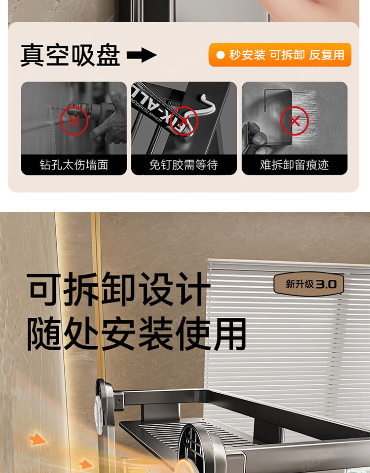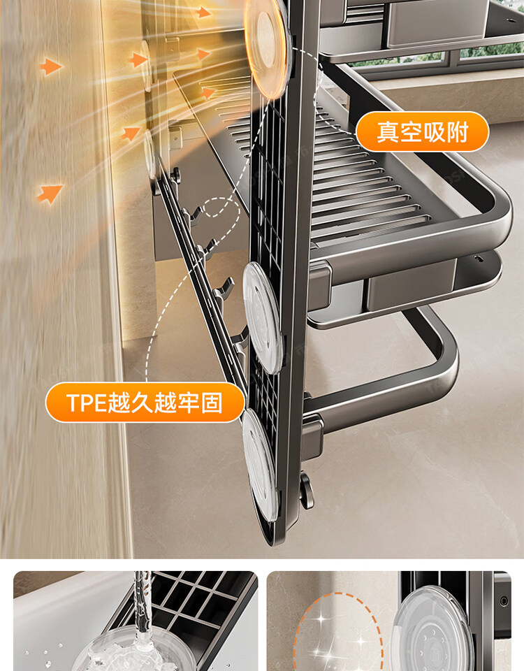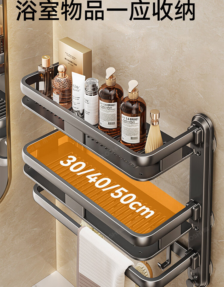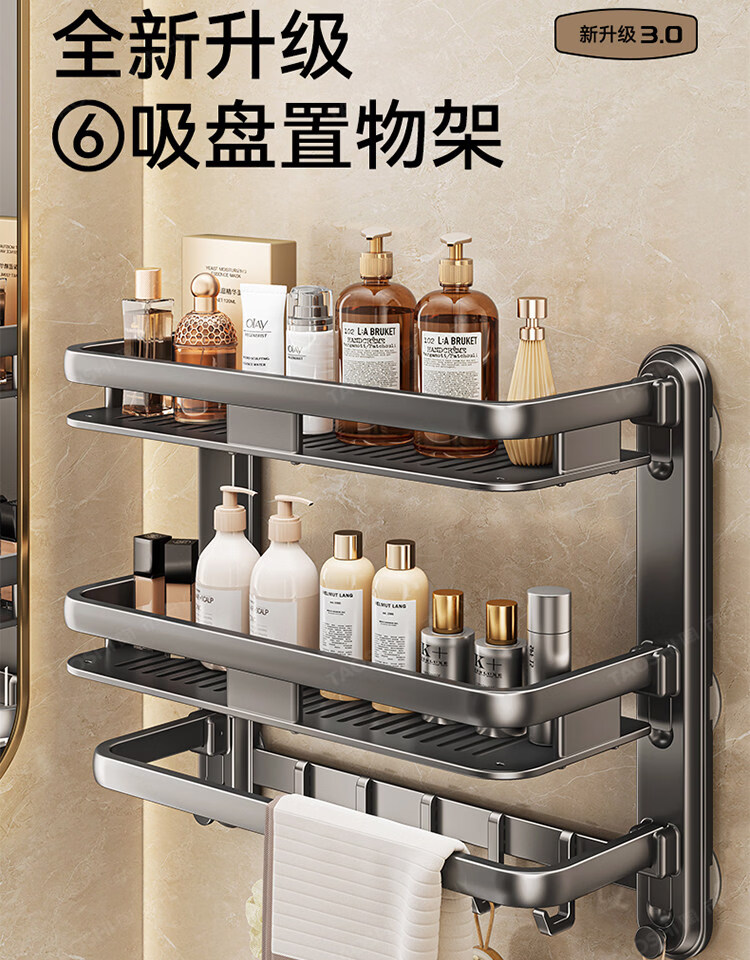 咏幻卫生间吸盘置物架浴室免打孔壁挂卫浴厕所洗漱台洗澡间墙上收纳架 【升级吸盘款】单层置物架-30CM(掉落包赔)
