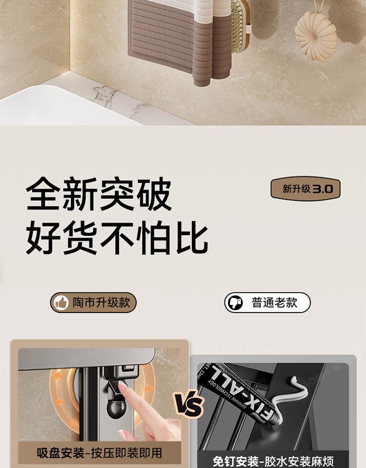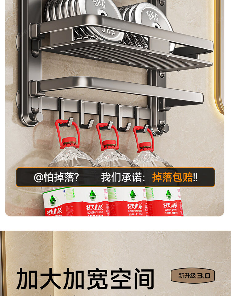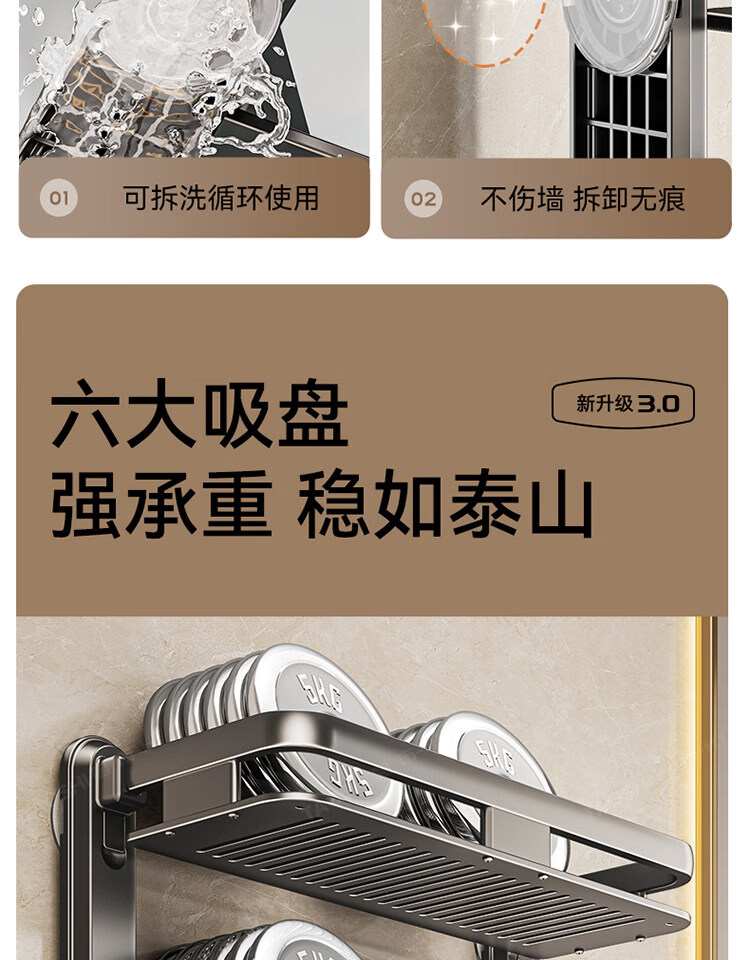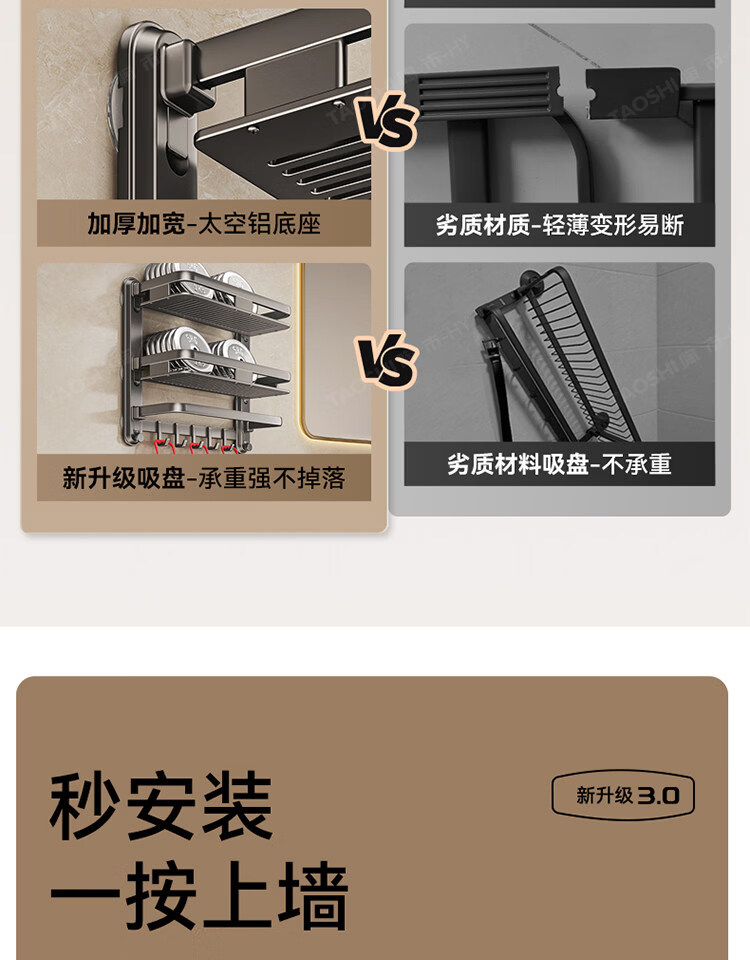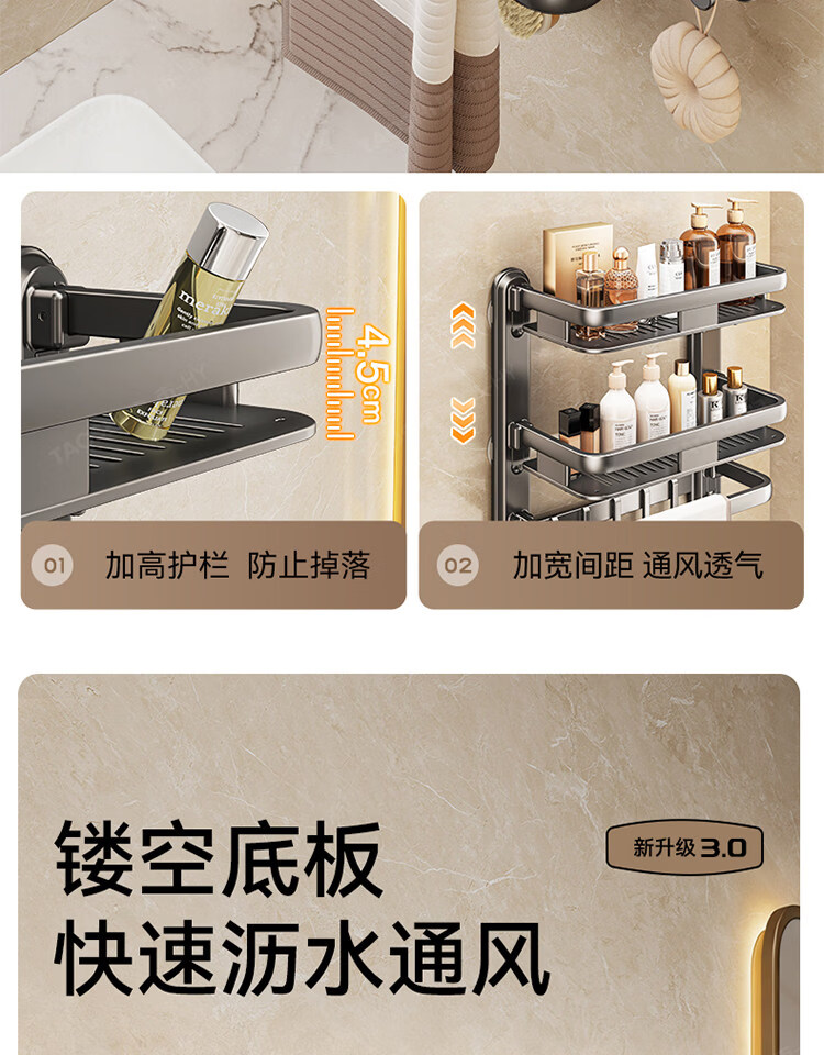 咏幻卫生间吸盘置物架浴室免打孔壁挂卫浴厕所洗漱台洗澡间墙上收纳架 【升级吸盘款】单层置物架-30CM(掉落包赔)