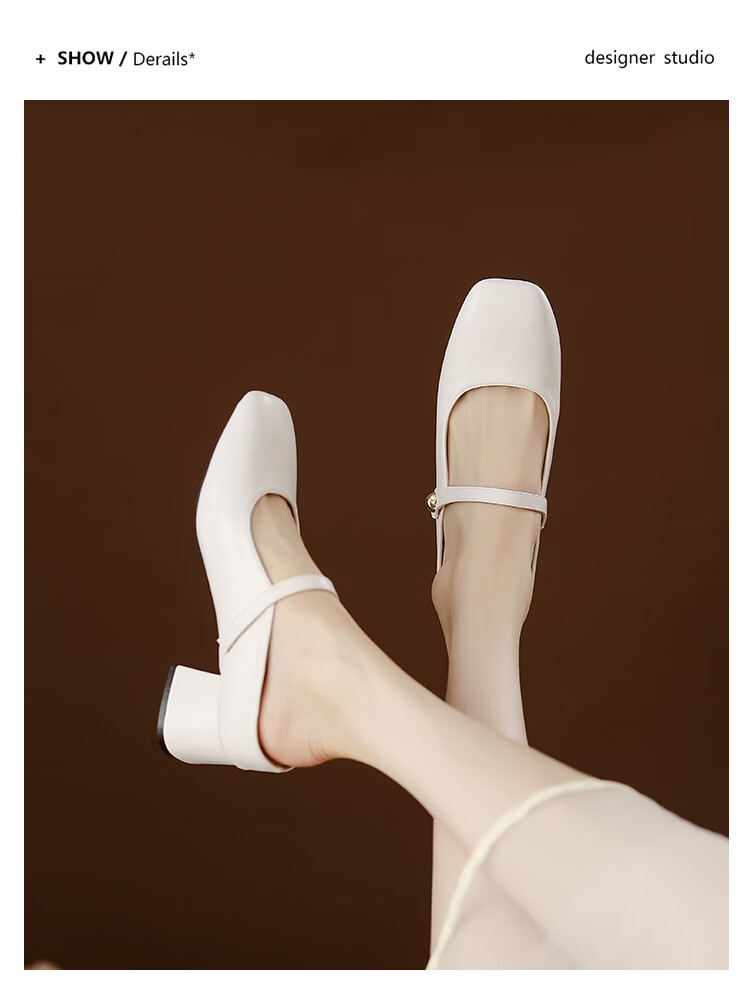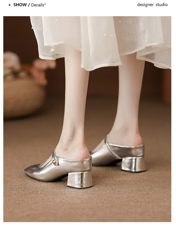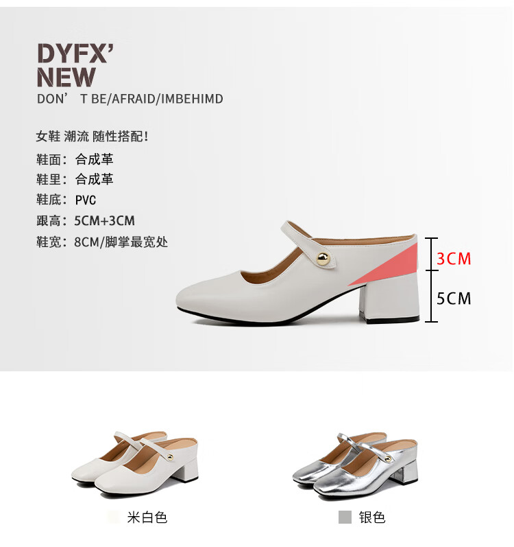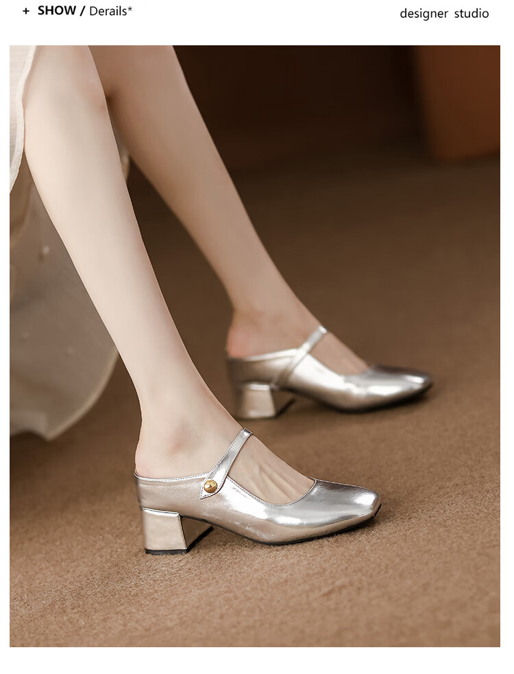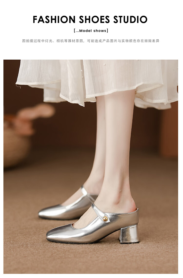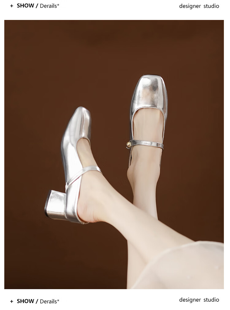 Pounise法式玛丽珍高跟鞋女夏季新款粗跟单鞋配裙子温柔晚风PDH-388-1 银色 37
