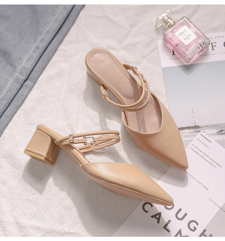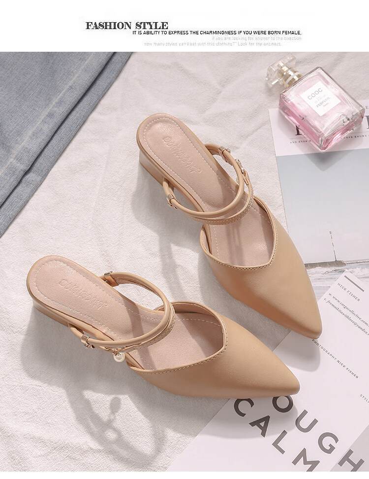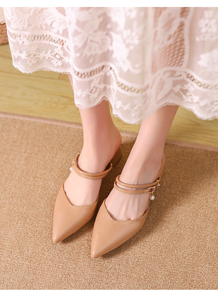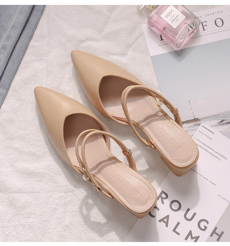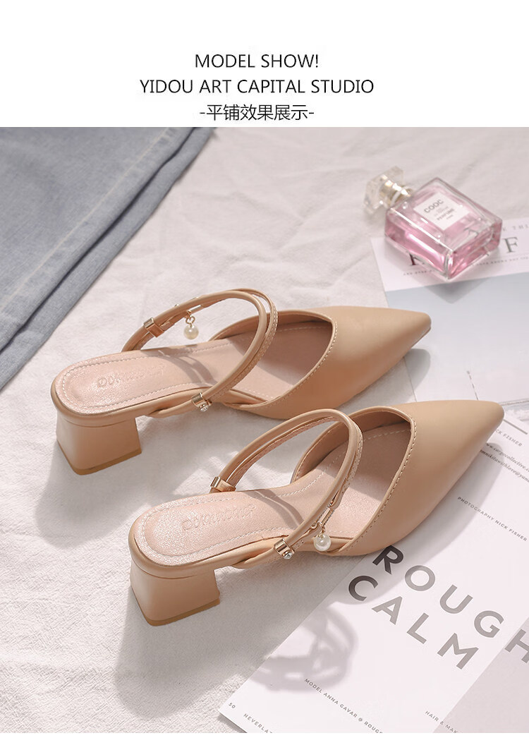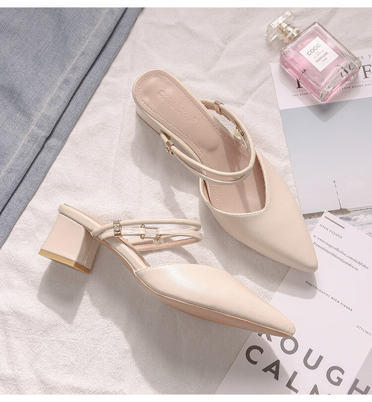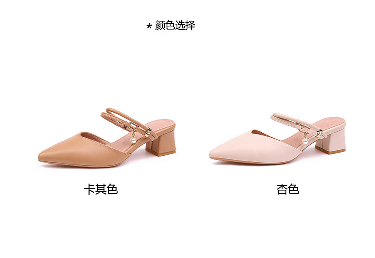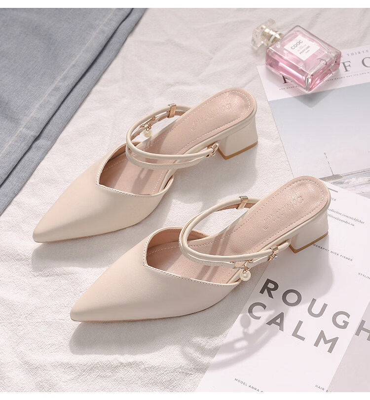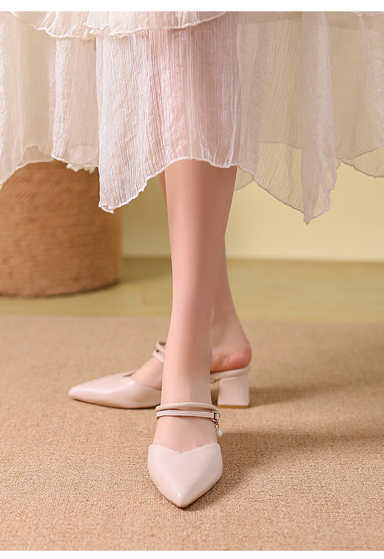 女夏包头中跟2026年夏季新款小码3233尖头法式粗跟 杏色 35