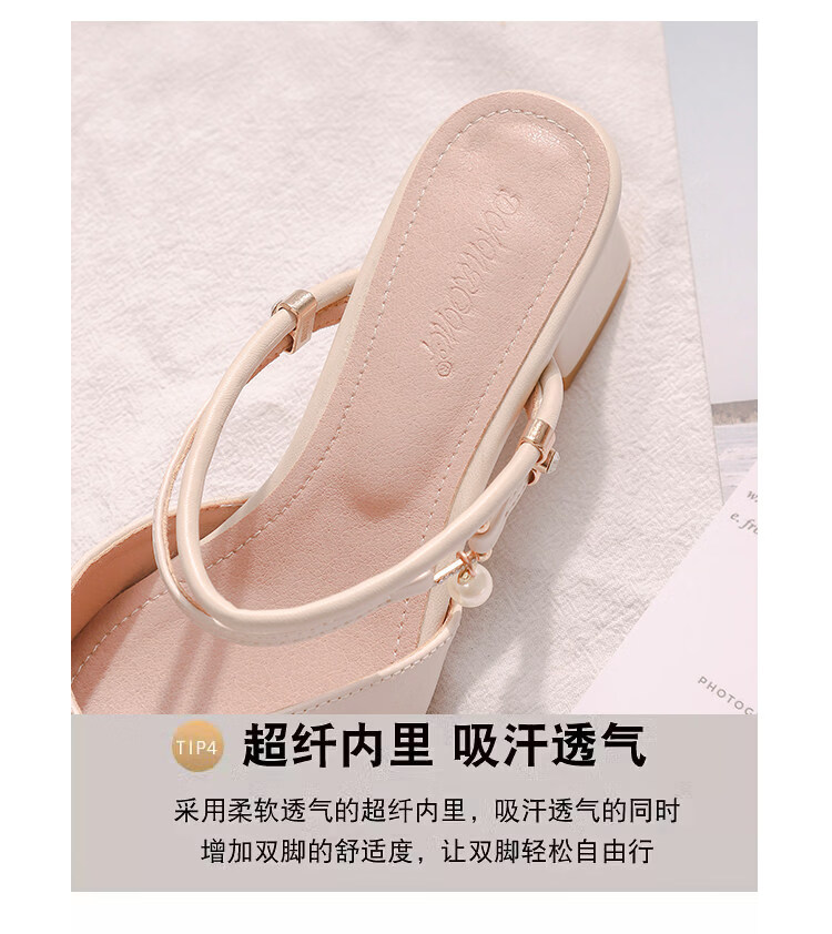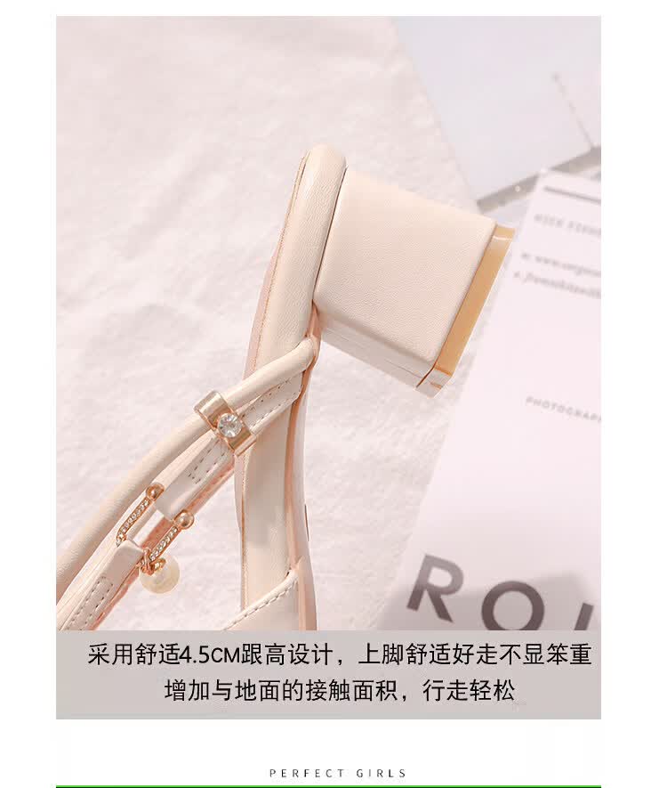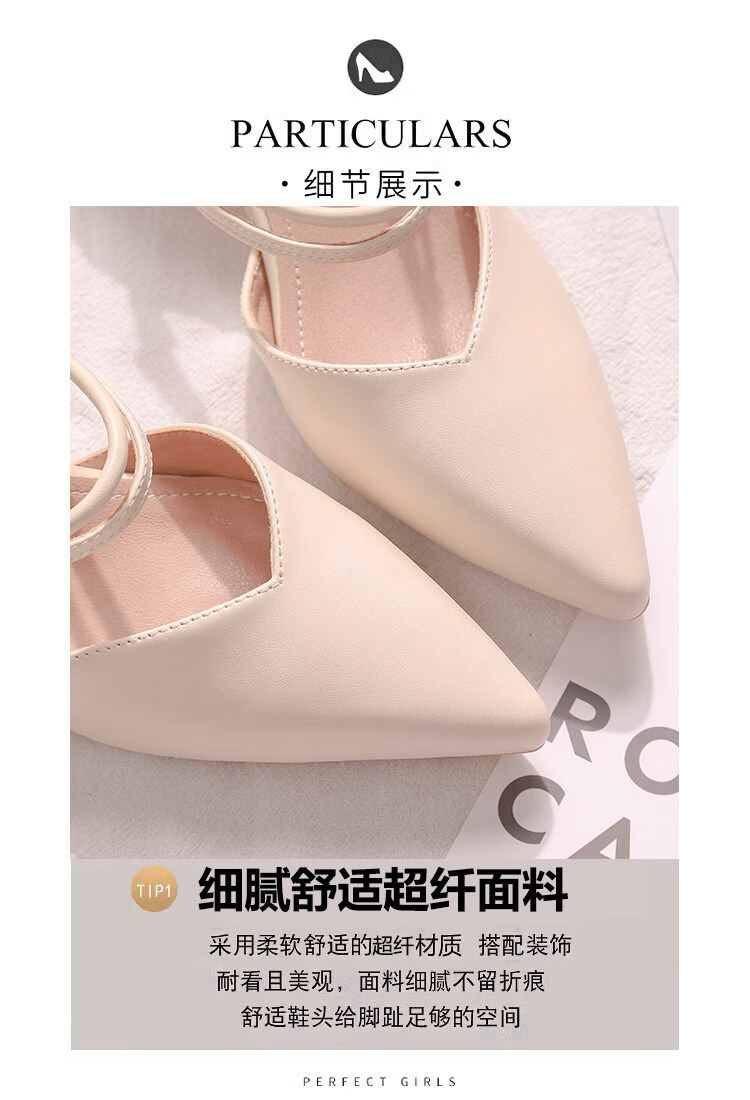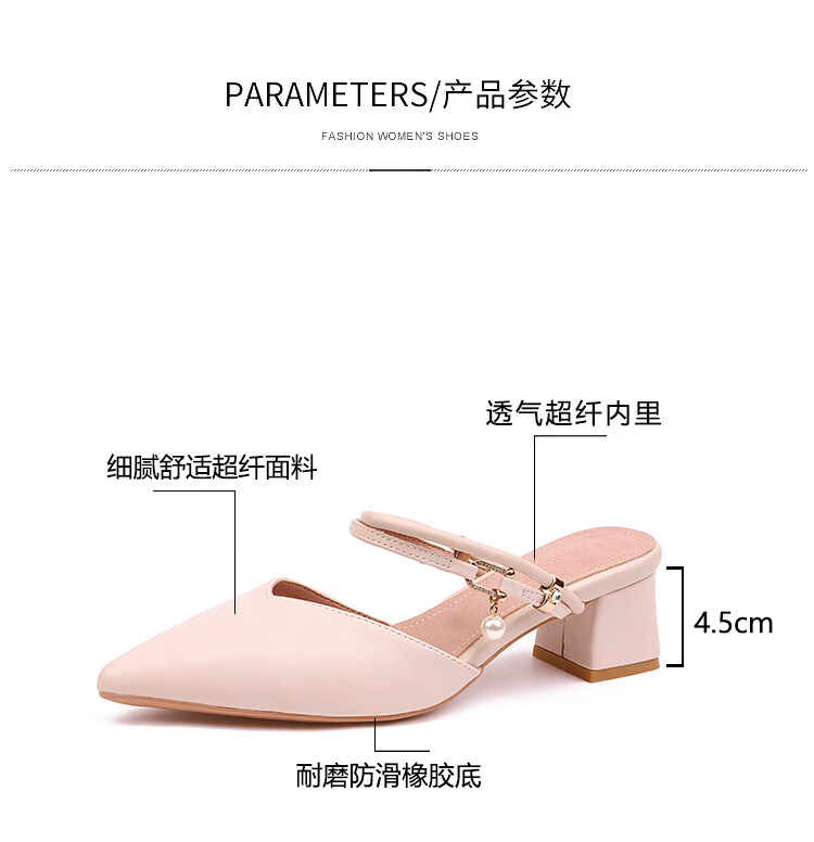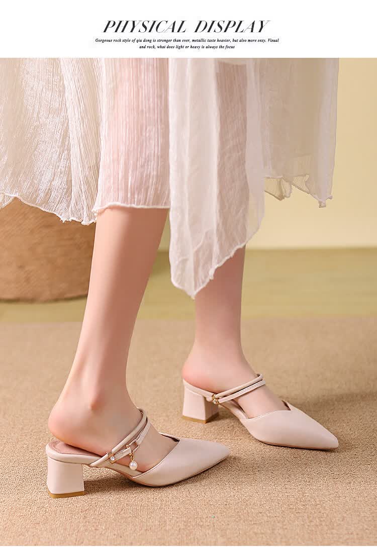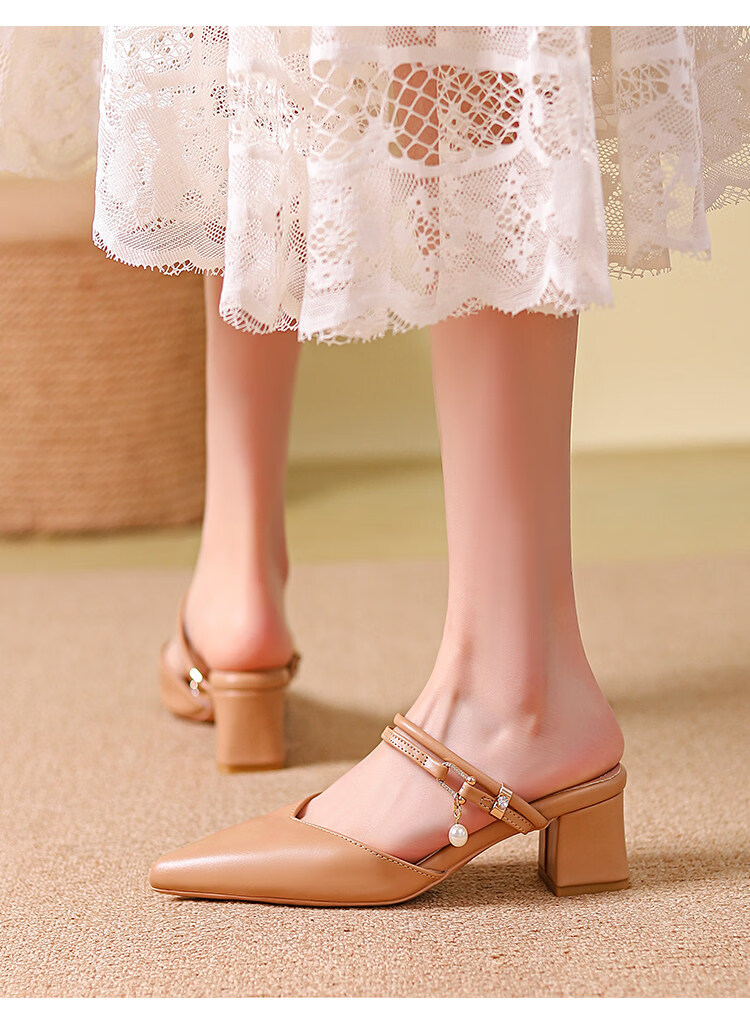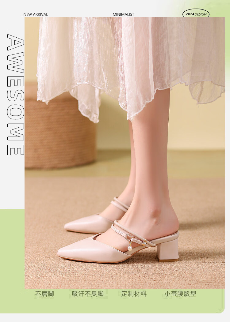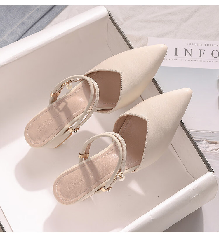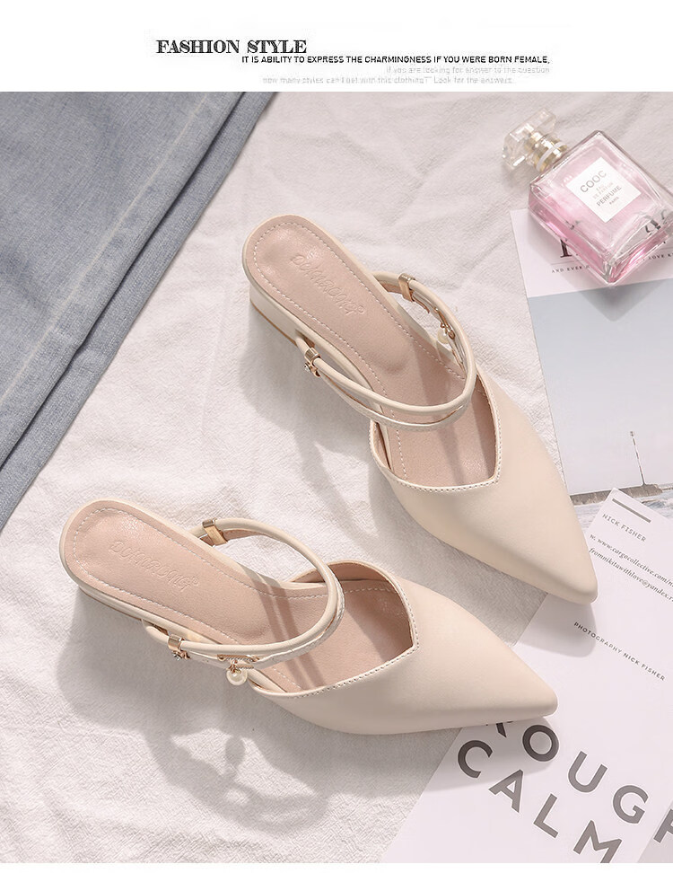 女夏包头中跟2026年夏季新款小码3233尖头法式粗跟 杏色 35