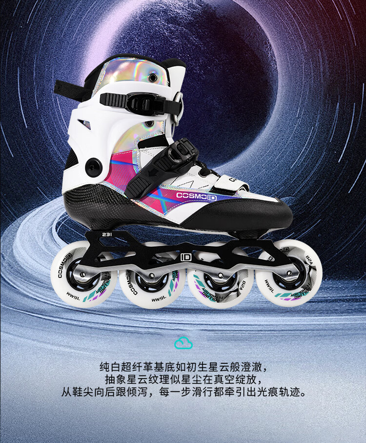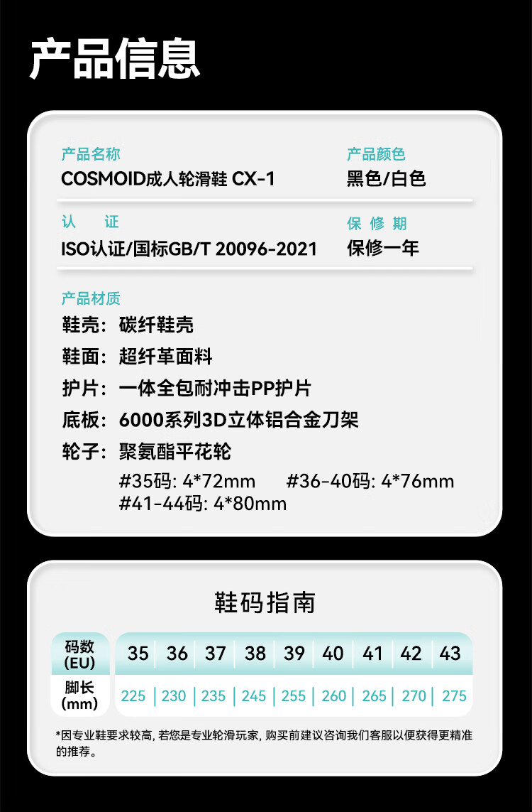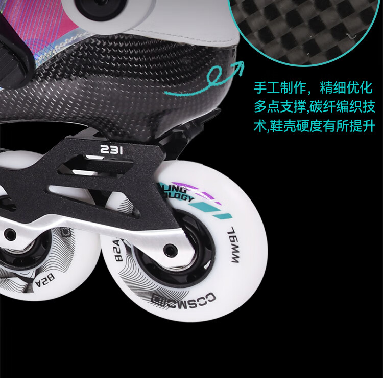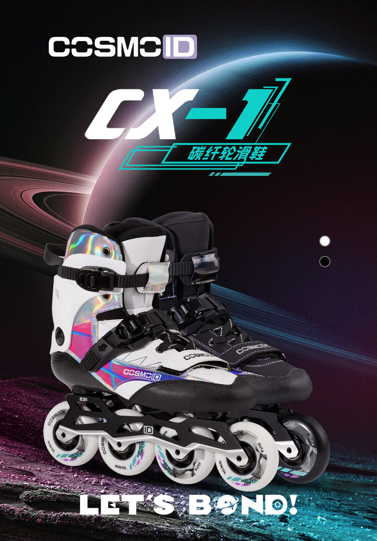 microCOS联名儿童男女成人轮滑专业花式高级碳纤旱冰速桩比赛进阶CX-1 白色 套装【护具+轮滑包】送micro头盔 43